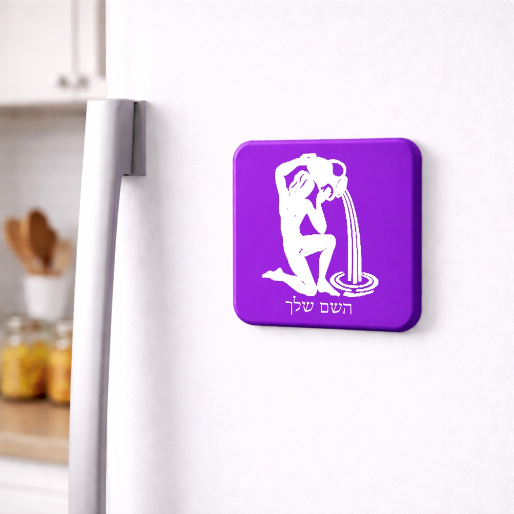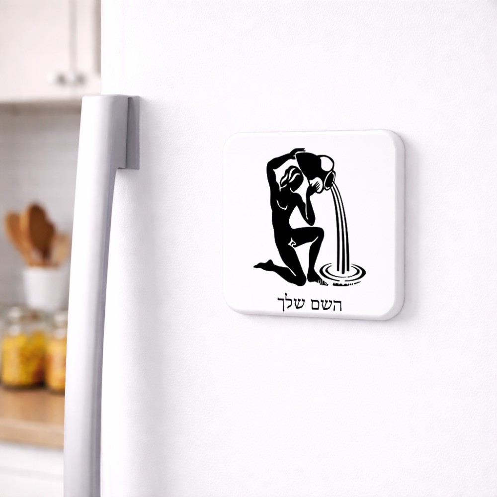 מגנט למקרר בעיצוב אישי עם השם שלך בעיצוב מזלות - דלי גודל המגנט 6.5 × 6.5 ס"מ. את השם המבוקש ניתן לציין בהזמנה, אם לא צויין אנחנו ניצור קשר לבירור.