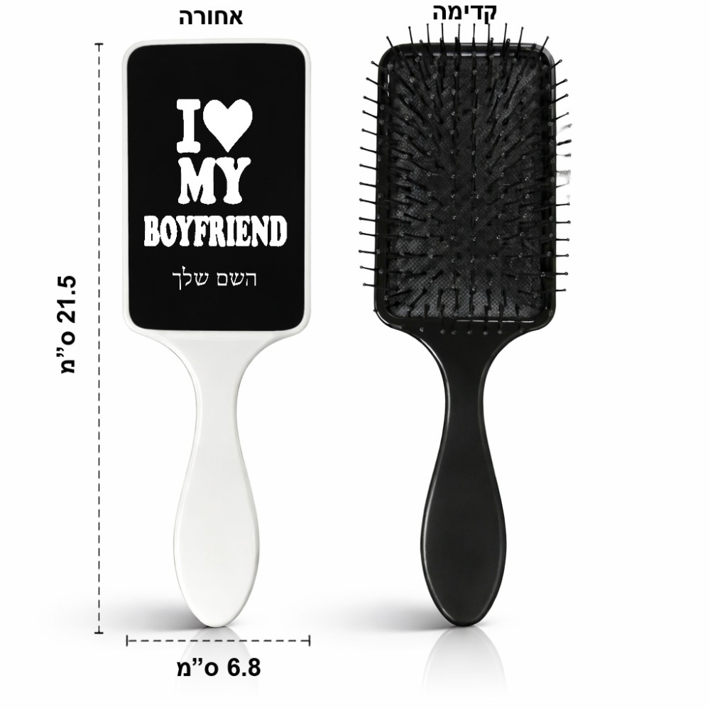 מסרק לשיער בעיצוב אישי עם השם שלך בעיצוב אוהבת את החבר שלי גודל המסרק 21.5 × 6.8 ס"מ. את השם המבוקש ניתן לציין בהזמנה, אם לא צויין אנחנו ניצור קשר לבירור.