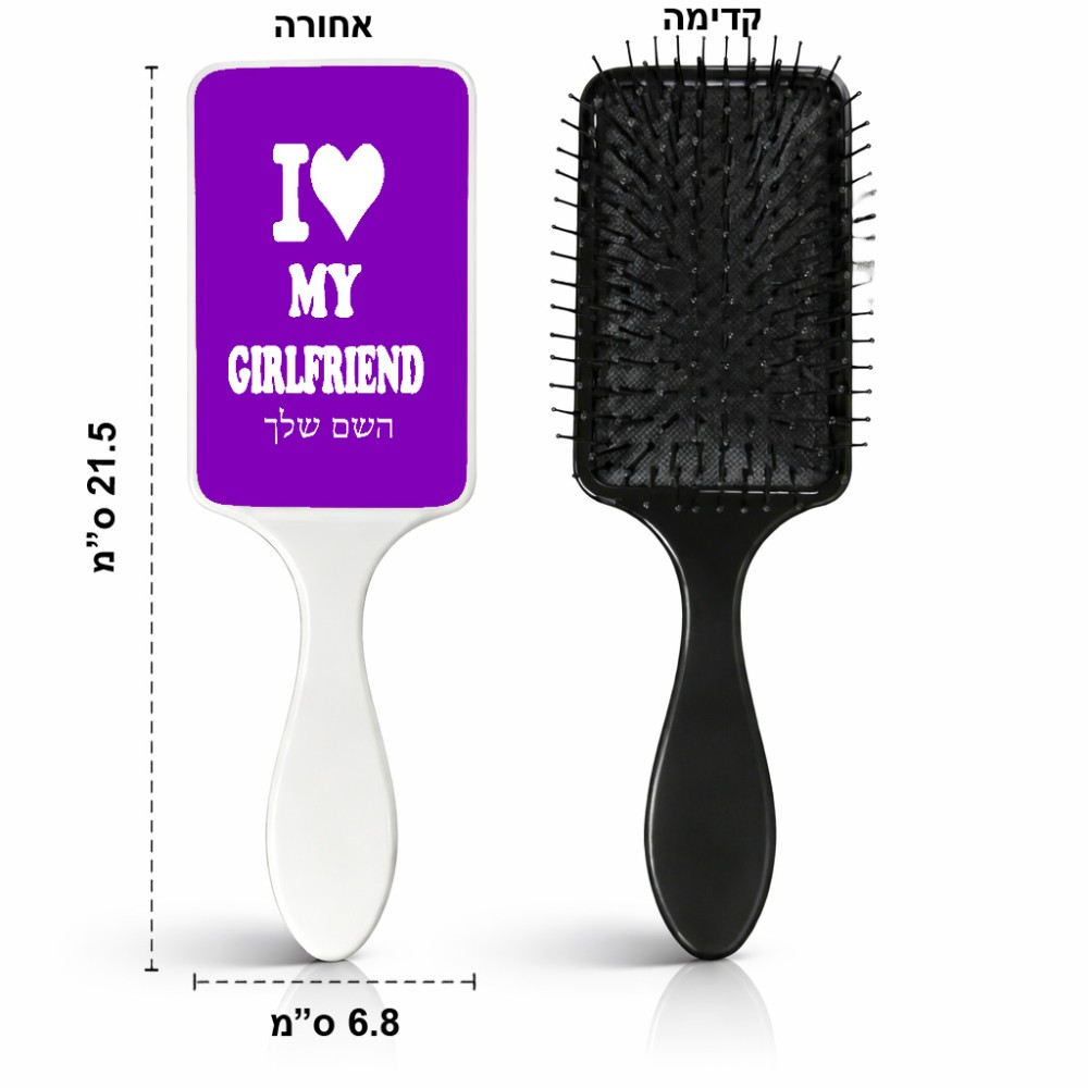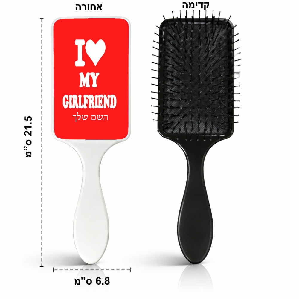 מסרק לשיער בעיצוב אישי עם השם שלך בעיצוב אוהב את החברה שלי גודל המסרק 21.5 × 6.8 ס"מ. את השם המבוקש ניתן לציין בהזמנה, אם לא צויין אנחנו ניצור קשר לבירור.