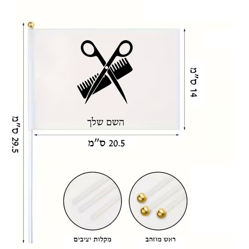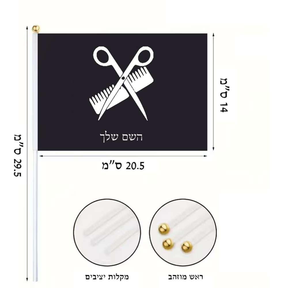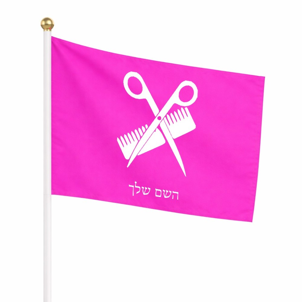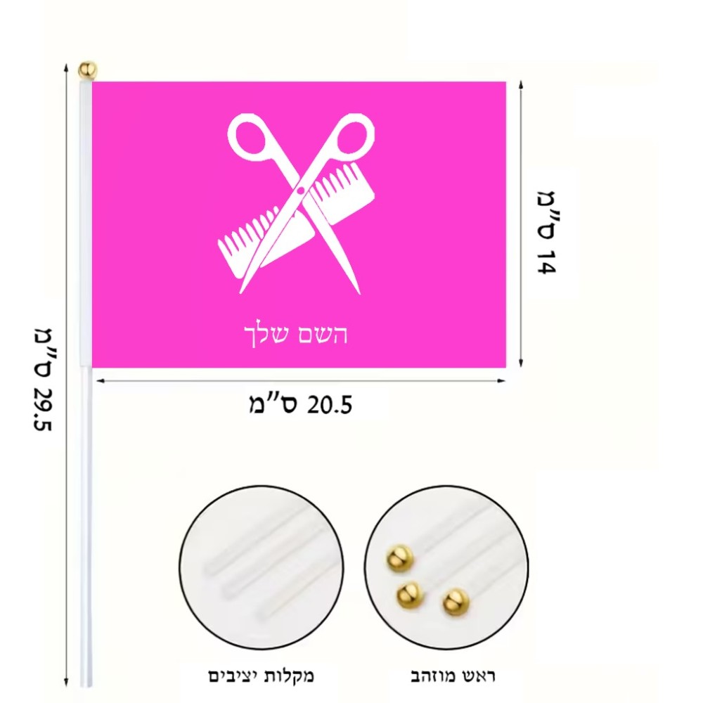 דיגלון בעיצוב אישי עם השם שלך בעיצוב מעצב שיער גודל הדיגלון 20.5 × 14 ס"מ, ההדפסה מתבצעת בשני צידי הדגל, את השם המבוקש ניתן לציין בהזמנה, אם לא צויין אנחנו ניצור קשר לבירור.