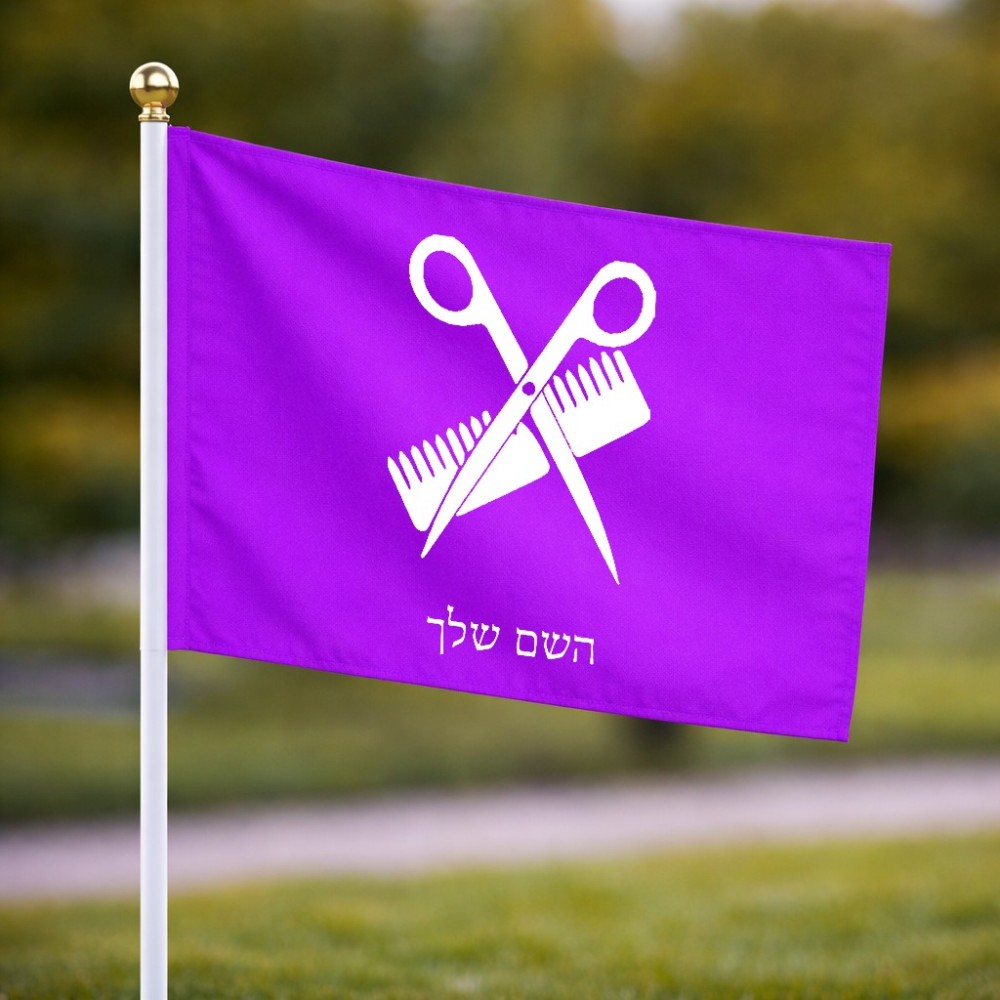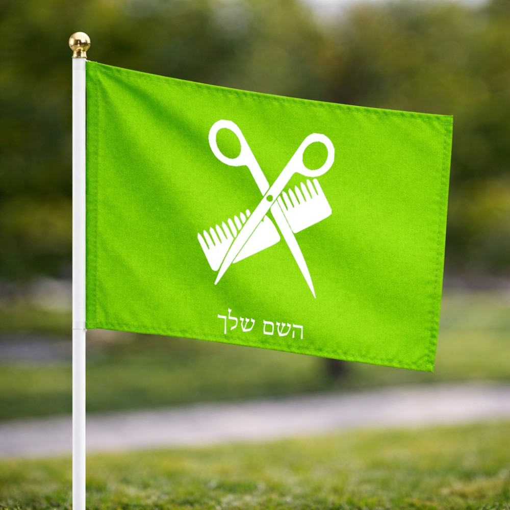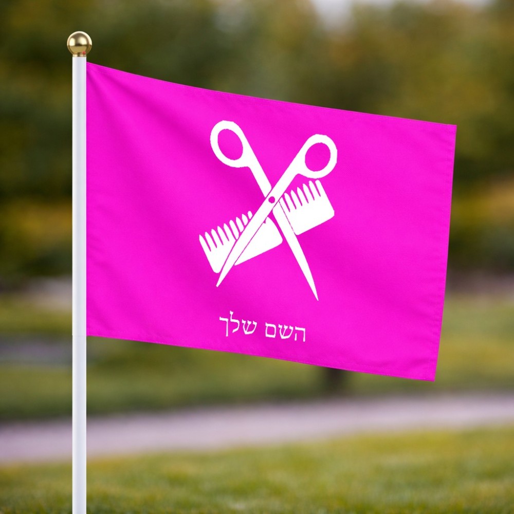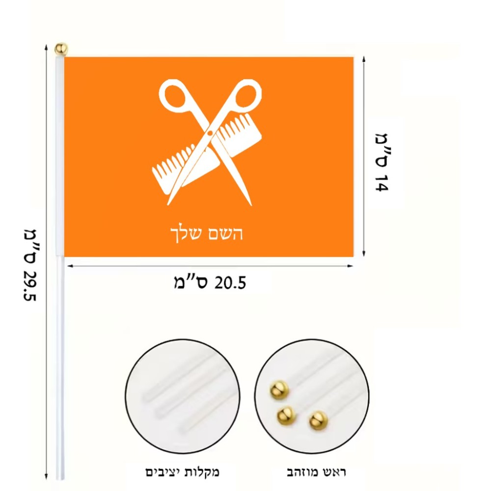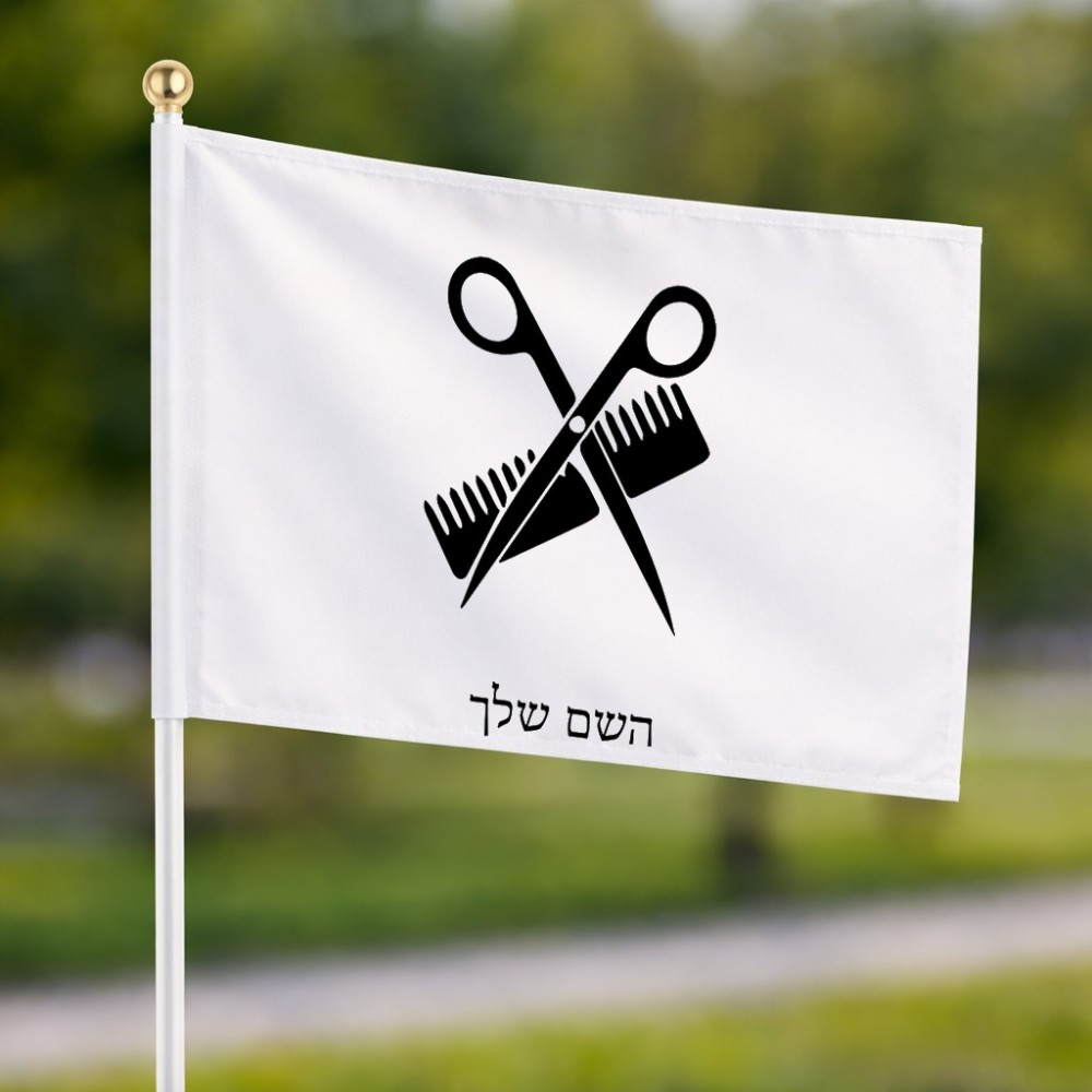 דיגלון בעיצוב אישי עם השם שלך בעיצוב מעצב שיער גודל הדיגלון 20.5 × 14 ס"מ, ההדפסה מתבצעת בשני צידי הדגל, את השם המבוקש ניתן לציין בהזמנה, אם לא צויין אנחנו ניצור קשר לבירור.