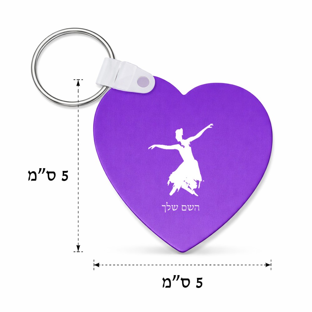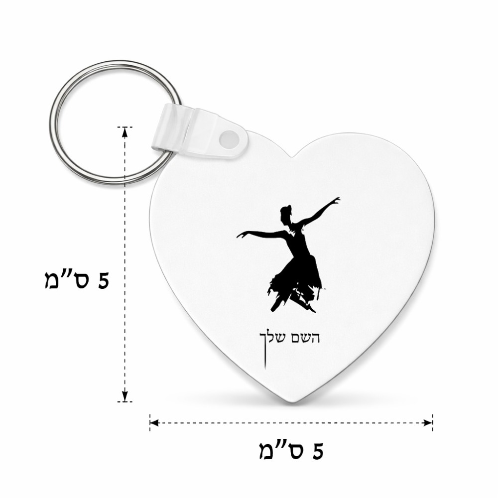 מחזיק מפתחות בצורת לב בעיצוב אישי עם השם שלך בעיצוב בלרינה גודל המחזיק 5 × 5 ס"מ. את השם המבוקש ניתן לציין בהזמנה, אם לא צויין אנחנו ניצור קשר לבירור.