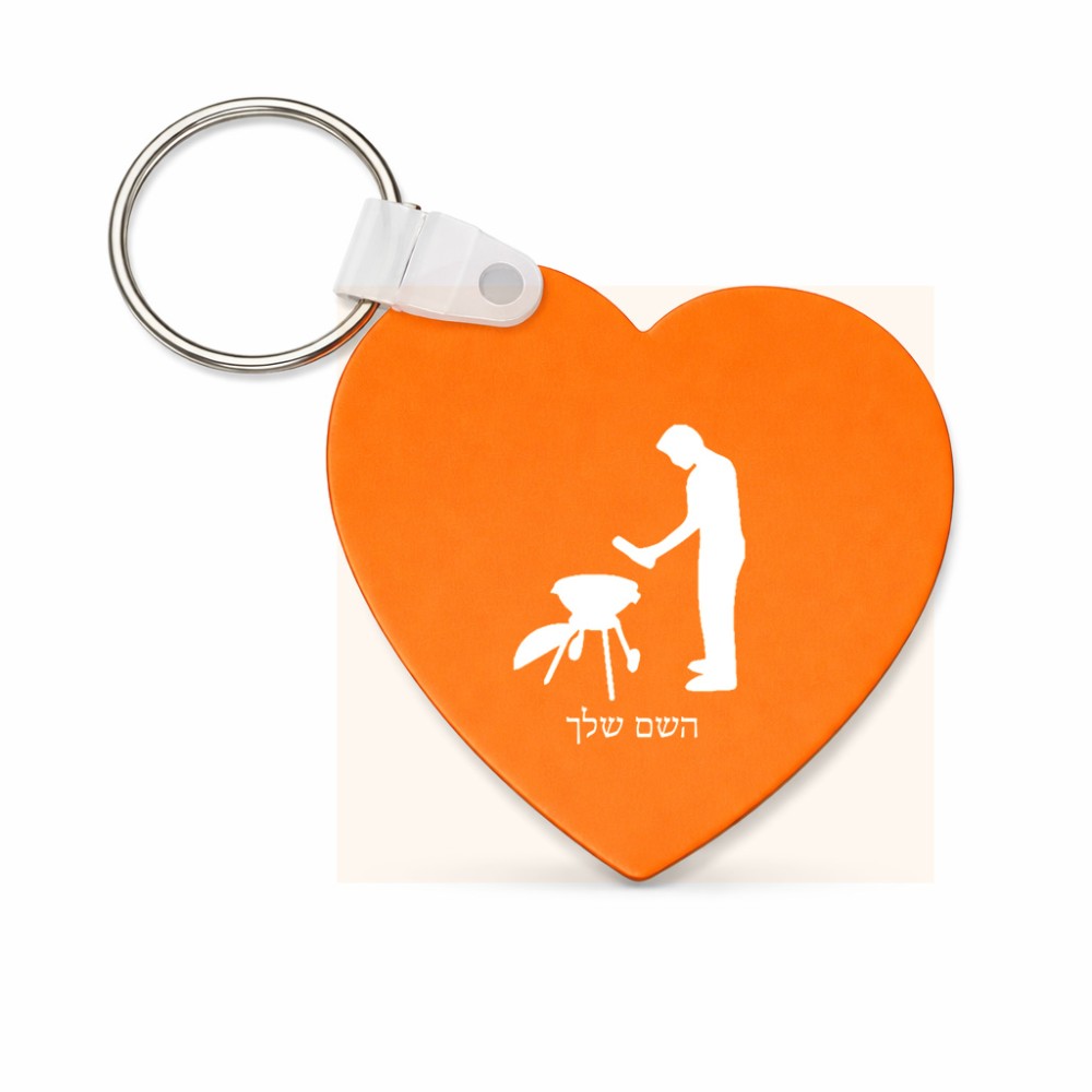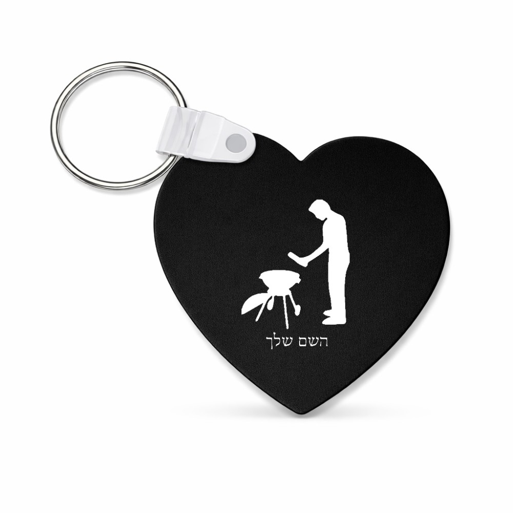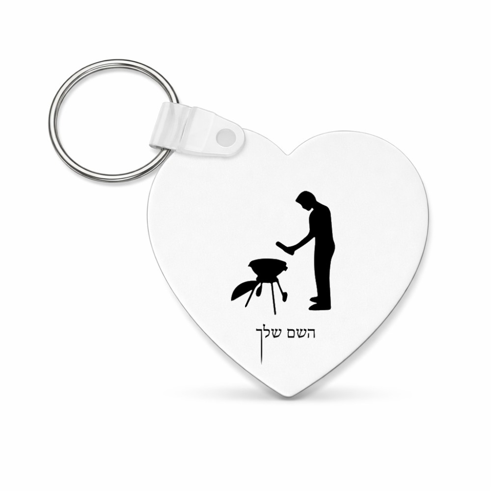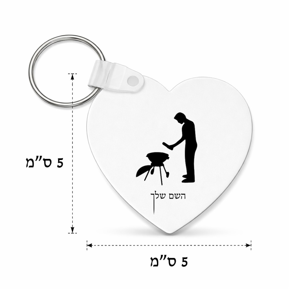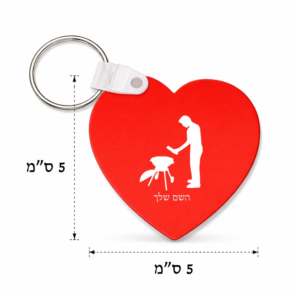 מחזיק מפתחות בצורת לב בעיצוב אישי עם השם שלך בעיצוב גריל ברביקיו גודל המחזיק 5 × 5 ס"מ. את השם המבוקש ניתן לציין בהזמנה, אם לא צויין אנחנו ניצור קשר לבירור.