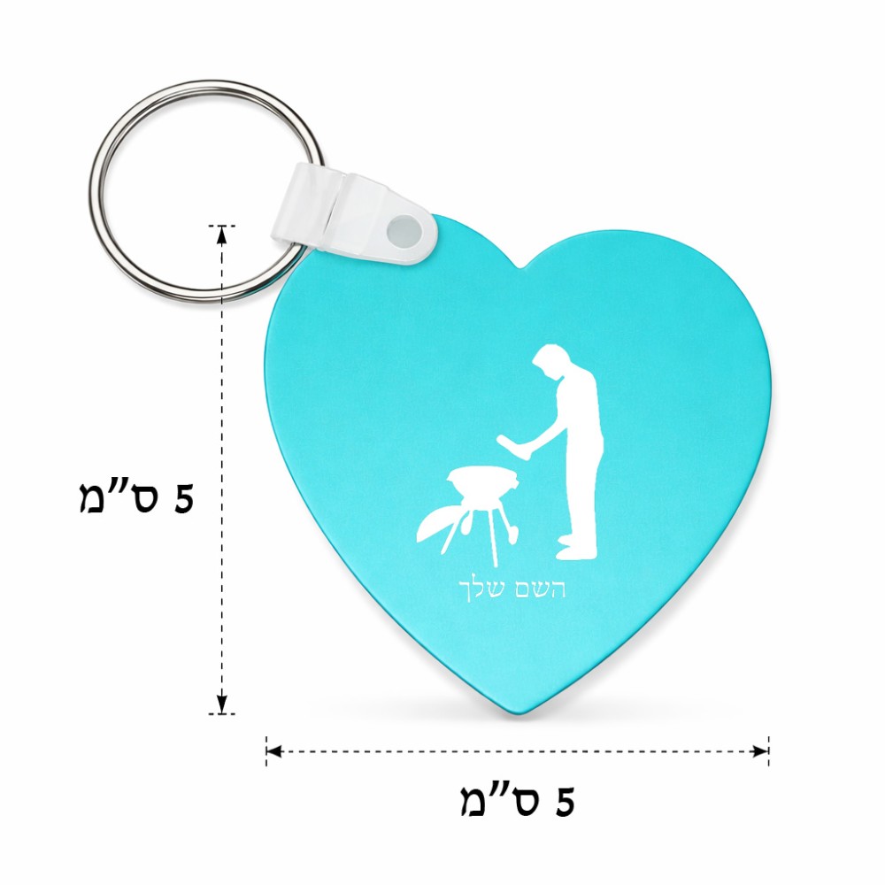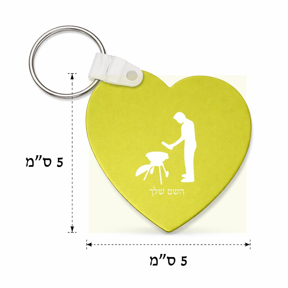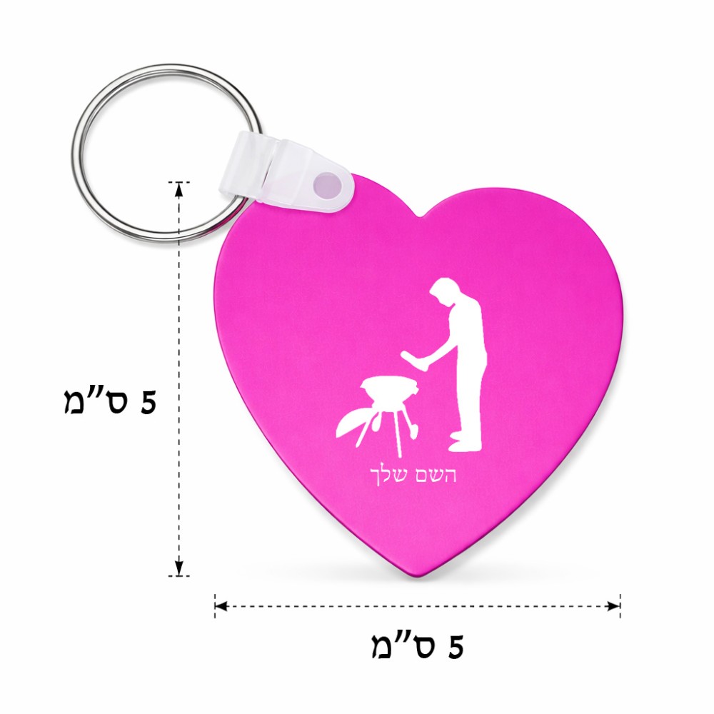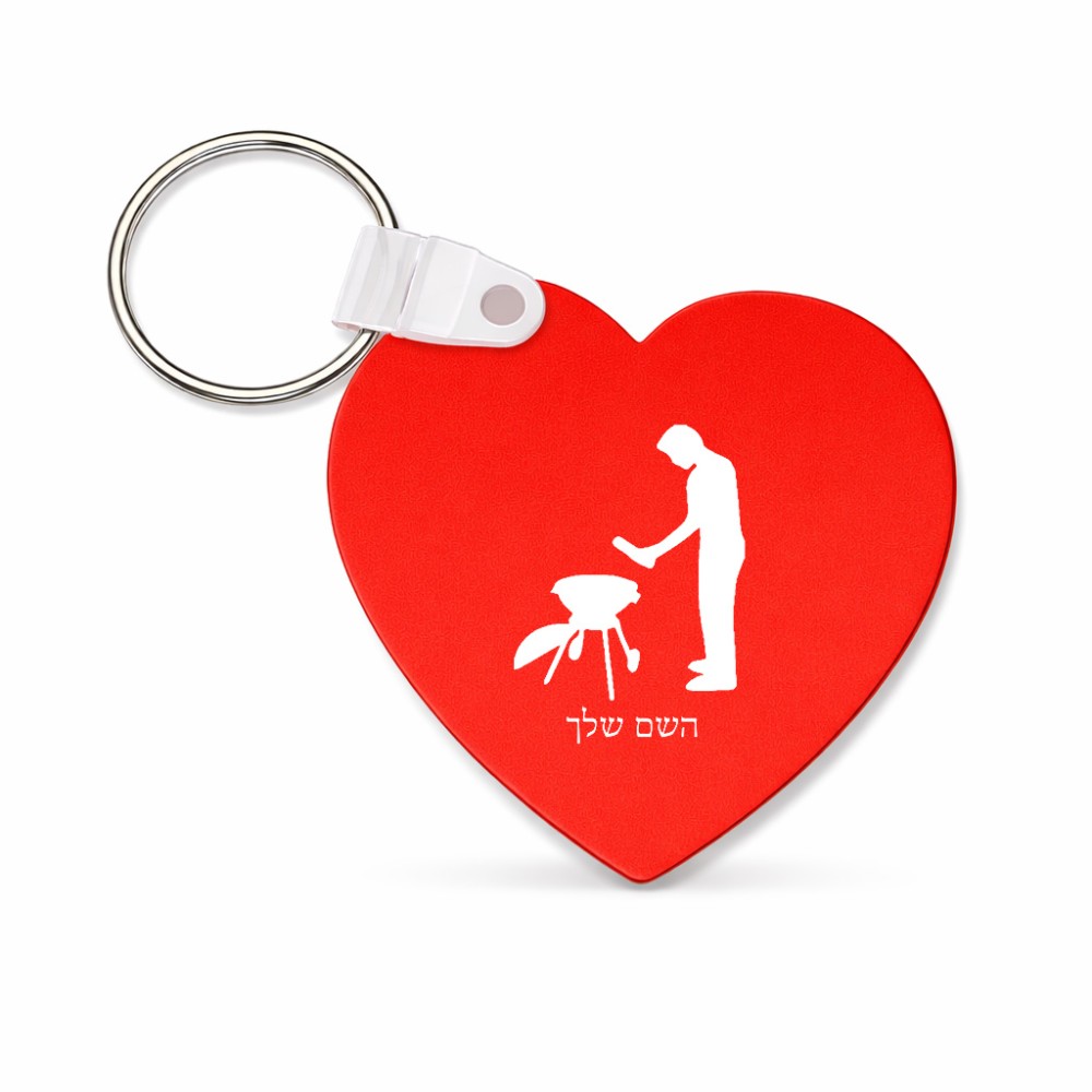 מחזיק מפתחות בצורת לב בעיצוב אישי עם השם שלך בעיצוב גריל ברביקיו גודל המחזיק 5 × 5 ס"מ. את השם המבוקש ניתן לציין בהזמנה, אם לא צויין אנחנו ניצור קשר לבירור.