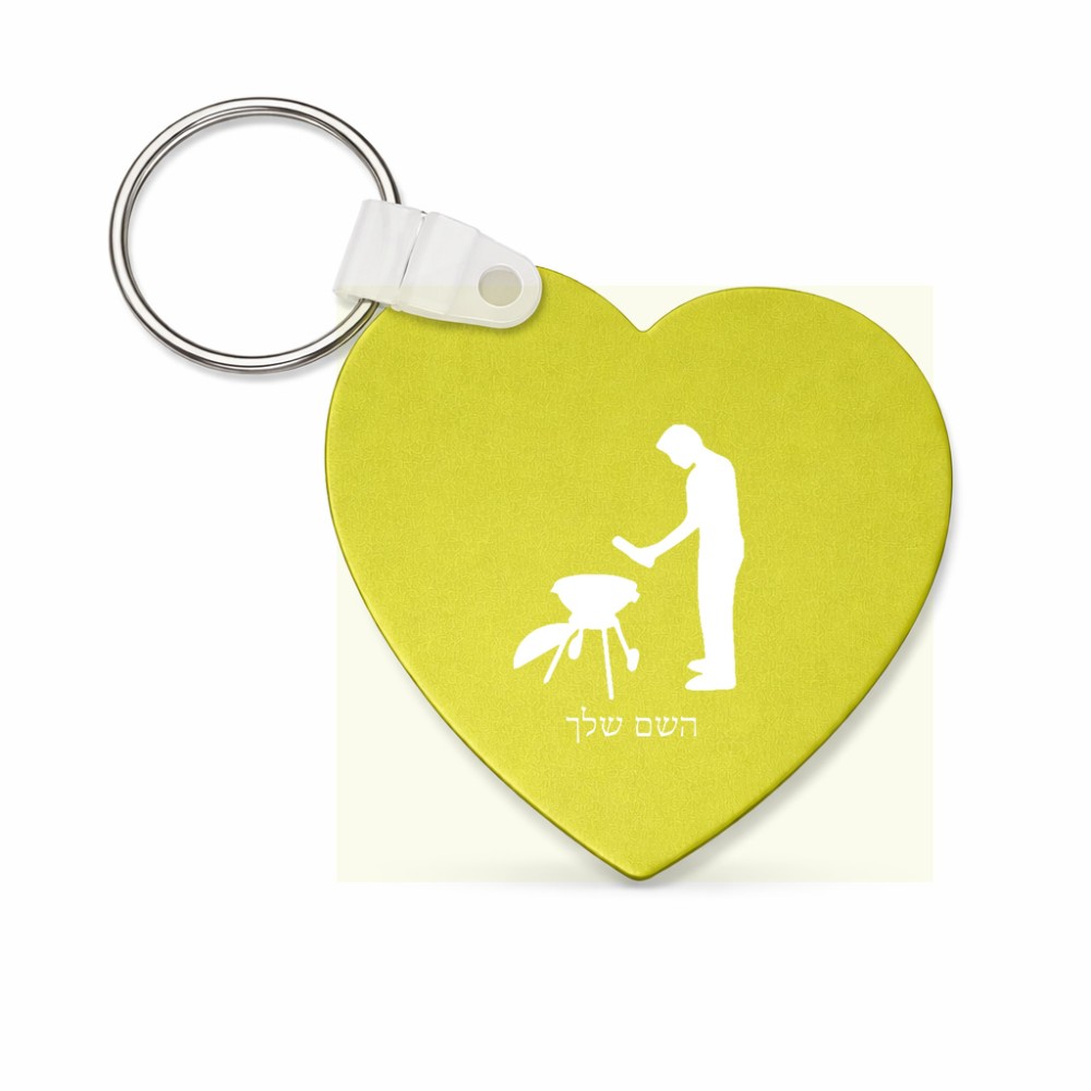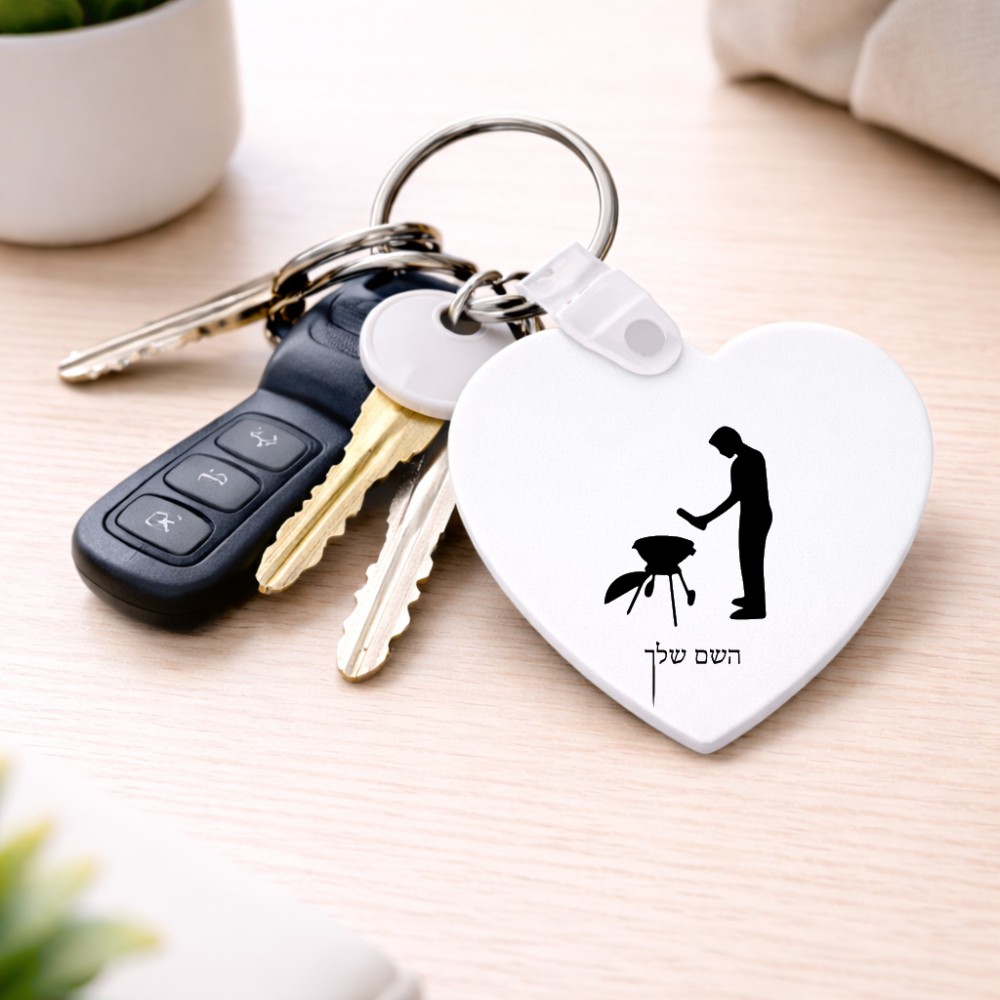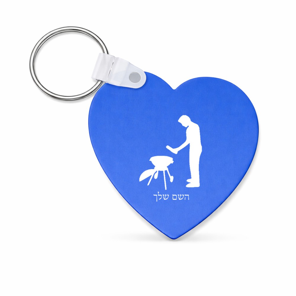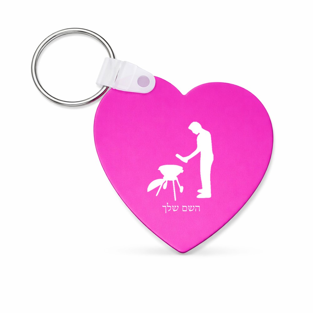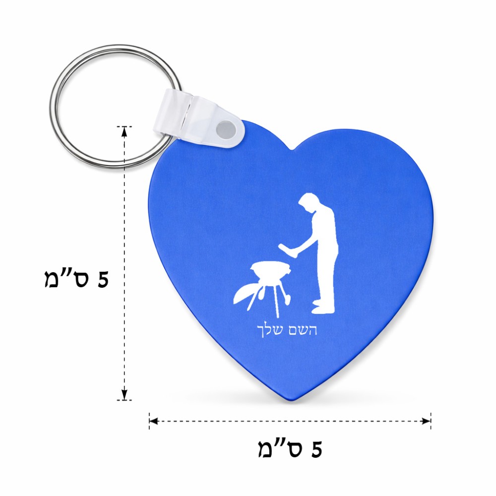 מחזיק מפתחות בצורת לב בעיצוב אישי עם השם שלך בעיצוב גריל ברביקיו גודל המחזיק 5 × 5 ס"מ. את השם המבוקש ניתן לציין בהזמנה, אם לא צויין אנחנו ניצור קשר לבירור.