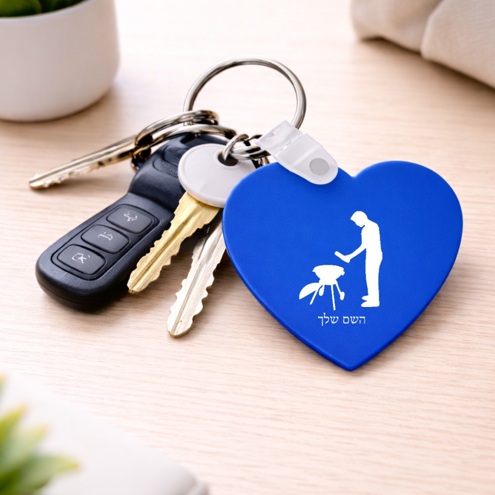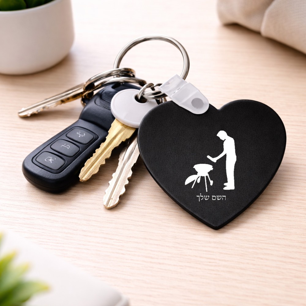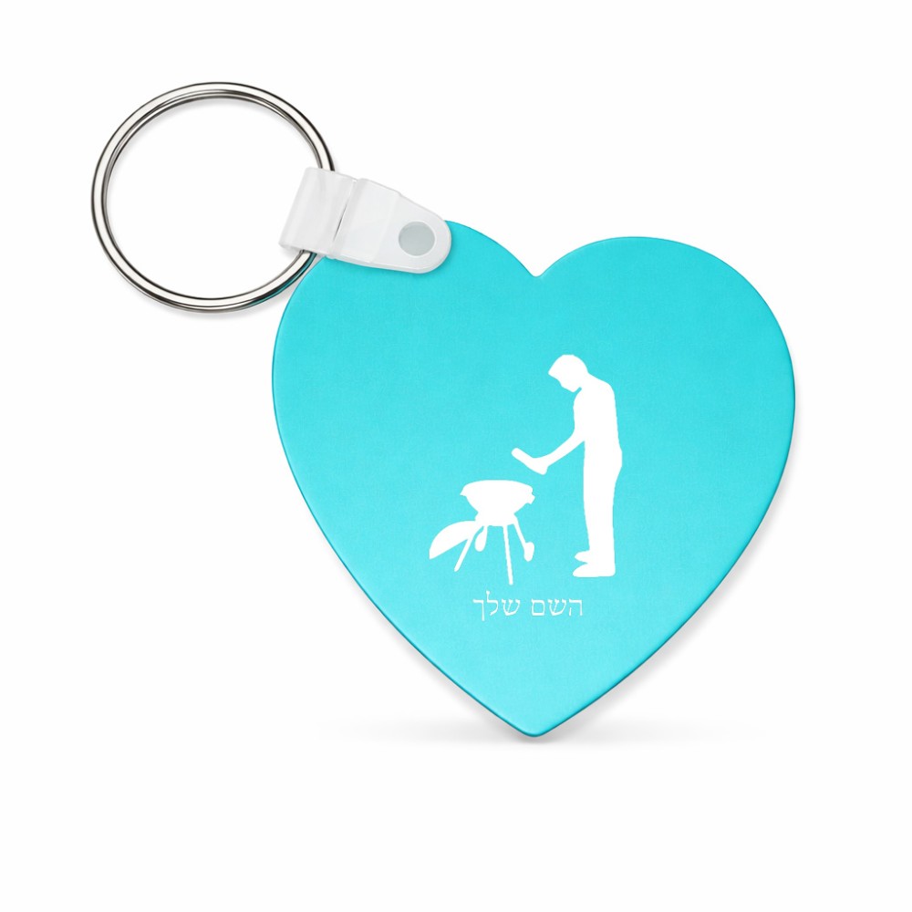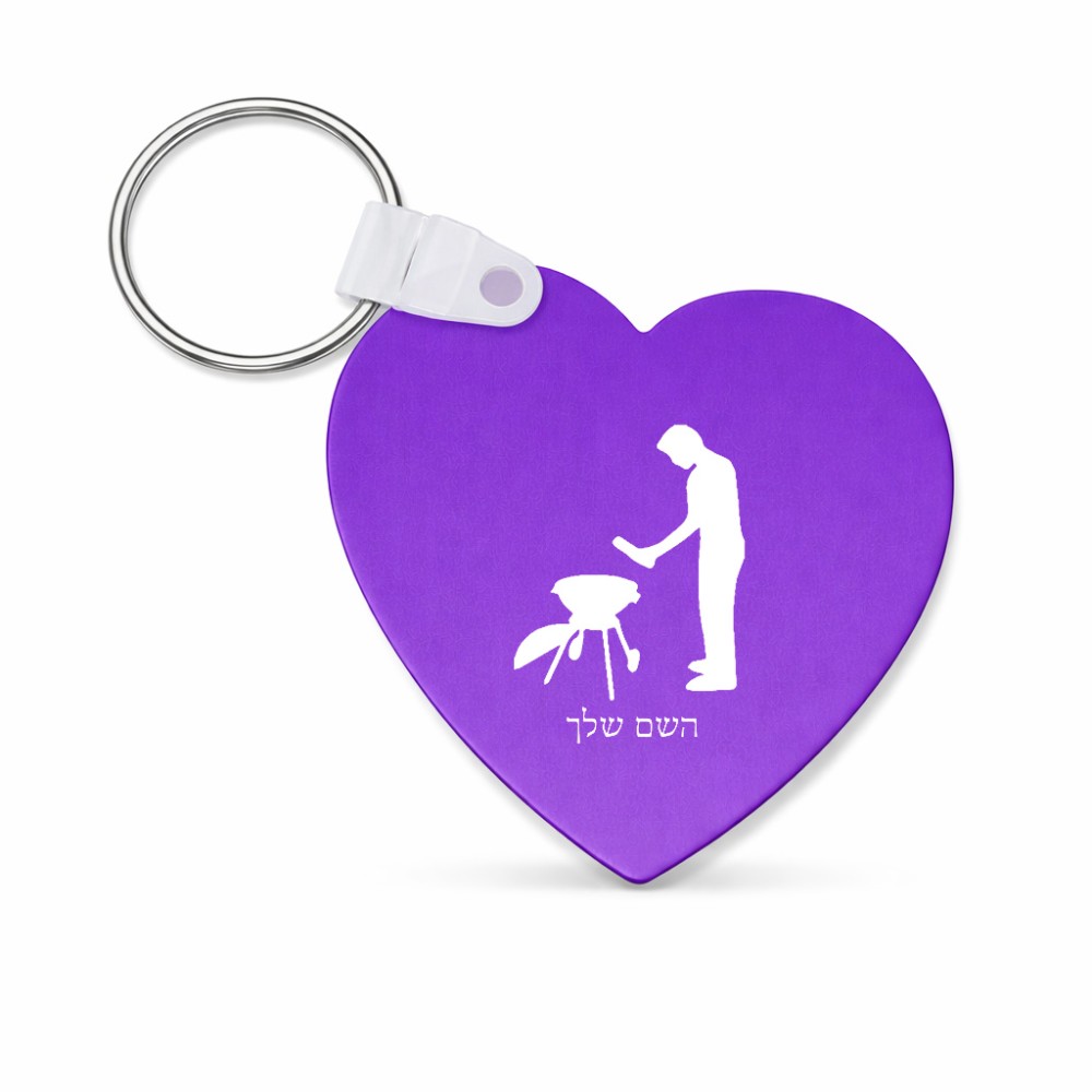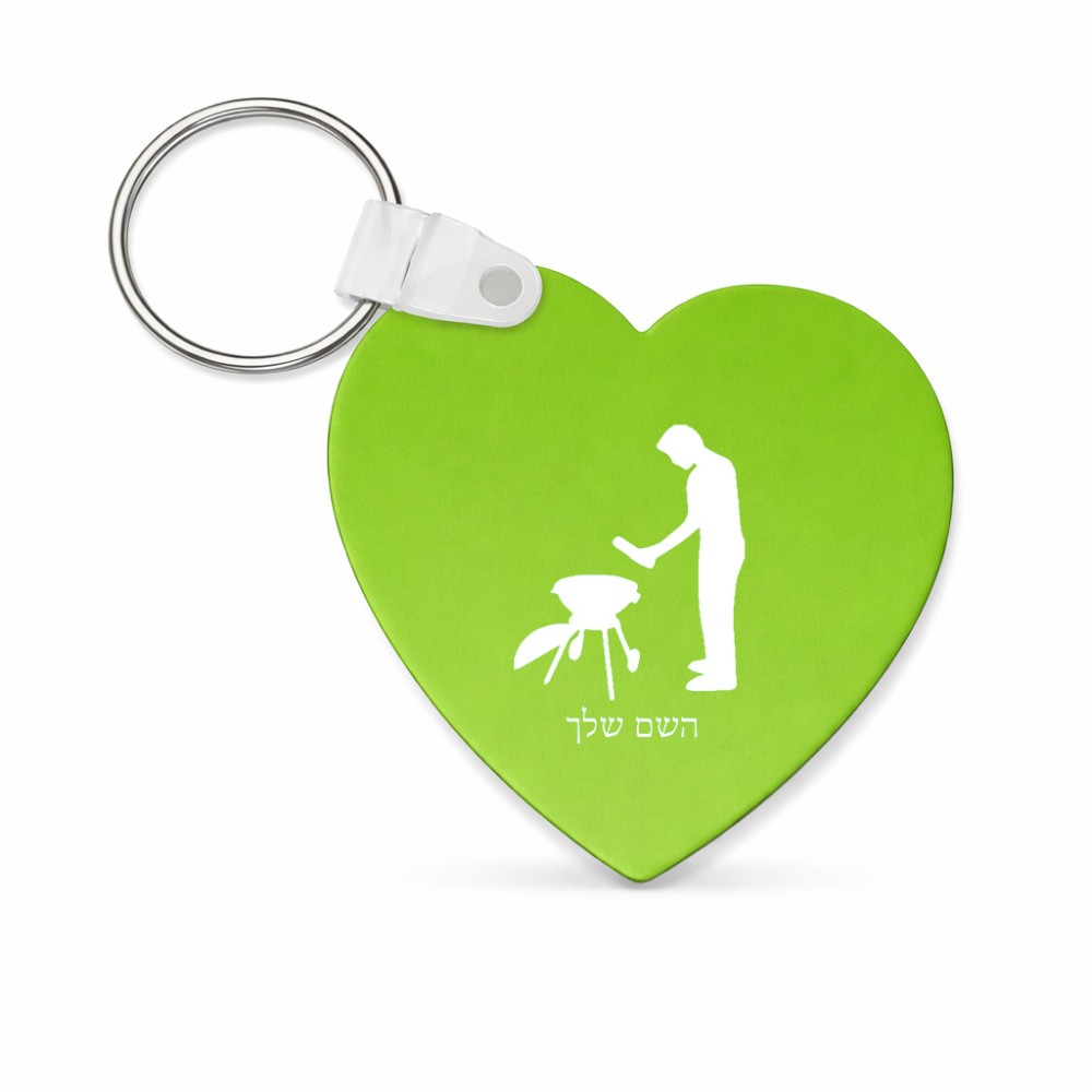 מחזיק מפתחות בצורת לב בעיצוב אישי עם השם שלך בעיצוב גריל ברביקיו גודל המחזיק 5 × 5 ס"מ. את השם המבוקש ניתן לציין בהזמנה, אם לא צויין אנחנו ניצור קשר לבירור.
