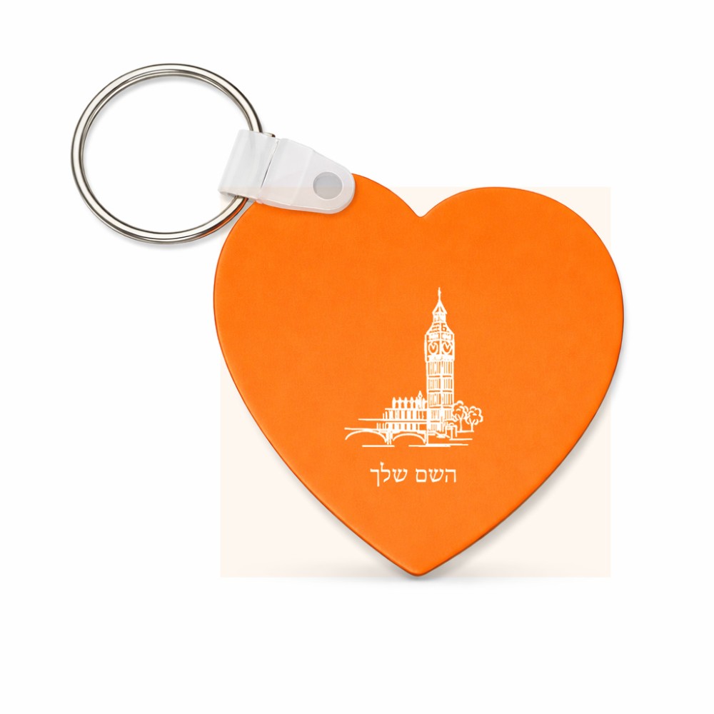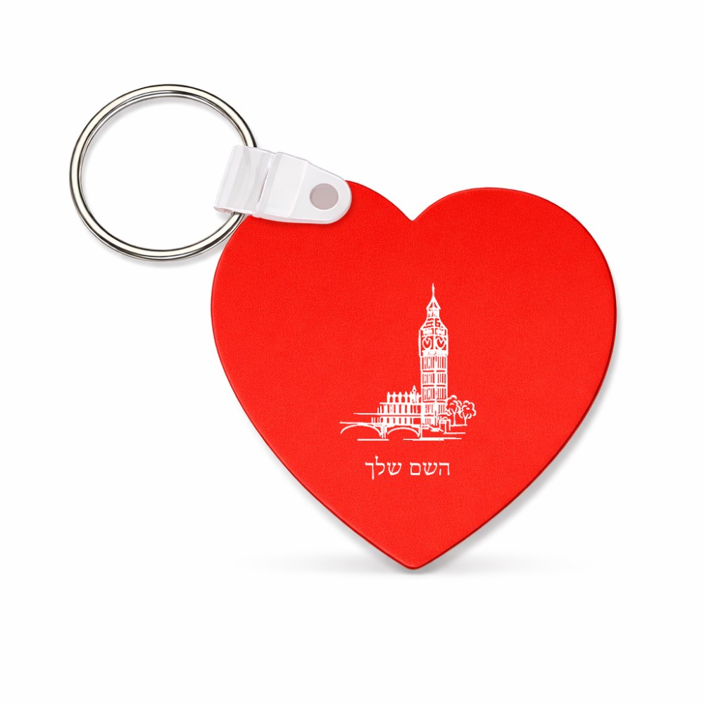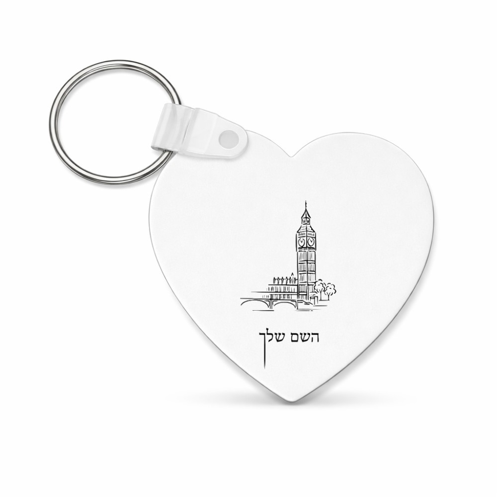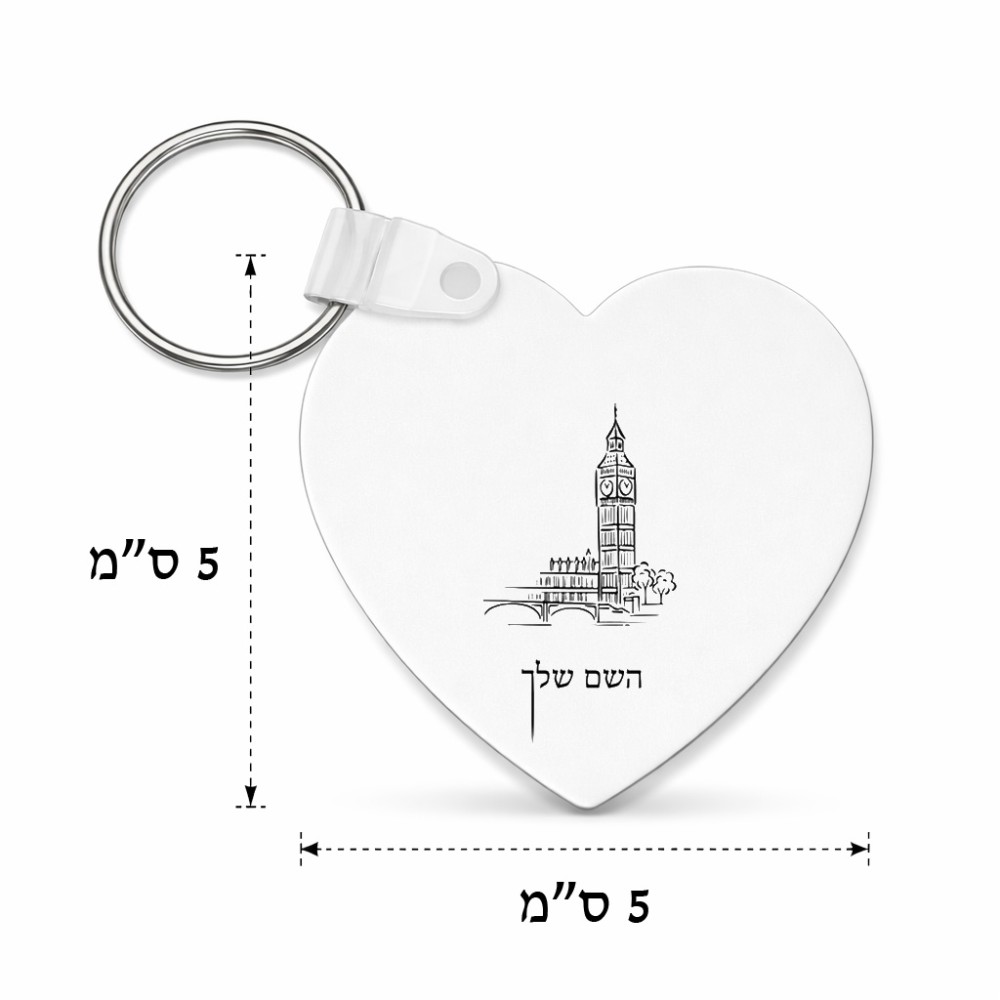 מחזיק מפתחות בצורת לב בעיצוב אישי עם השם שלך בעיצוב ביג בן גודל המחזיק 5 × 5 ס"מ. את השם המבוקש ניתן לציין בהזמנה, אם לא צויין אנחנו ניצור קשר לבירור.