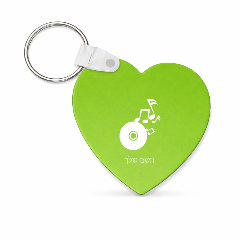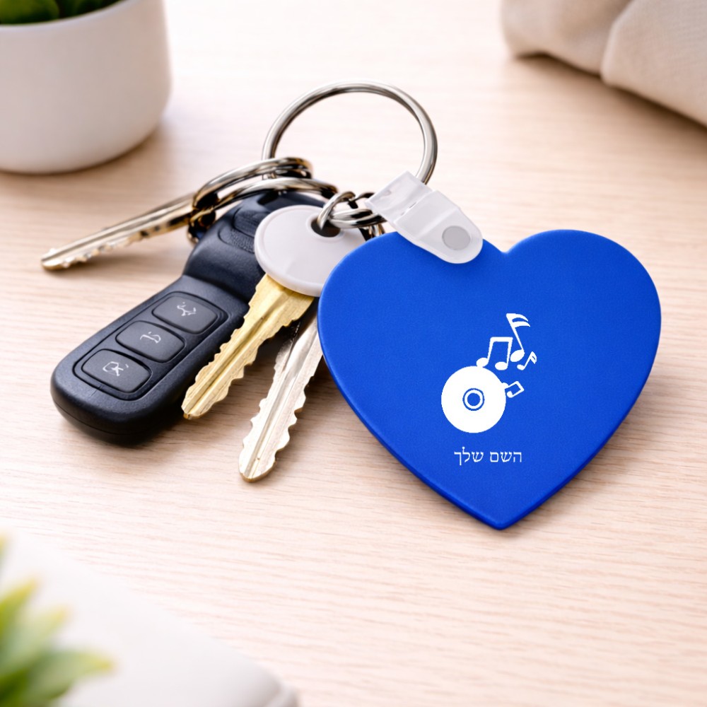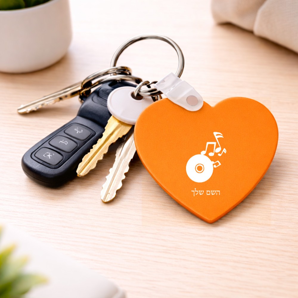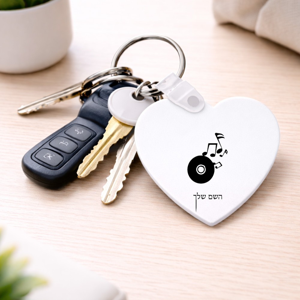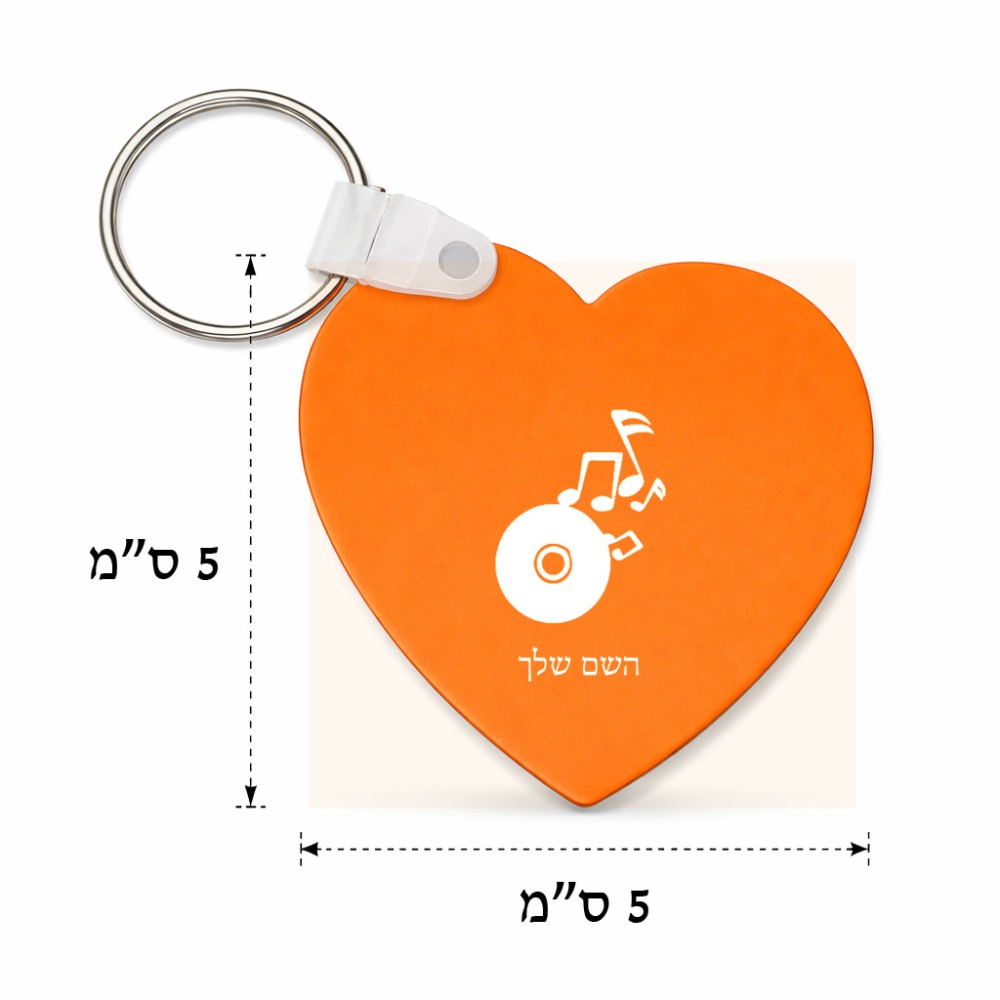 מחזיק מפתחות בצורת לב בעיצוב אישי עם השם שלך בעיצוב תקליטור - אזור מוזיקה גודל המחזיק 5 × 5 ס"מ. את השם המבוקש ניתן לציין בהזמנה, אם לא צויין אנחנו ניצור קשר לבירור.