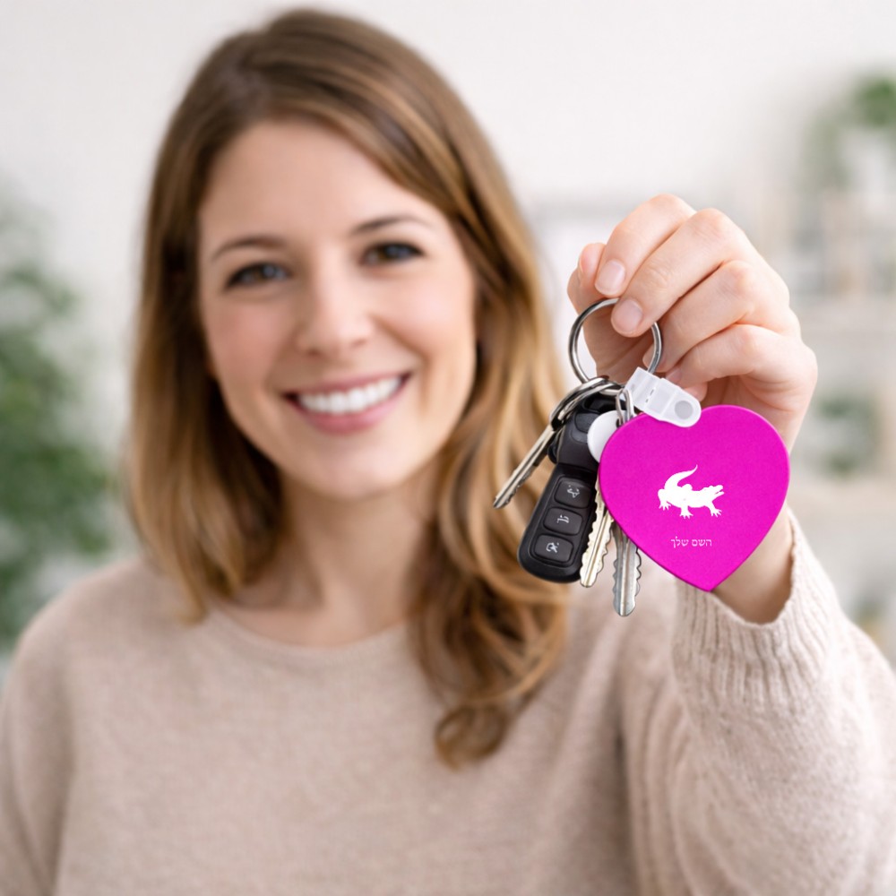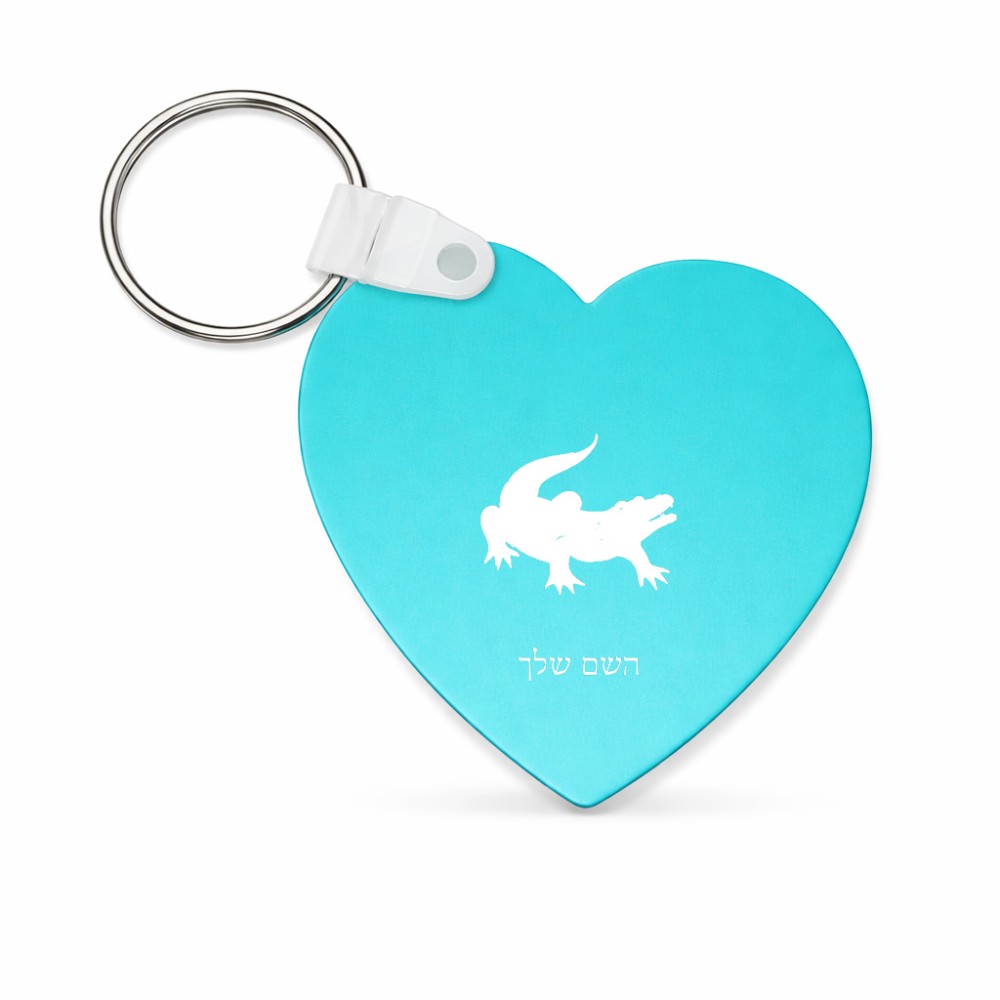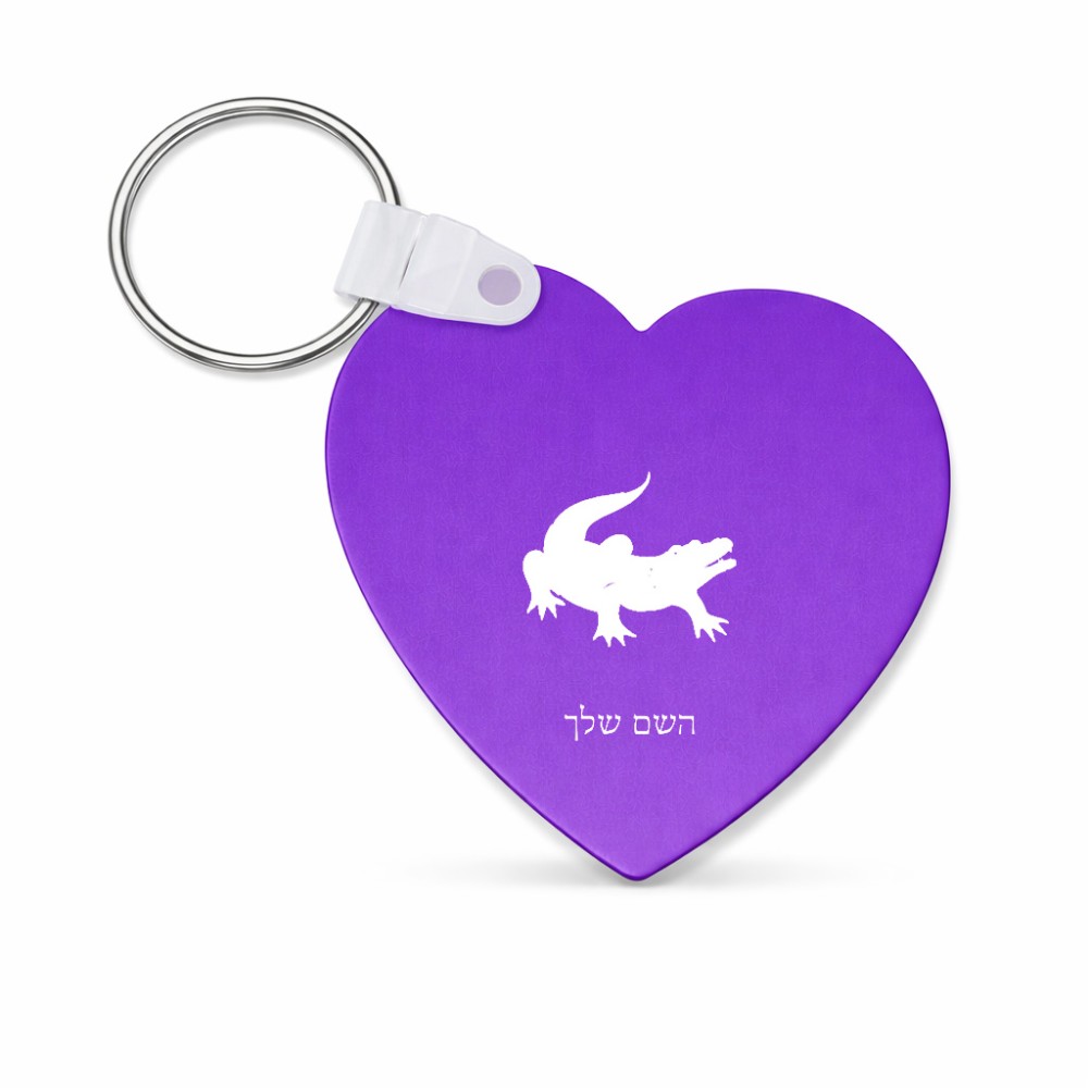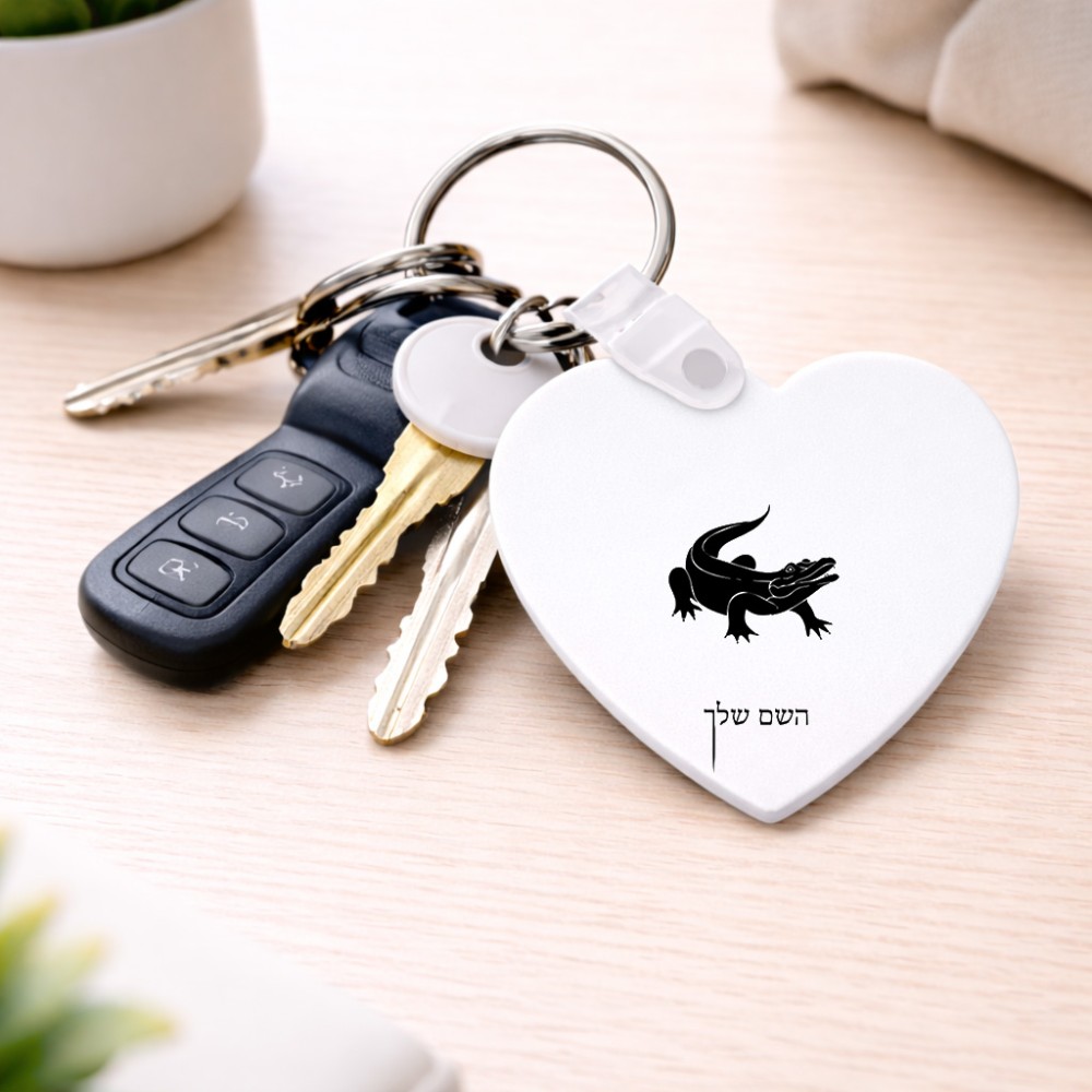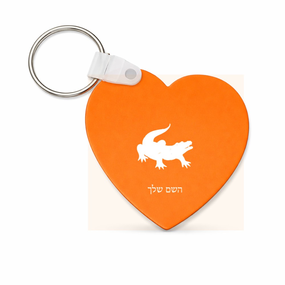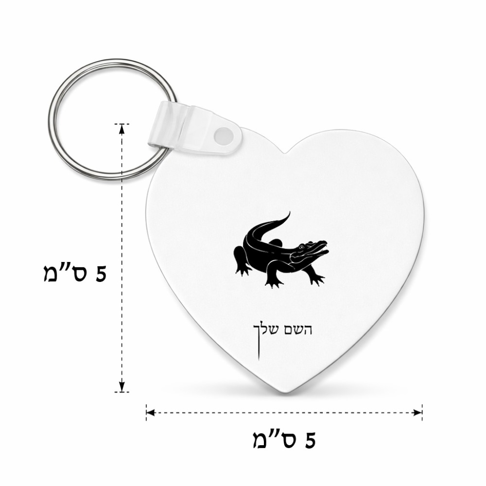מחזיק מפתחות בצורת לב בעיצוב אישי עם השם שלך בעיצוב תנין גודל המחזיק 5 × 5 ס"מ. את השם המבוקש ניתן לציין בהזמנה, אם לא צויין אנחנו ניצור קשר לבירור.