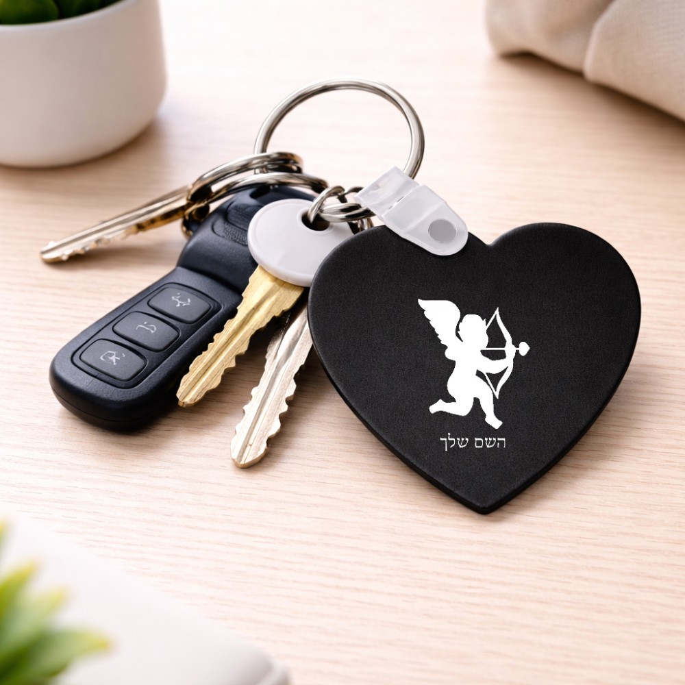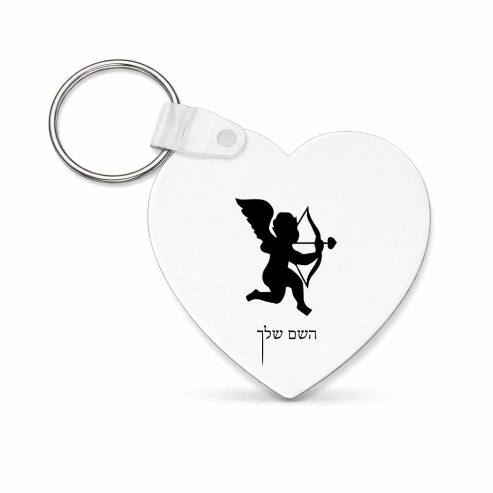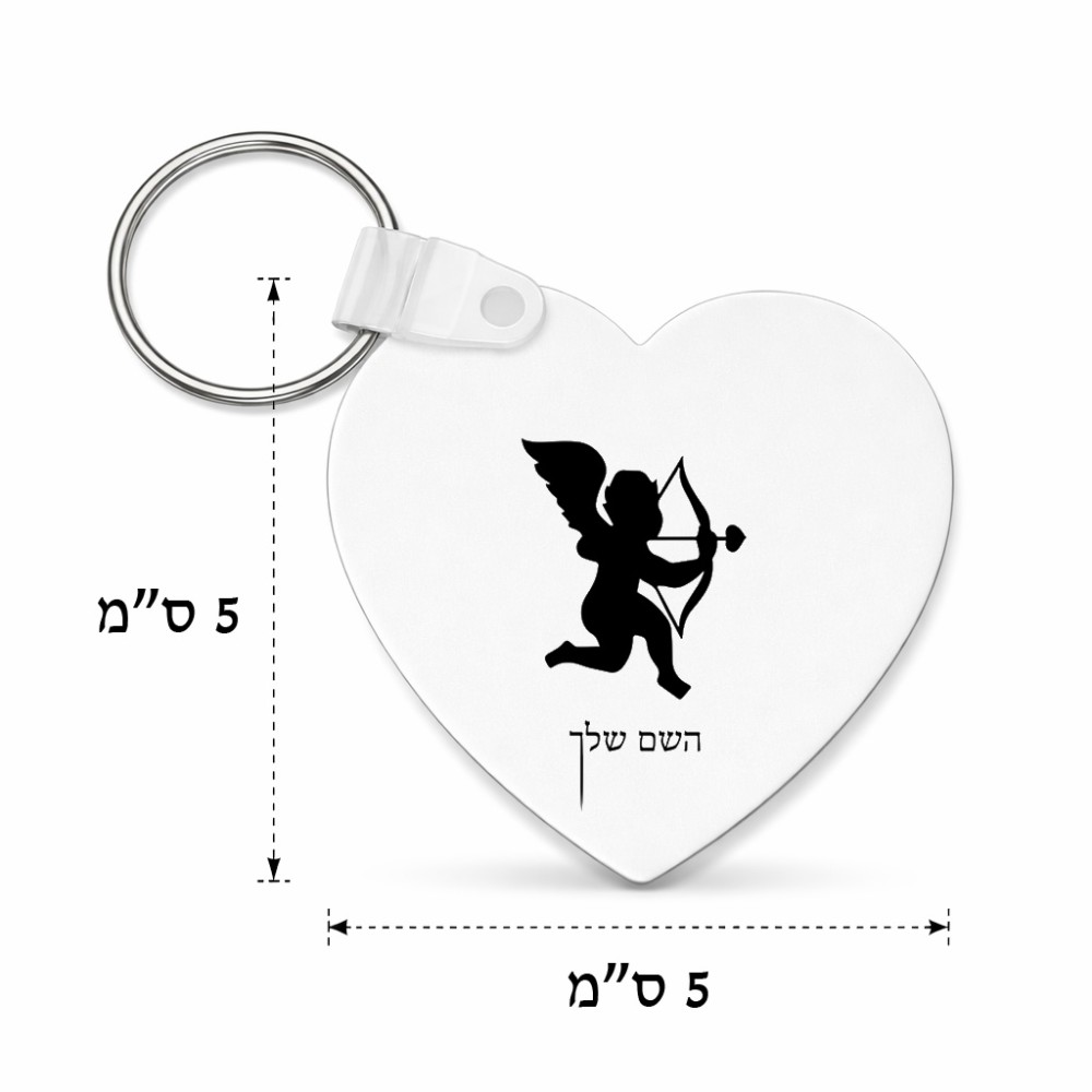 מחזיק מפתחות בצורת לב בעיצוב אישי עם השם שלך בעיצוב קופידון גודל המחזיק 5 × 5 ס"מ. את השם המבוקש ניתן לציין בהזמנה, אם לא צויין אנחנו ניצור קשר לבירור.