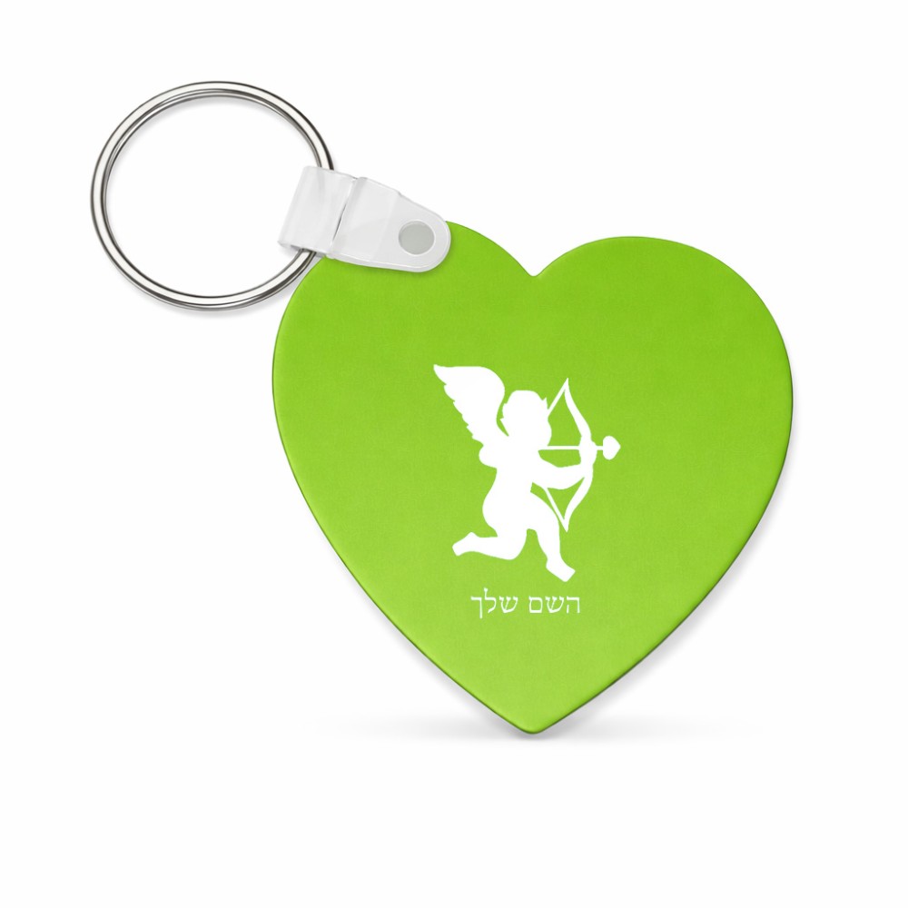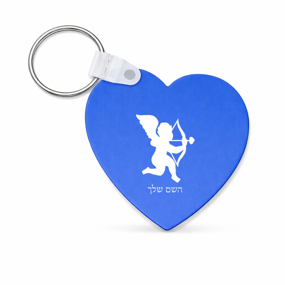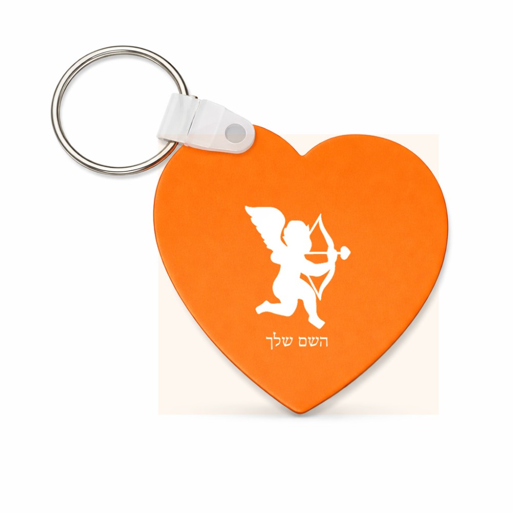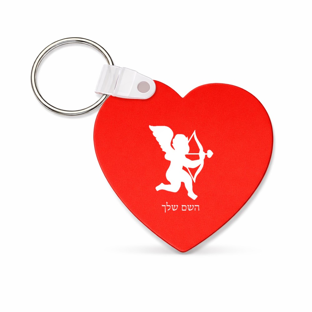 מחזיק מפתחות בצורת לב בעיצוב אישי עם השם שלך בעיצוב קופידון גודל המחזיק 5 × 5 ס"מ. את השם המבוקש ניתן לציין בהזמנה, אם לא צויין אנחנו ניצור קשר לבירור.