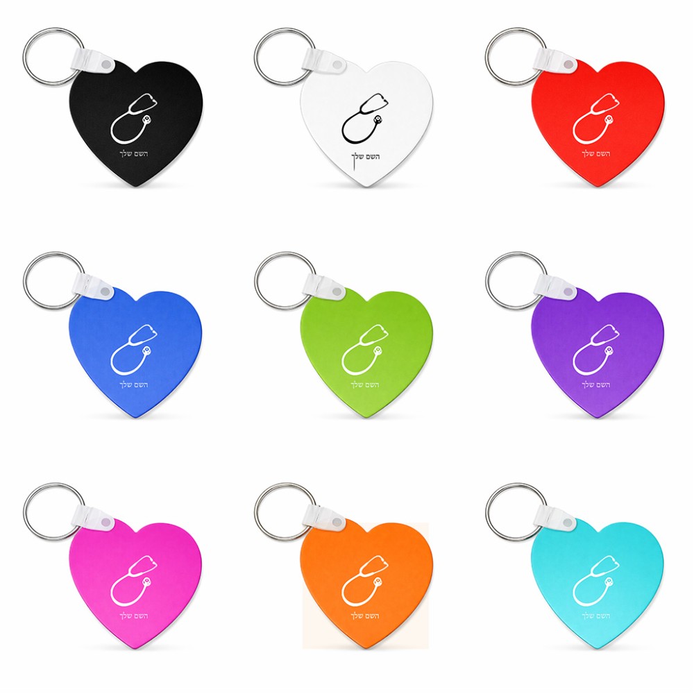 מחזיק מפתחות בצורת לב בעיצוב אישי עם השם שלך בעיצוב סטטוסקופ רופא גודל המחזיק 5 × 5 ס"מ
