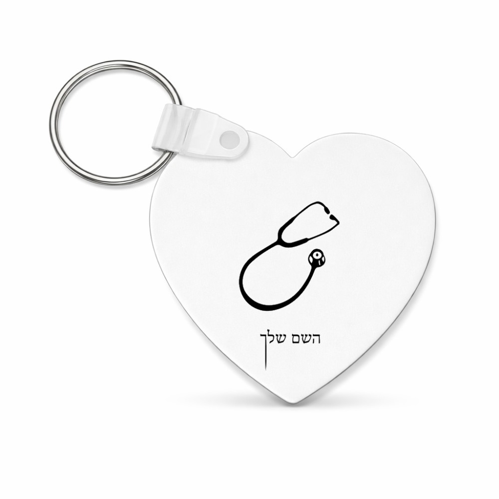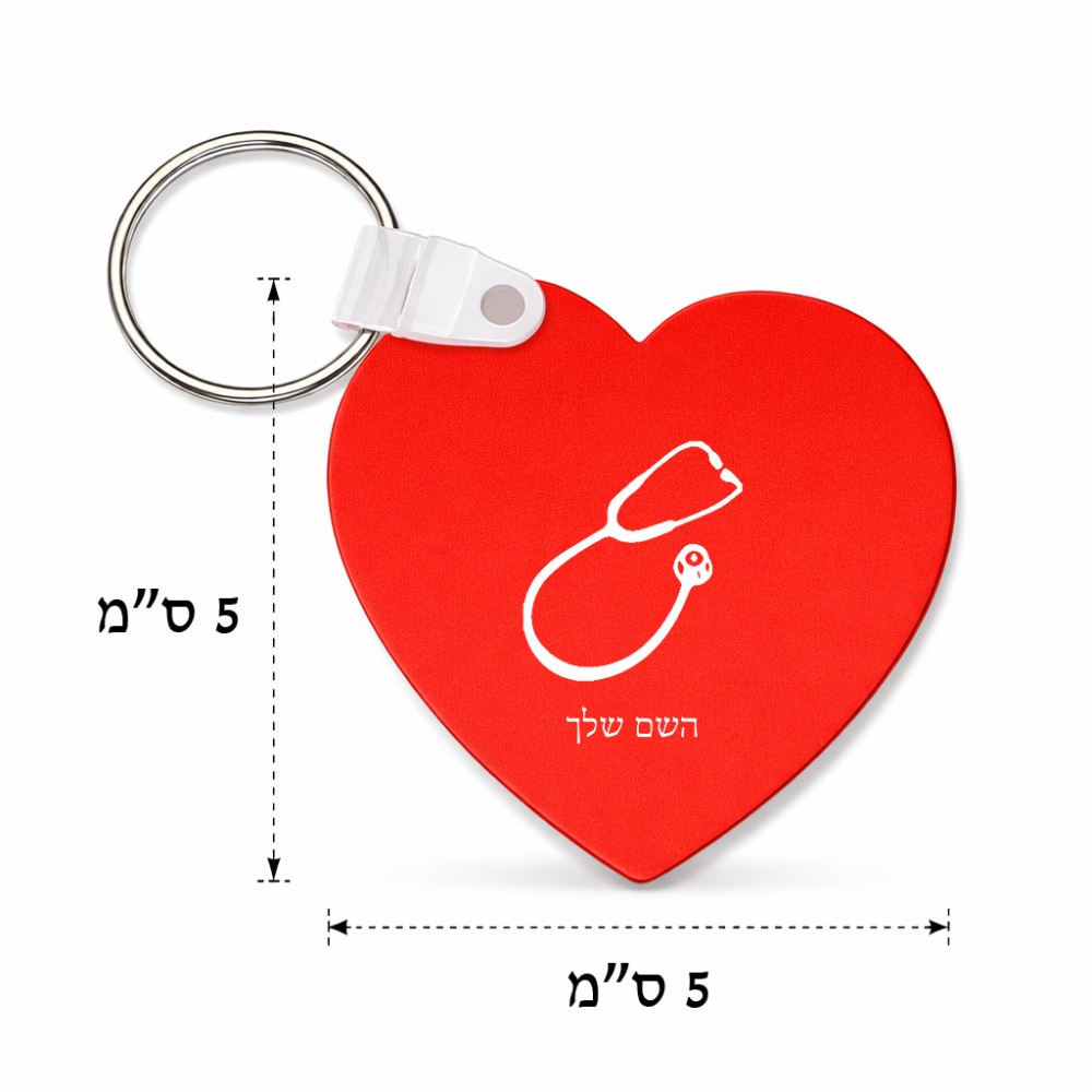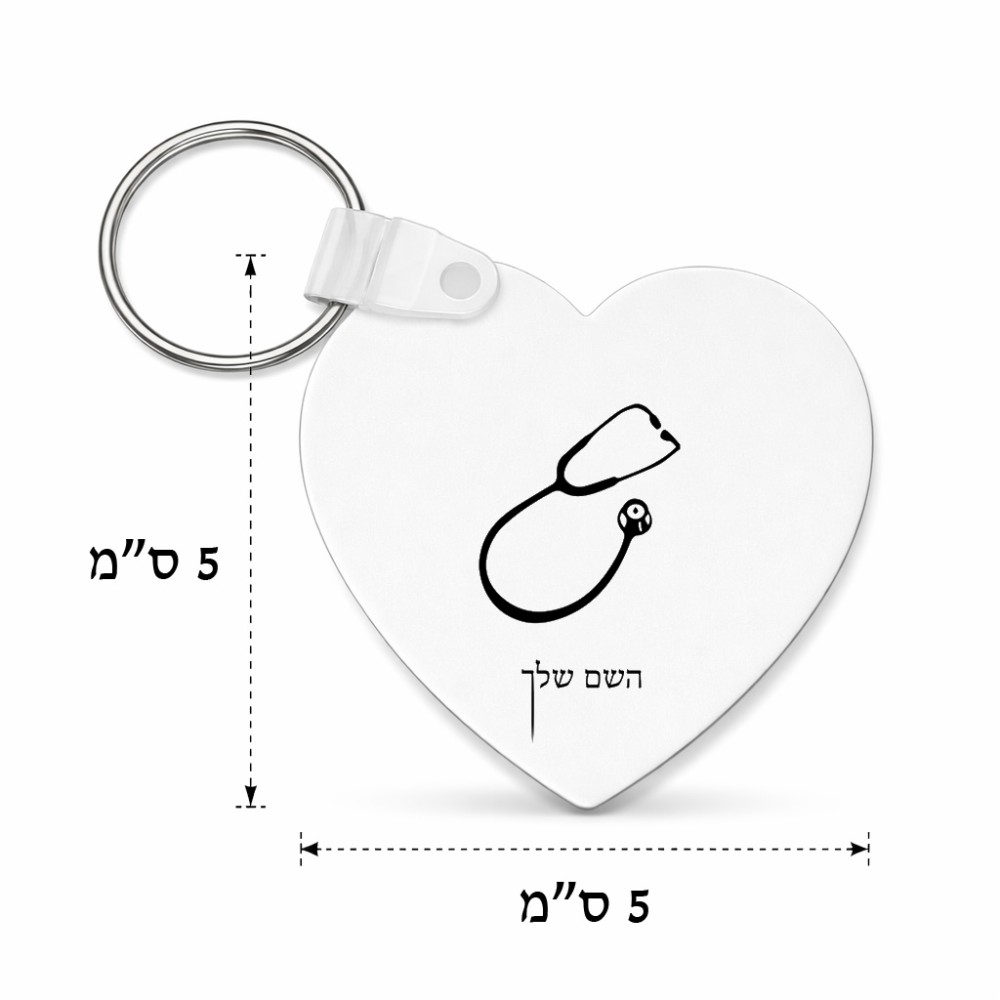 מחזיק מפתחות בצורת לב בעיצוב אישי עם השם שלך בעיצוב סטטוסקופ רופא גודל המחזיק 5 × 5 ס"מ. את השם המבוקש ניתן לציין בהזמנה, אם לא צויין אנחנו ניצור קשר לבירור.