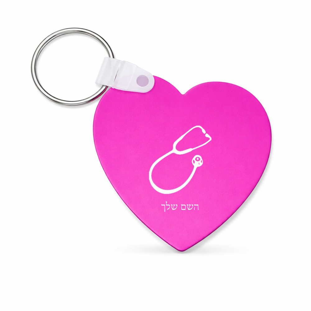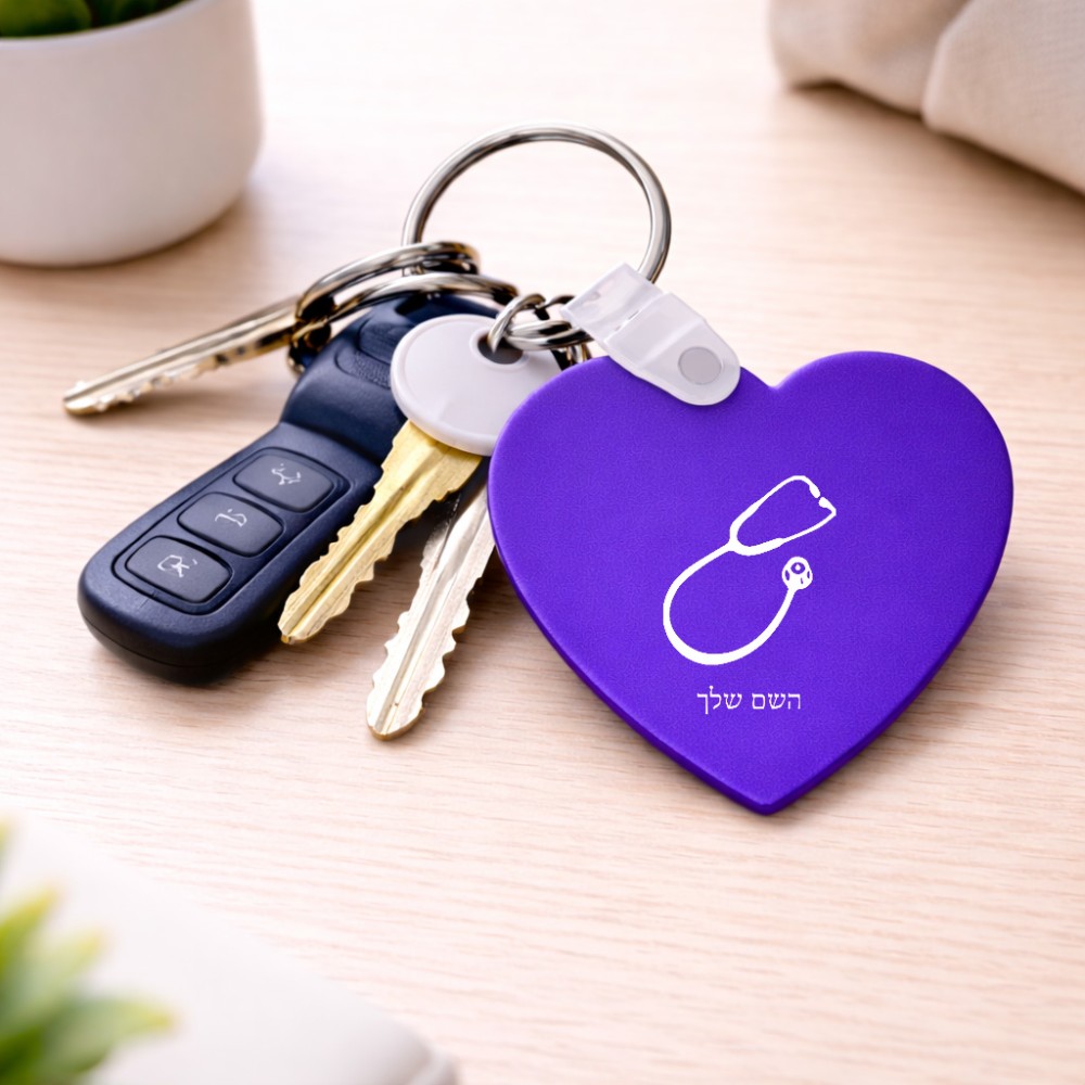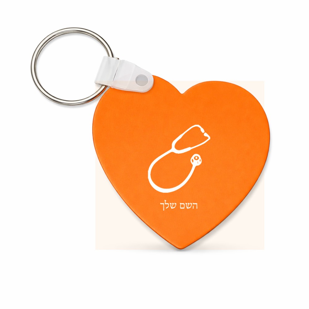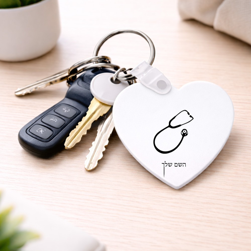 מחזיק מפתחות בצורת לב בעיצוב אישי עם השם שלך בעיצוב סטטוסקופ רופא גודל המחזיק 5 × 5 ס"מ. את השם המבוקש ניתן לציין בהזמנה, אם לא צויין אנחנו ניצור קשר לבירור.