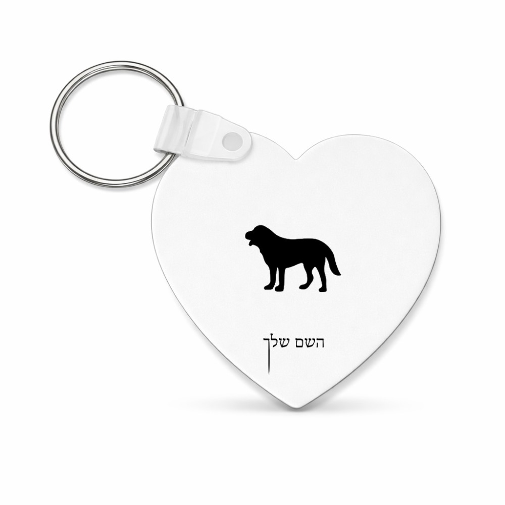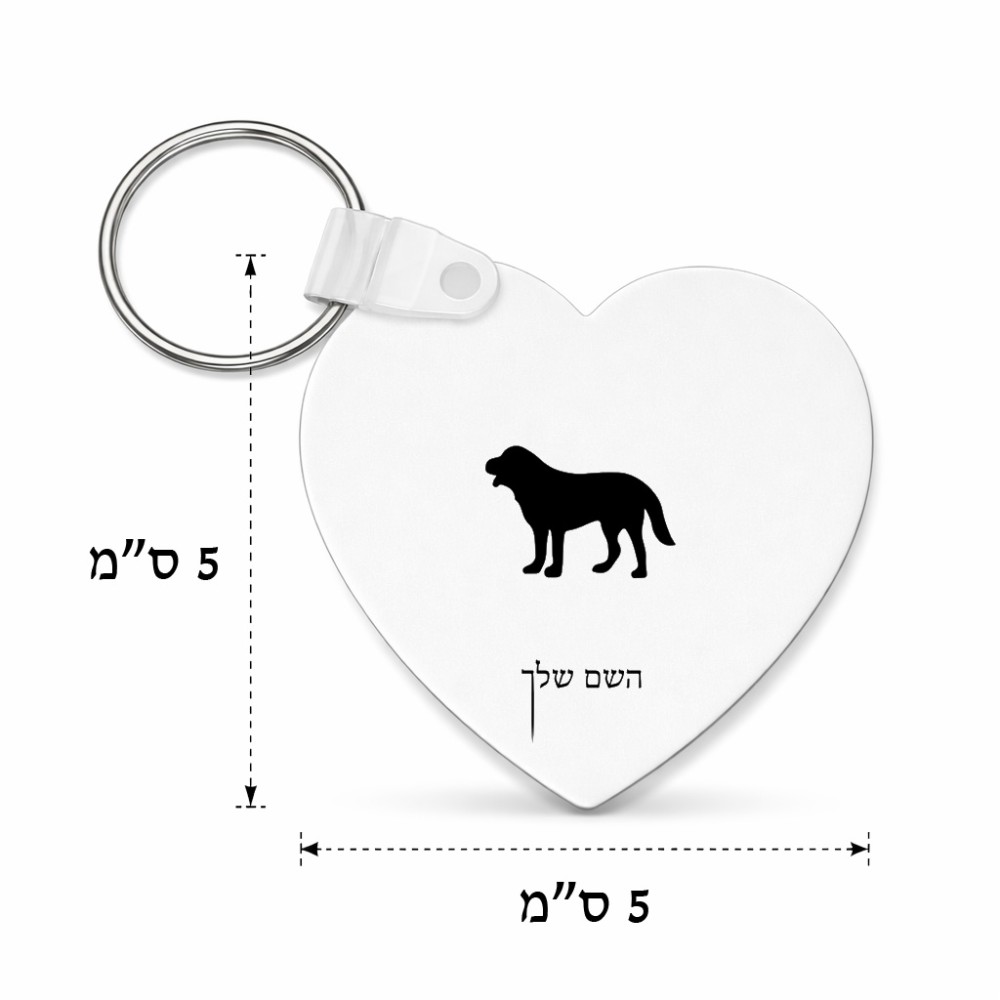 מחזיק מפתחות בצורת לב בעיצוב אישי עם השם שלך בעיצוב כלב גודל המחזיק 5 × 5 ס"מ. את השם המבוקש ניתן לציין בהזמנה, אם לא צויין אנחנו ניצור קשר לבירור.