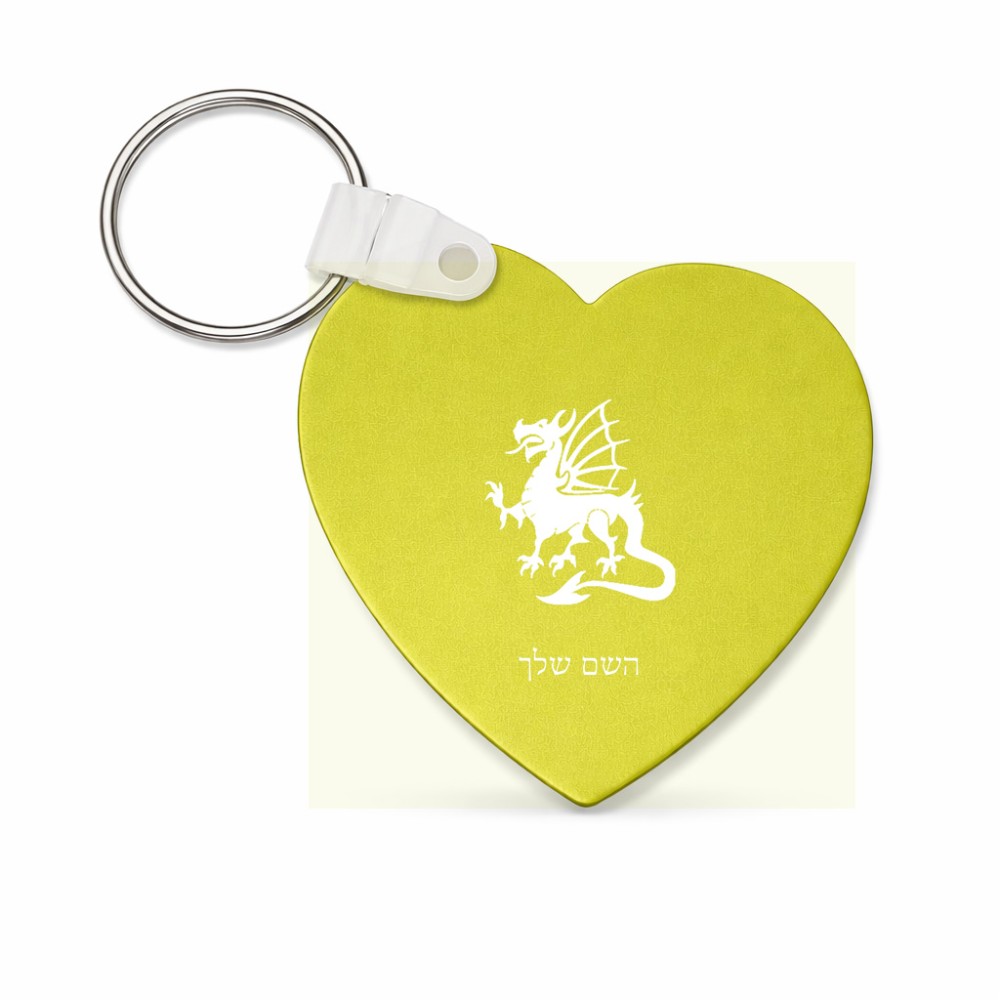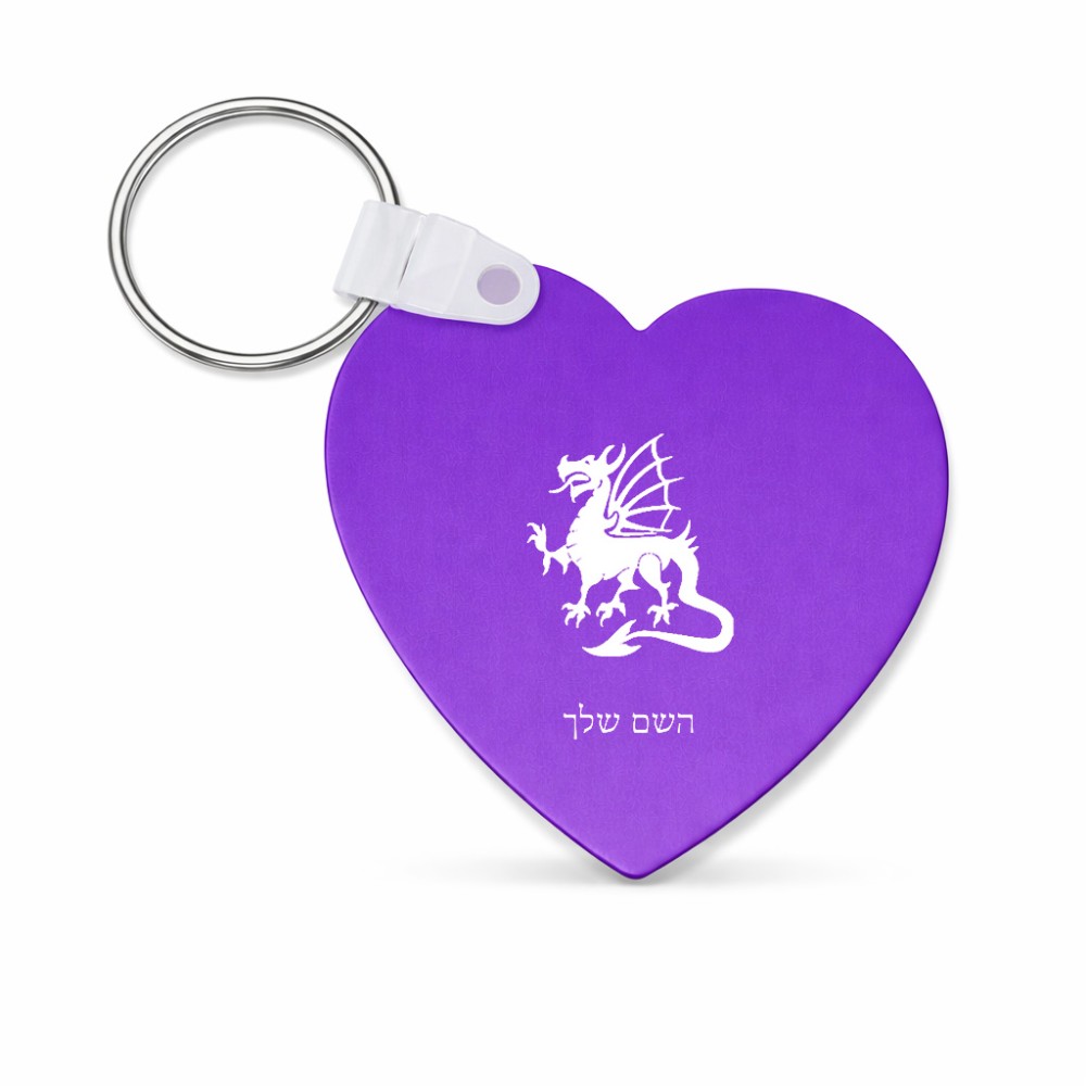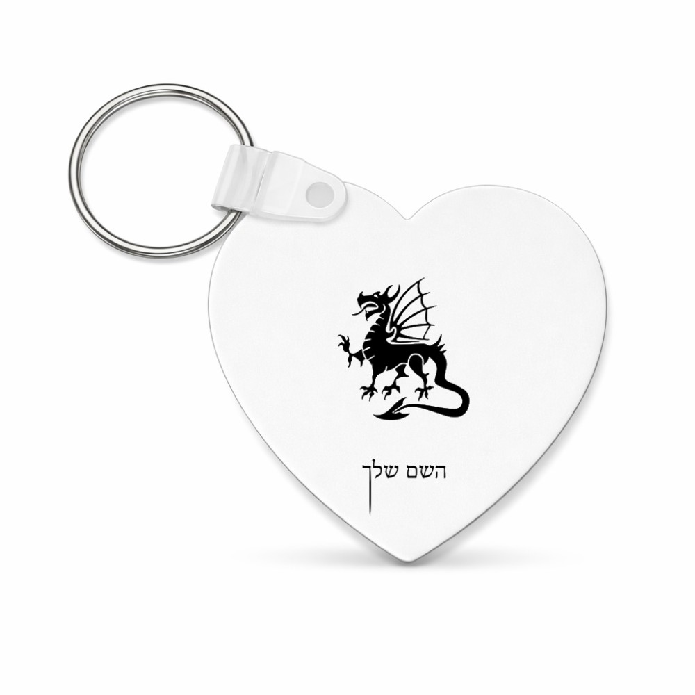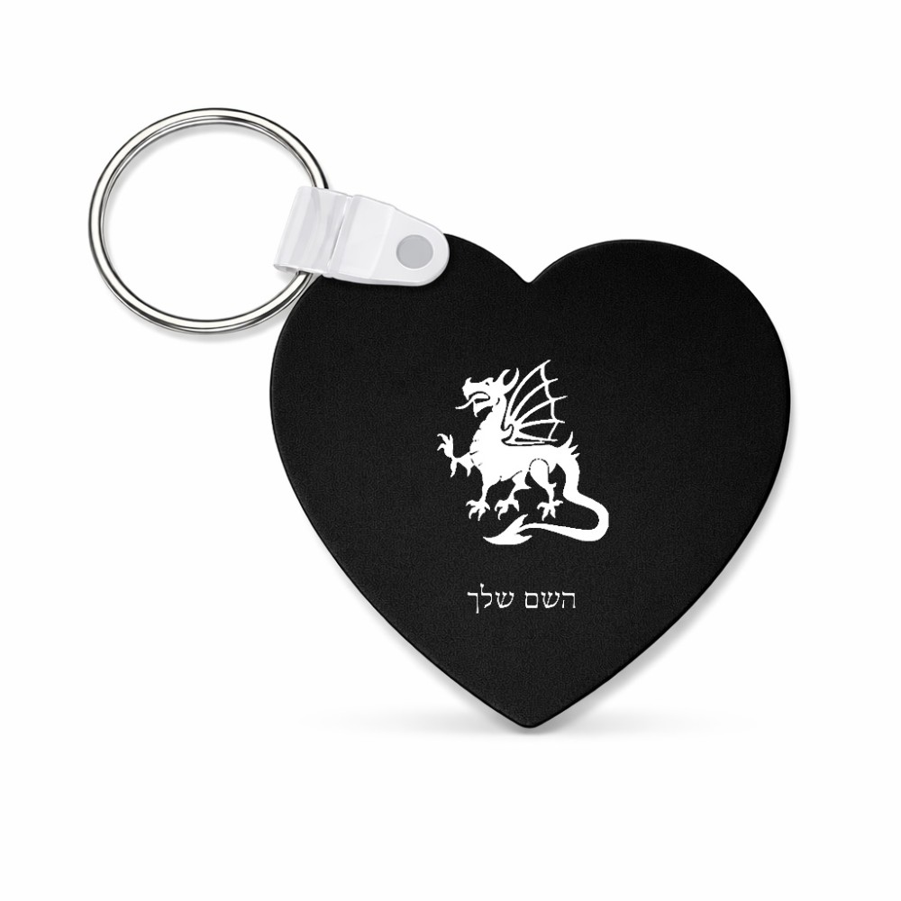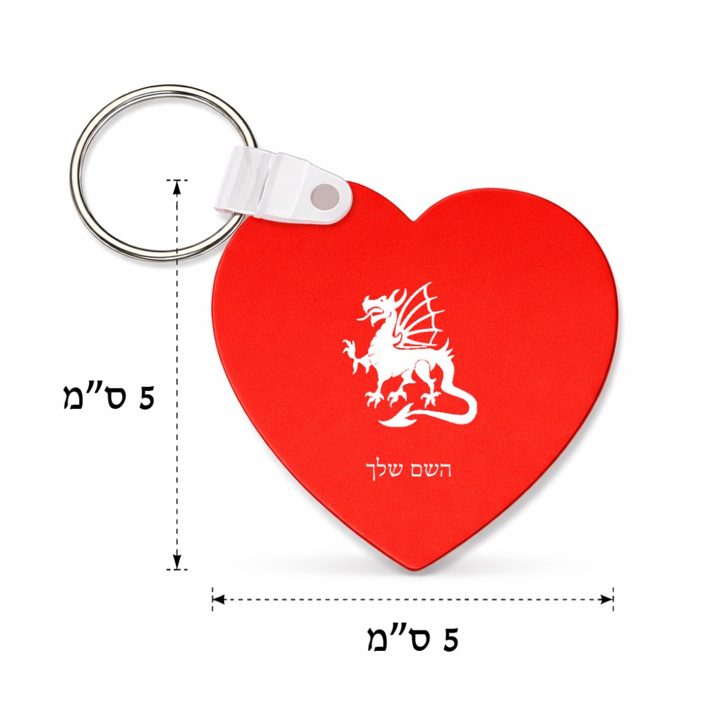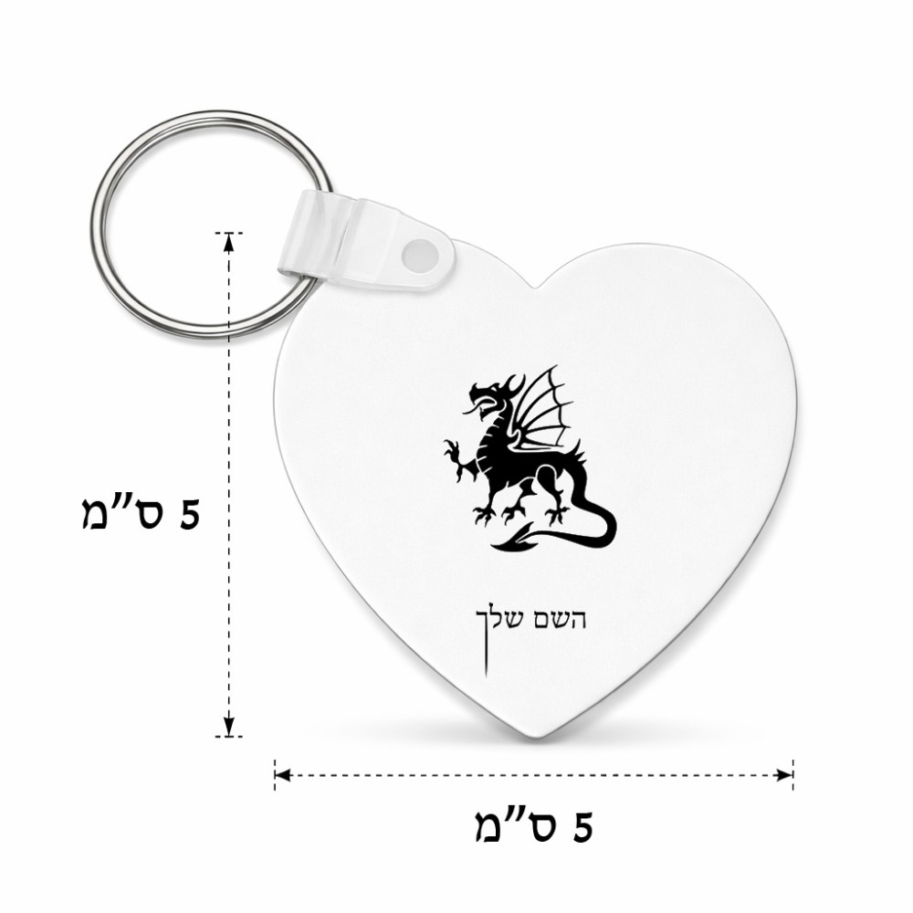 מחזיק מפתחות בצורת לב בעיצוב אישי עם השם שלך בעיצוב דרקון גודל המחזיק 5 × 5 ס"מ. את השם המבוקש ניתן לציין בהזמנה, אם לא צויין אנחנו ניצור קשר לבירור.