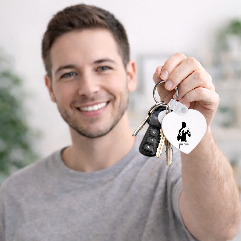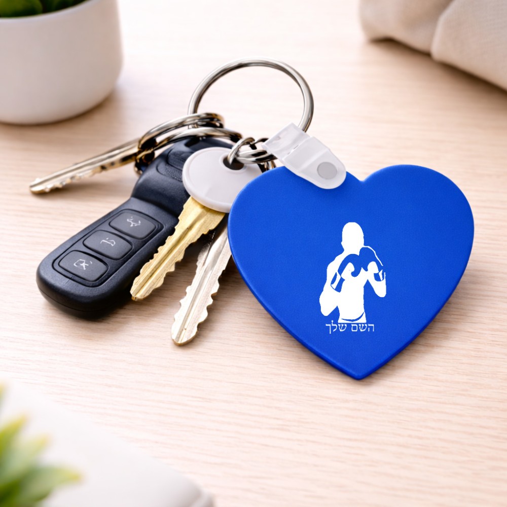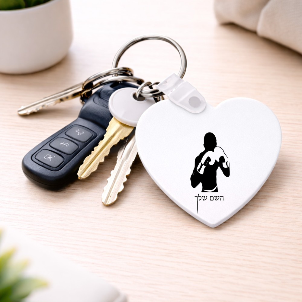 מחזיק מפתחות בצורת לב בעיצוב אישי עם השם שלך בעיצוב אגרוף גודל המחזיק 5 × 5 ס"מ. את השם המבוקש ניתן לציין בהזמנה, אם לא צויין אנחנו ניצור קשר לבירור.