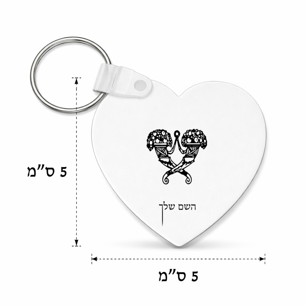 מחזיק מפתחות בצורת לב בעיצוב אישי עם השם שלך בעיצוב פרחי קרן גודל המחזיק 5 × 5 ס"מ. את השם המבוקש ניתן לציין בהזמנה, אם לא צויין אנחנו ניצור קשר לבירור.