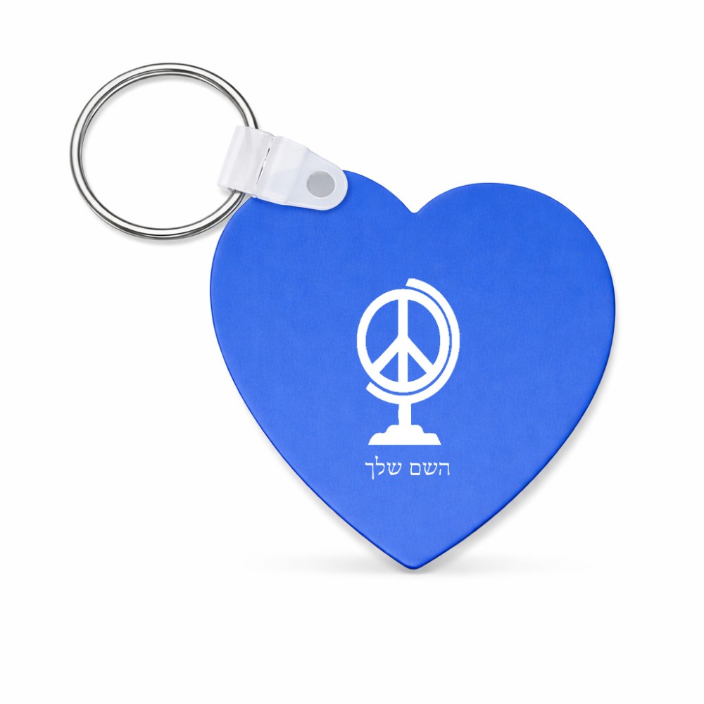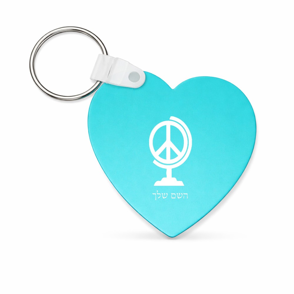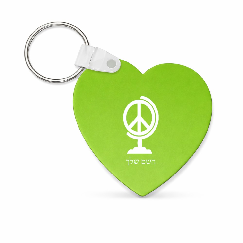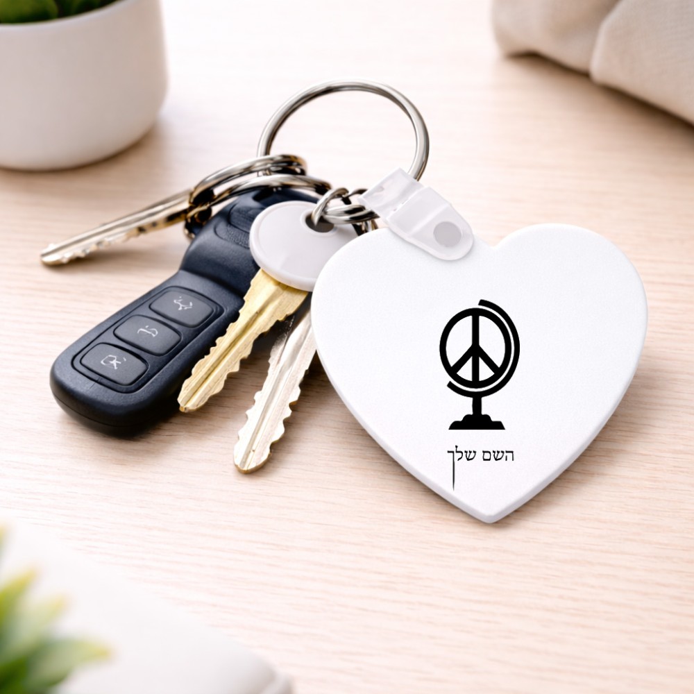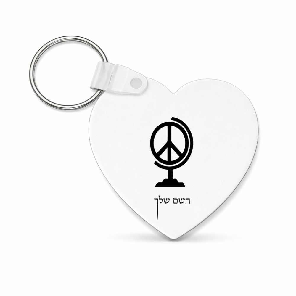 מחזיק מפתחות בצורת לב בעיצוב אישי עם השם שלך בעיצוב גלובוסי שלום גודל המחזיק 5 × 5 ס"מ. את השם המבוקש ניתן לציין בהזמנה, אם לא צויין אנחנו ניצור קשר לבירור.