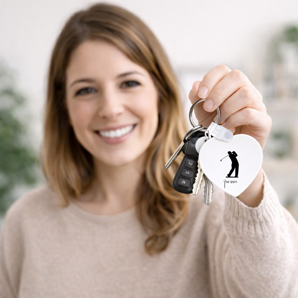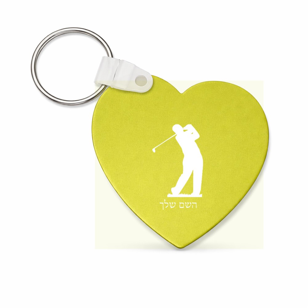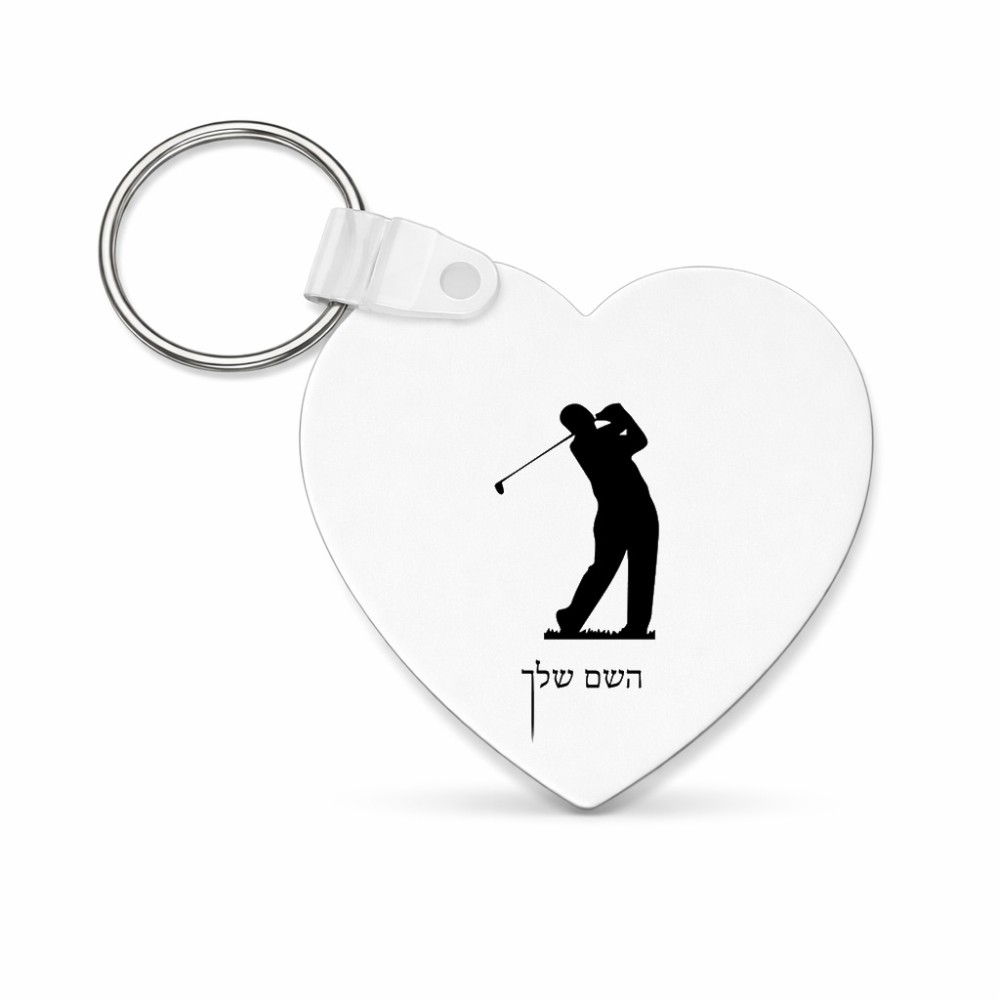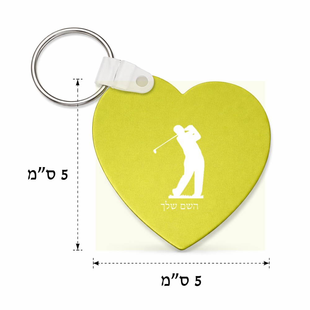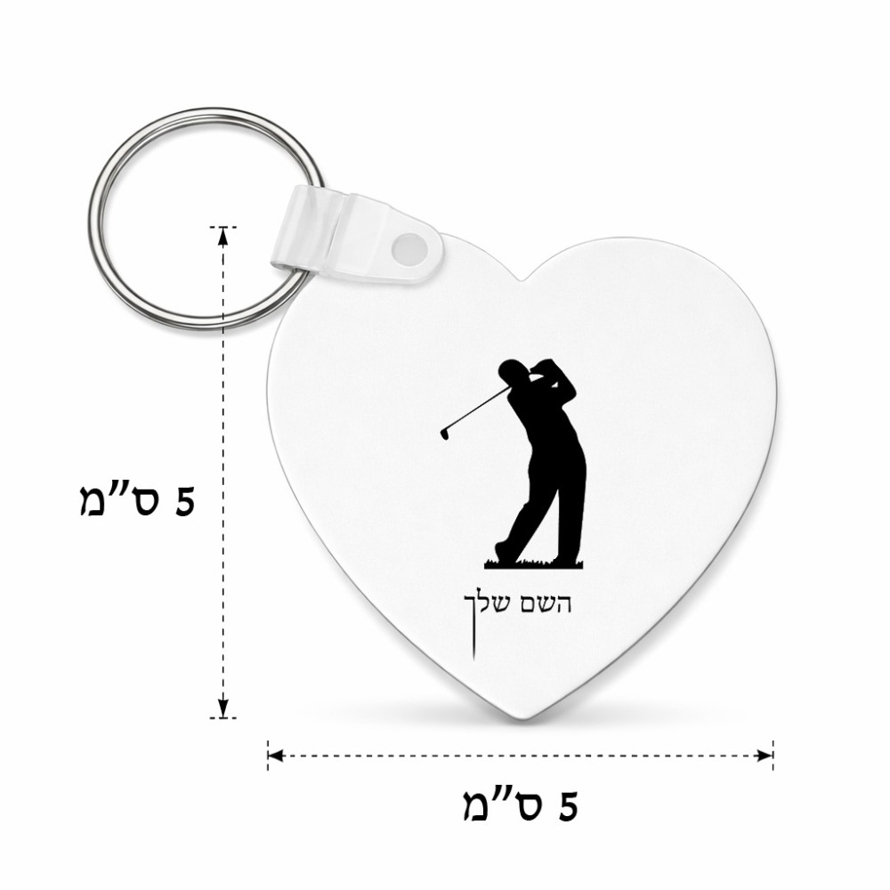 מחזיק מפתחות בצורת לב בעיצוב אישי עם השם שלך בעיצוב שחקן גולף גודל המחזיק 5 × 5 ס"מ. את השם המבוקש ניתן לציין בהזמנה, אם לא צויין אנחנו ניצור קשר לבירור.