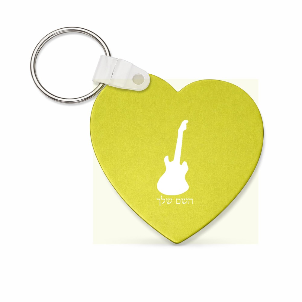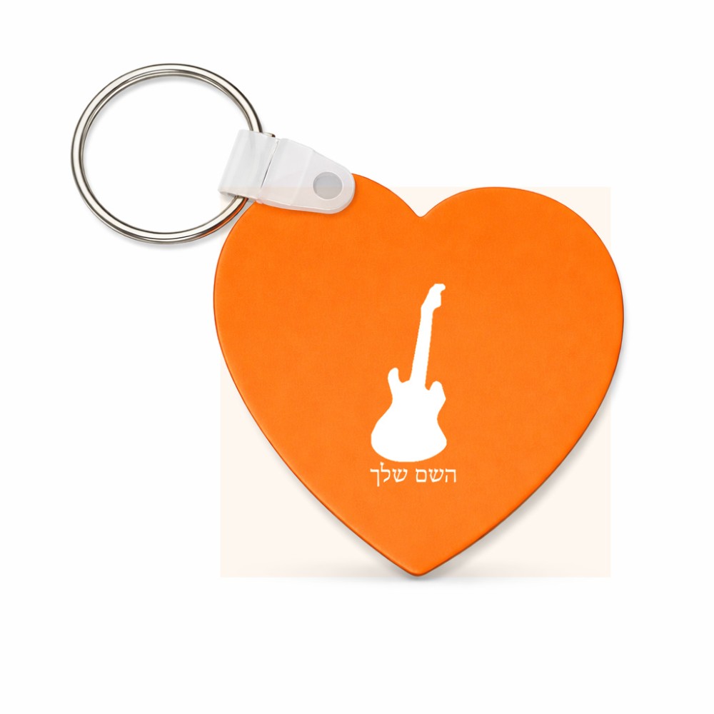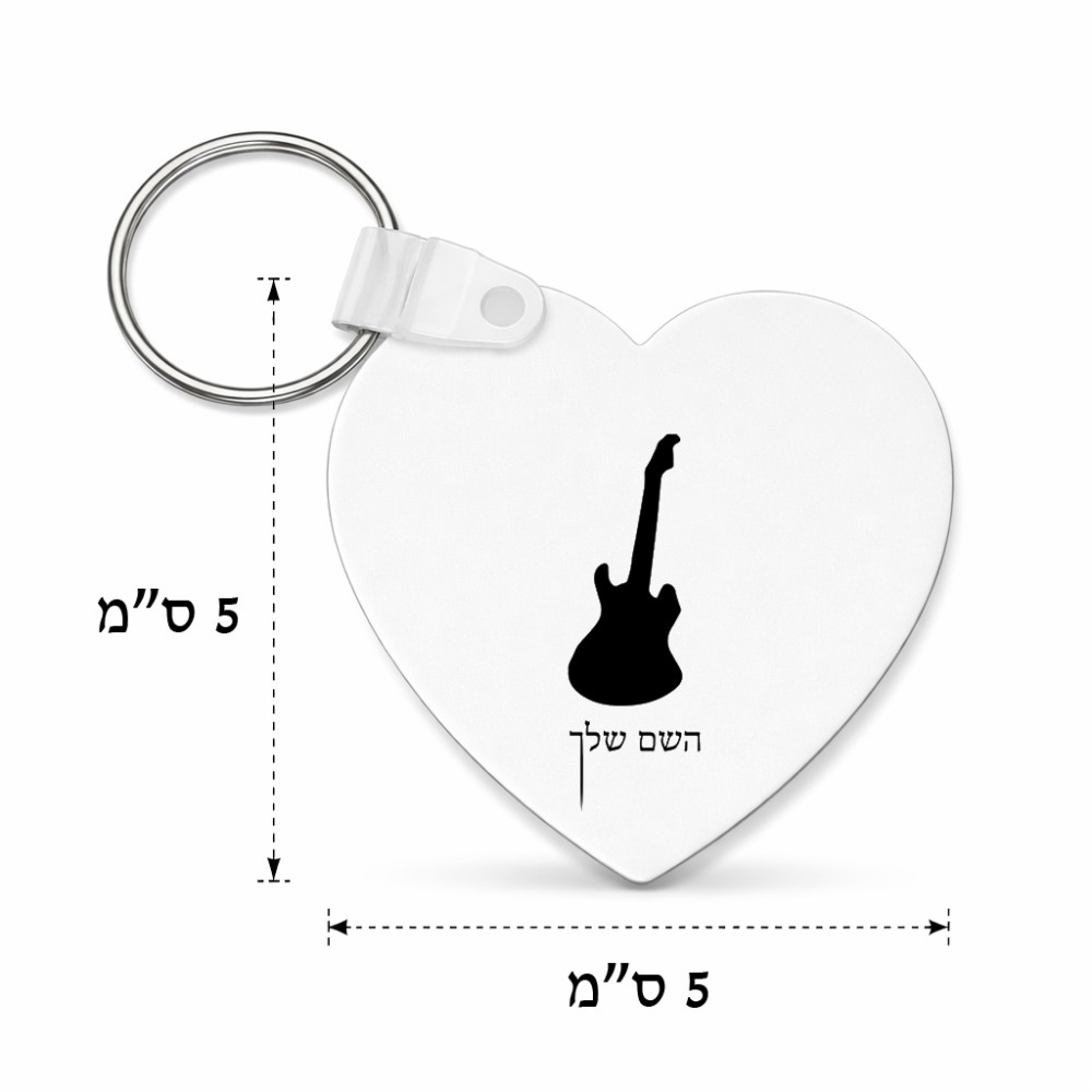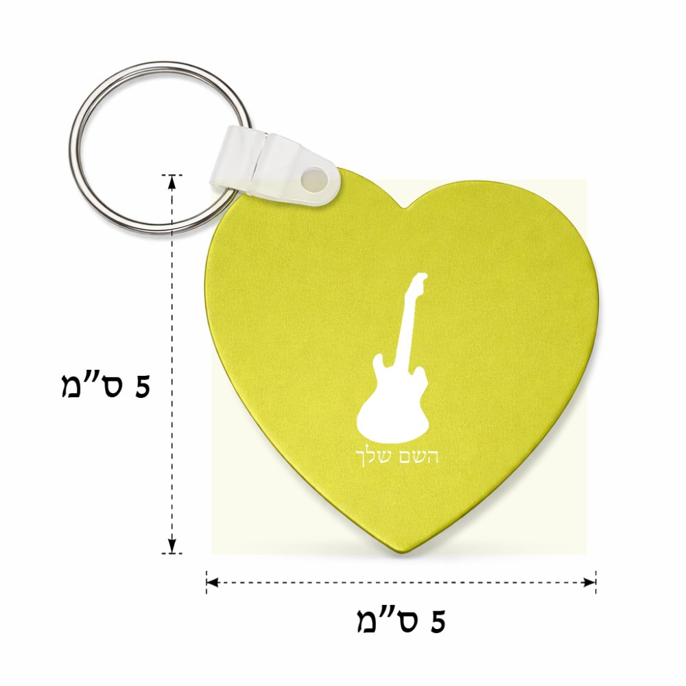 מחזיק מפתחות בצורת לב בעיצוב אישי עם השם שלך בעיצוב גיטרה גודל המחזיק 5 × 5 ס"מ. את השם המבוקש ניתן לציין בהזמנה, אם לא צויין אנחנו ניצור קשר לבירור.
