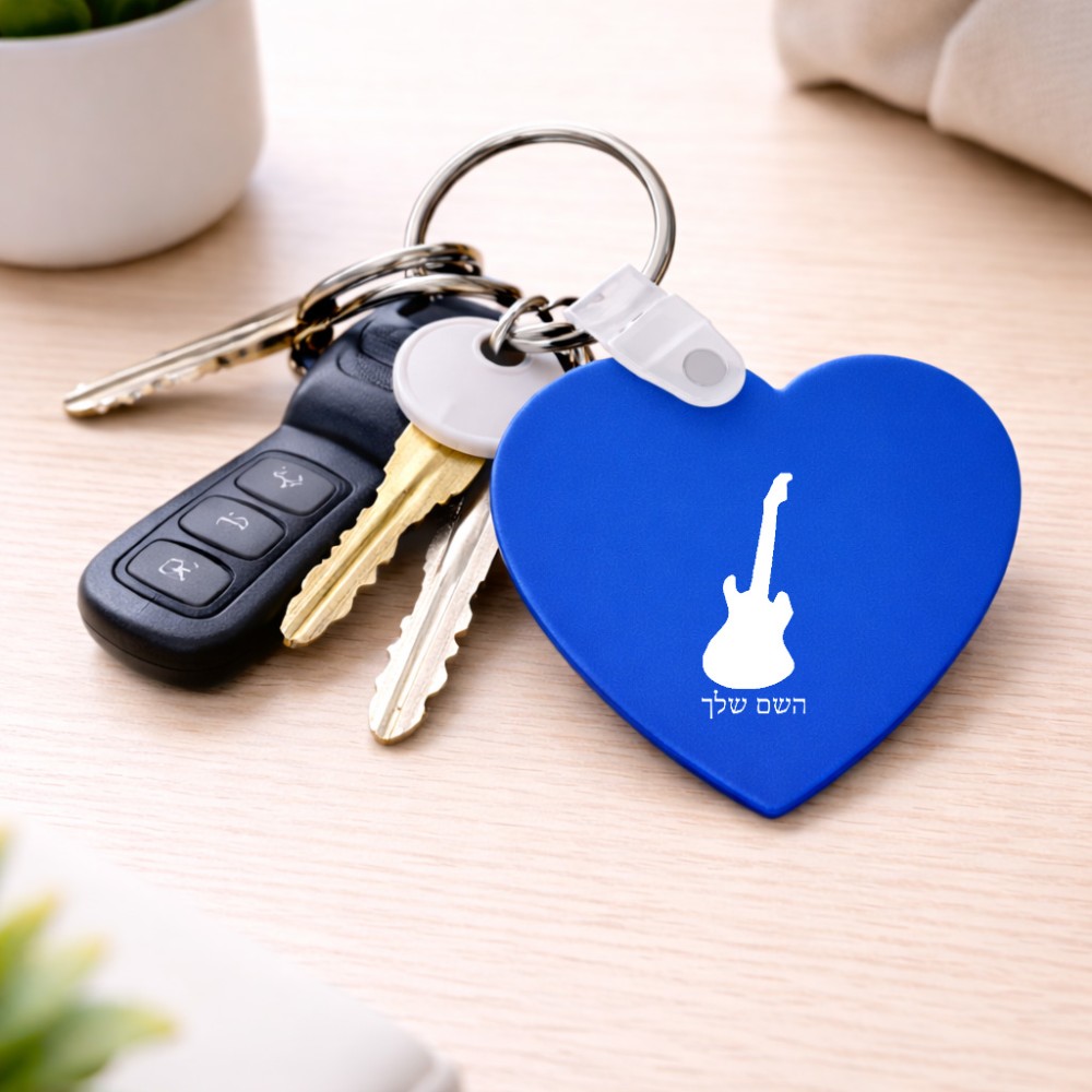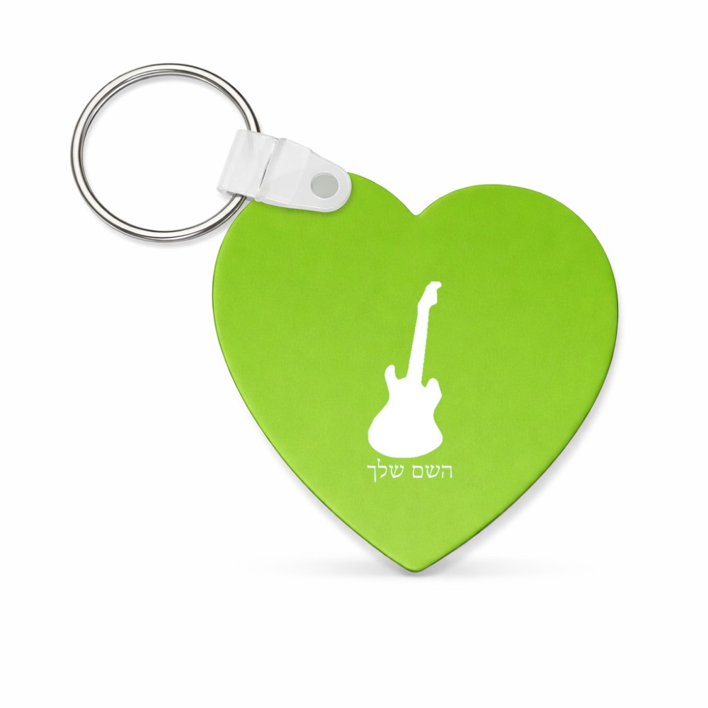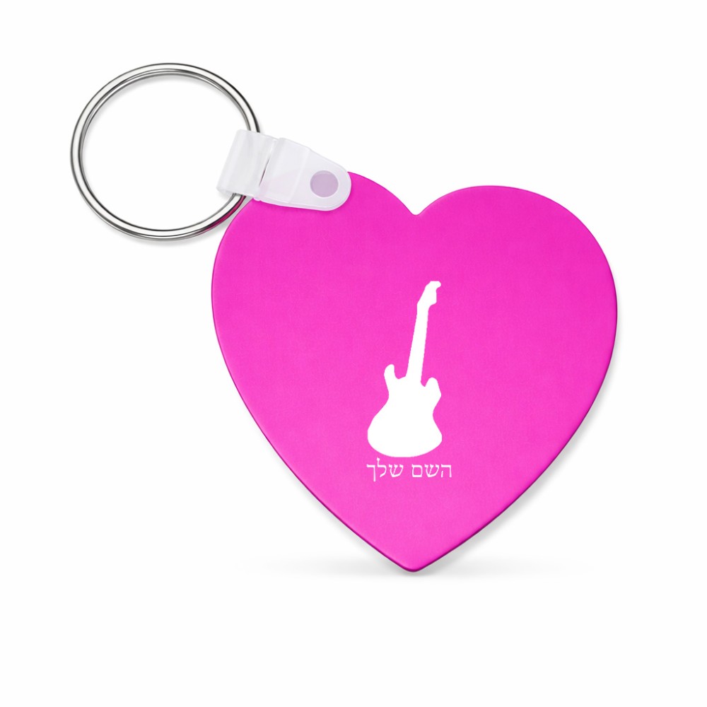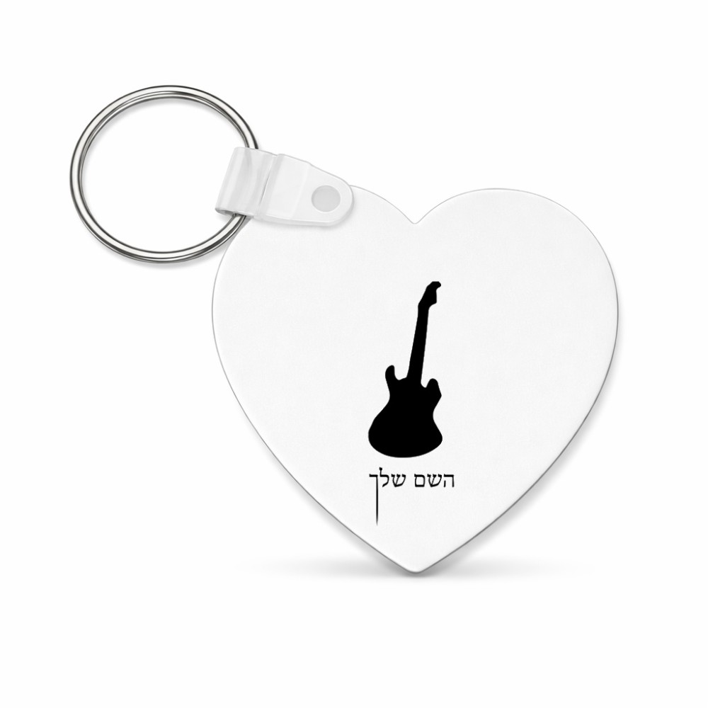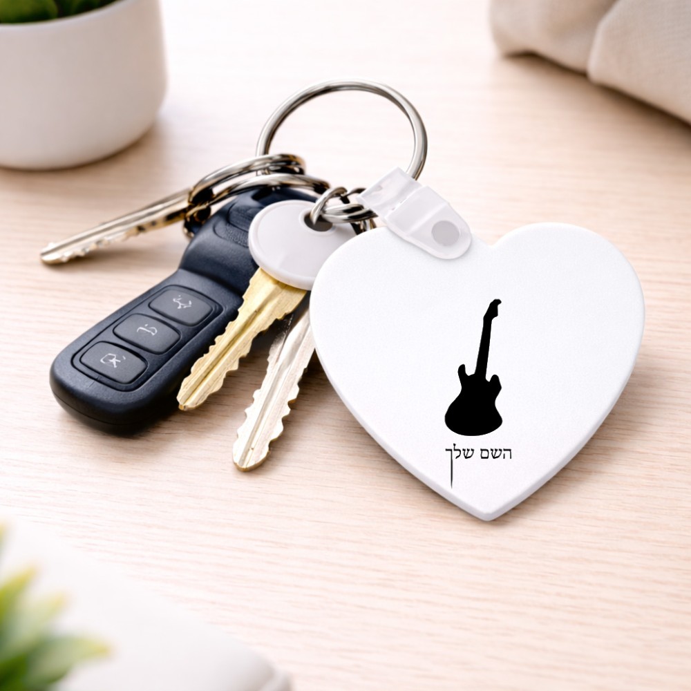 מחזיק מפתחות בצורת לב בעיצוב אישי עם השם שלך בעיצוב גיטרה גודל המחזיק 5 × 5 ס"מ. את השם המבוקש ניתן לציין בהזמנה, אם לא צויין אנחנו ניצור קשר לבירור.