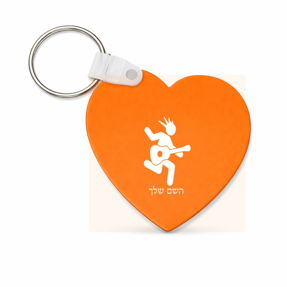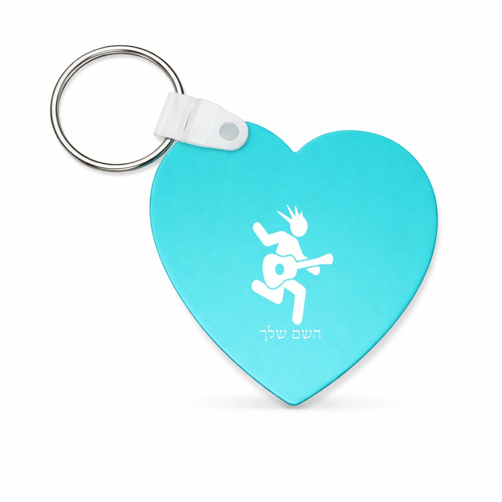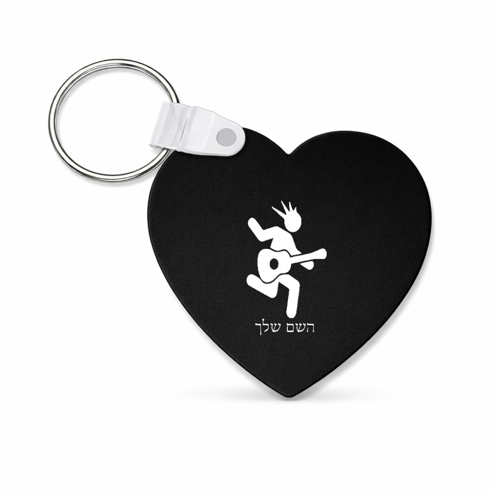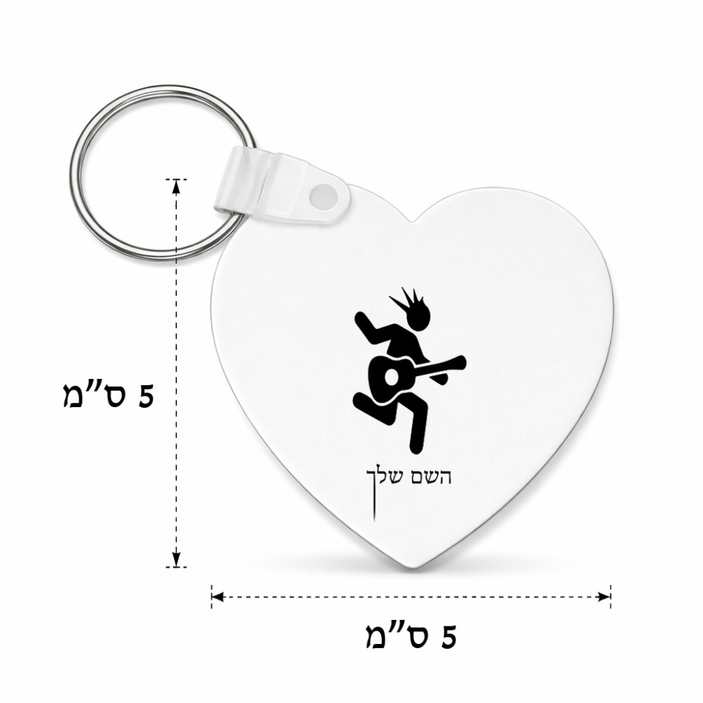 מחזיק מפתחות בצורת לב בעיצוב אישי עם השם שלך בעיצוב נגן גיטרה גודל המחזיק 5 × 5 ס"מ. את השם המבוקש ניתן לציין בהזמנה, אם לא צויין אנחנו ניצור קשר לבירור.