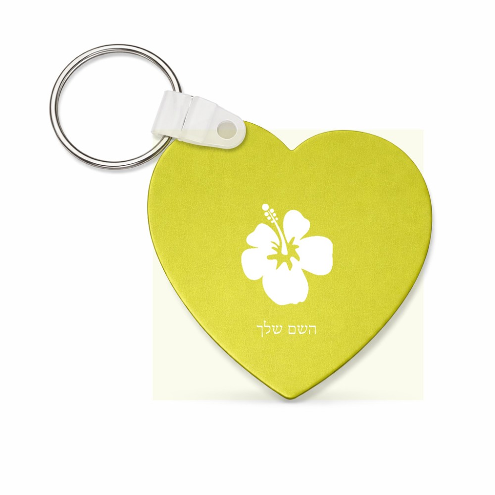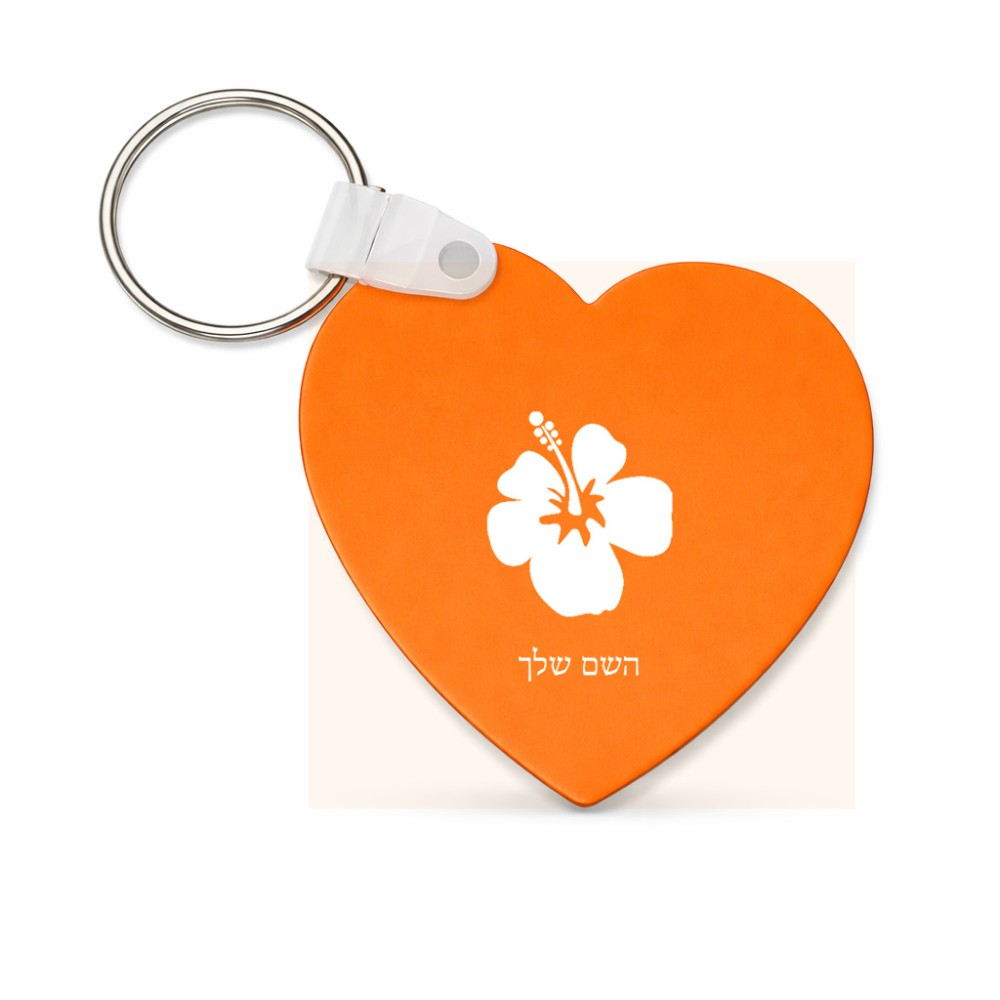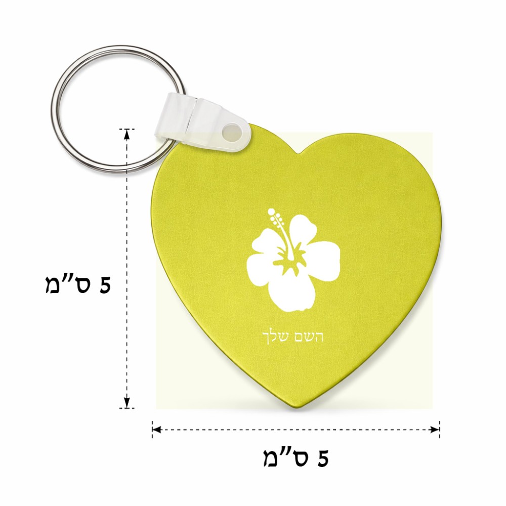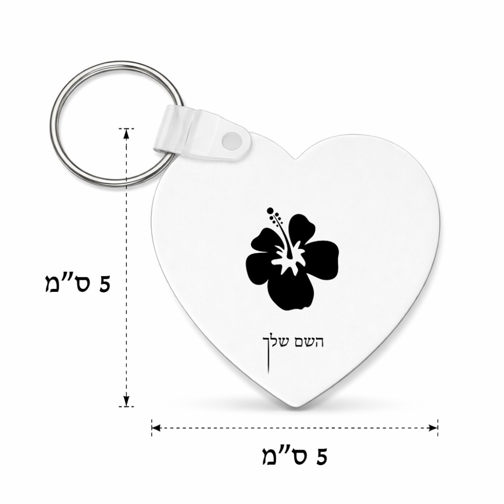 מחזיק מפתחות בצורת לב בעיצוב אישי עם השם שלך בעיצוב פרח היביסקוס גודל המחזיק 5 × 5 ס"מ. את השם המבוקש ניתן לציין בהזמנה, אם לא צויין אנחנו ניצור קשר לבירור.