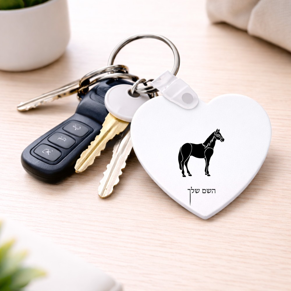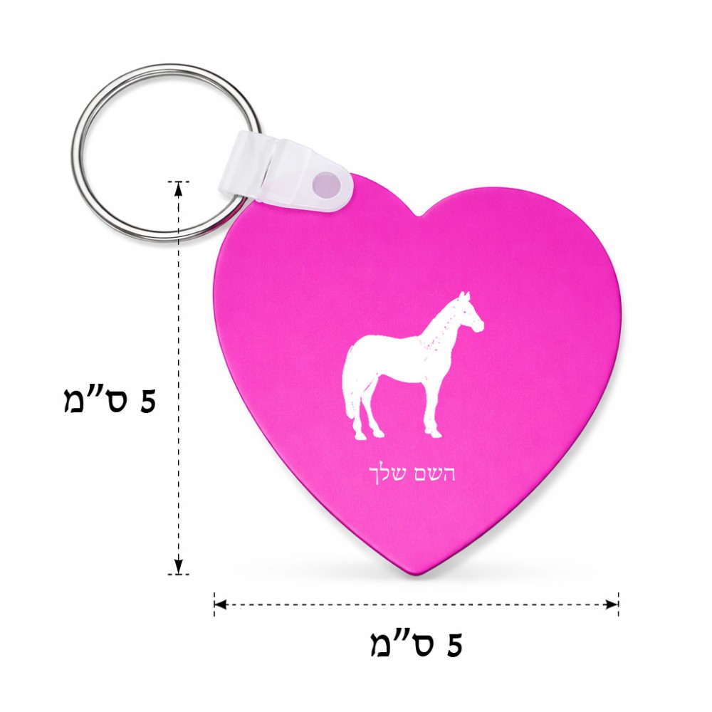 מחזיק מפתחות בצורת לב בעיצוב אישי עם השם שלך בעיצוב סוס גודל המחזיק 5 × 5 ס"מ. את השם המבוקש ניתן לציין בהזמנה, אם לא צויין אנחנו ניצור קשר לבירור.