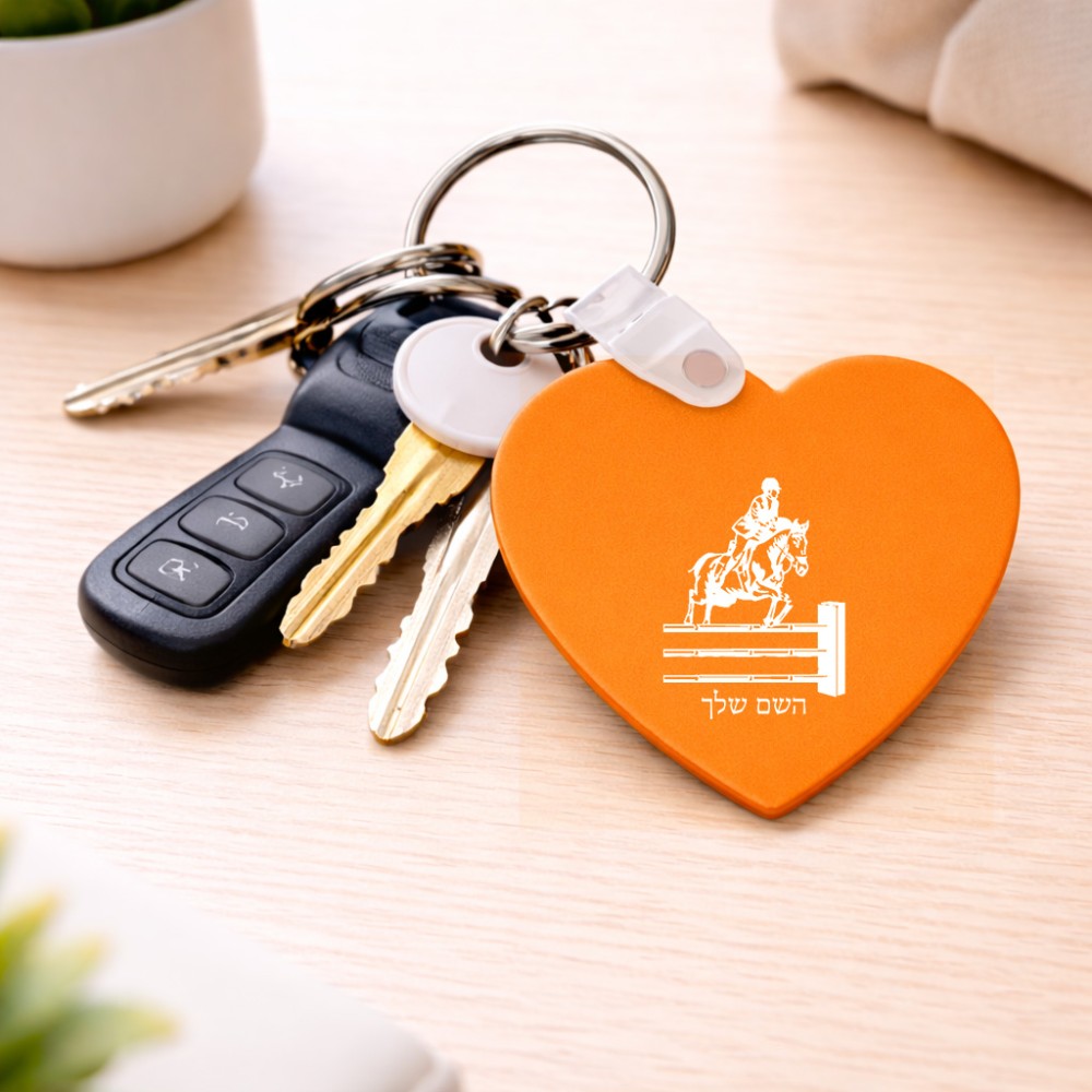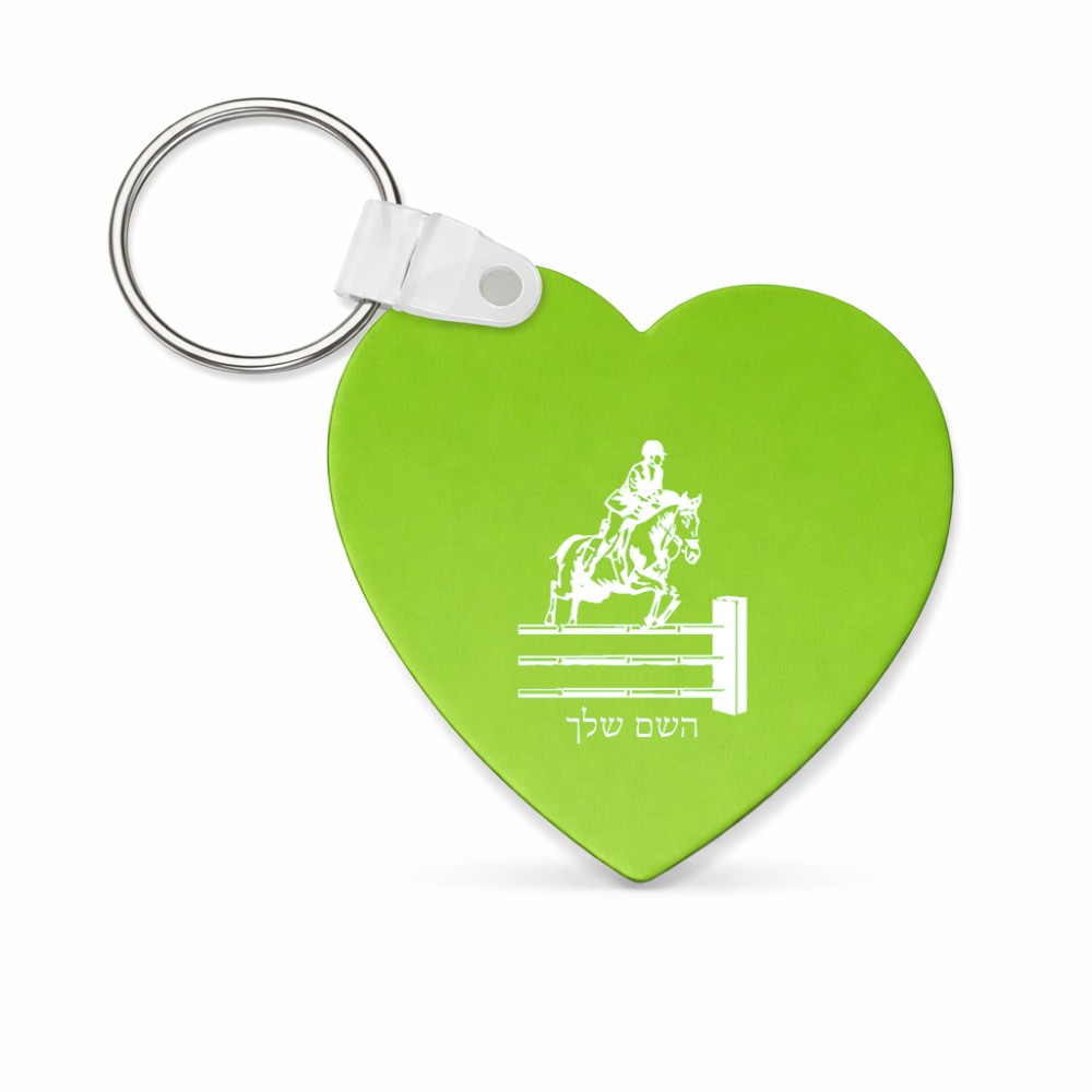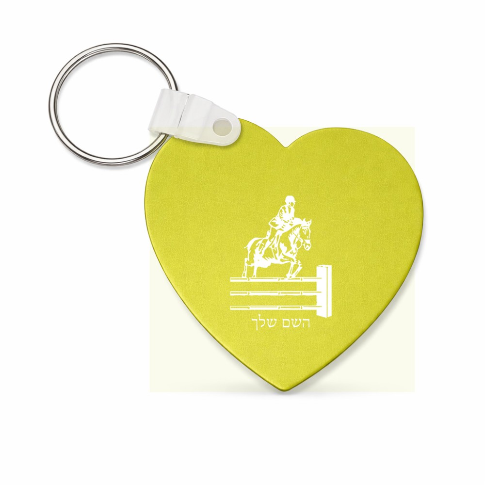 מחזיק מפתחות בצורת לב בעיצוב אישי עם השם שלך בעיצוב רוכב סוסים גודל המחזיק 5 × 5 ס"מ. את השם המבוקש ניתן לציין בהזמנה, אם לא צויין אנחנו ניצור קשר לבירור.