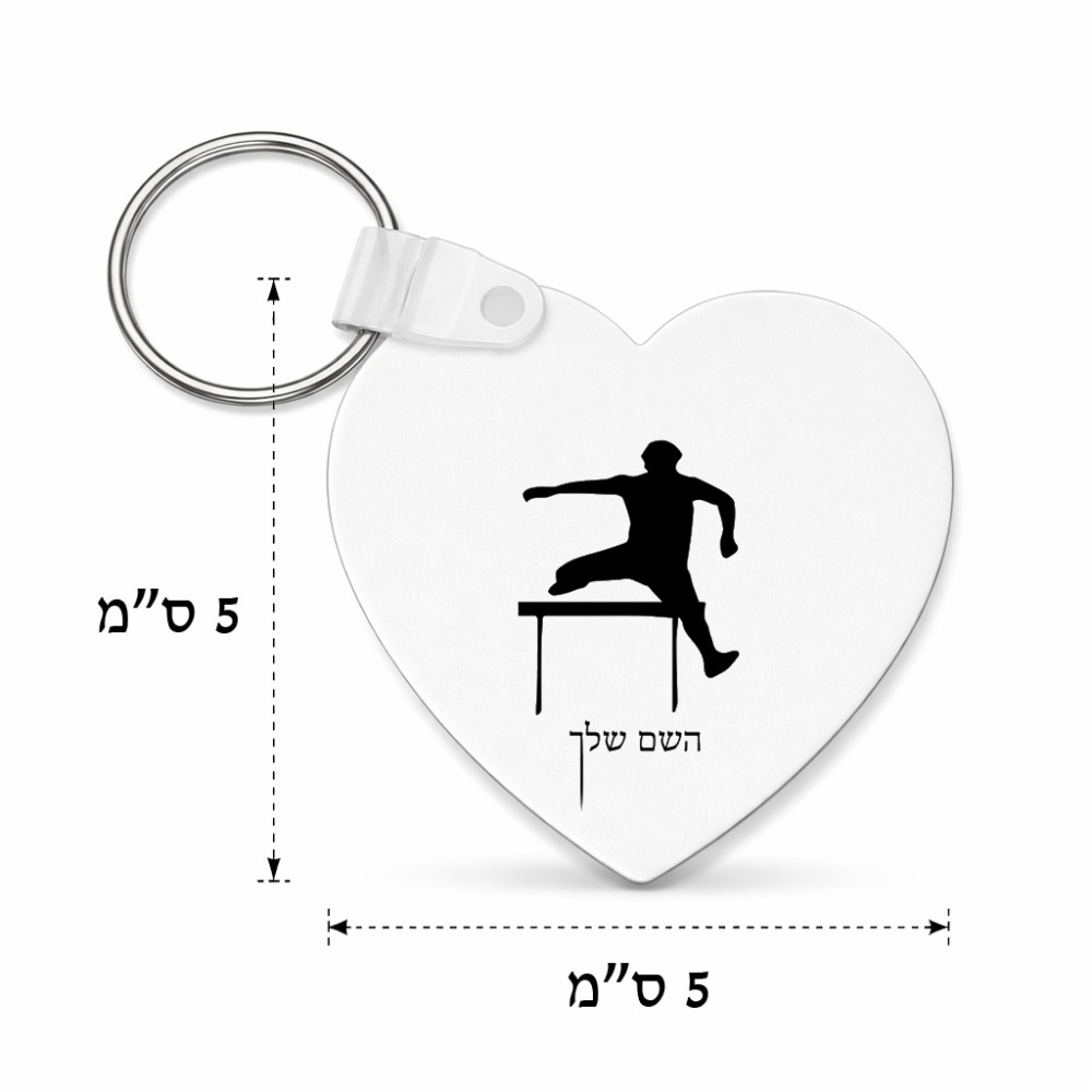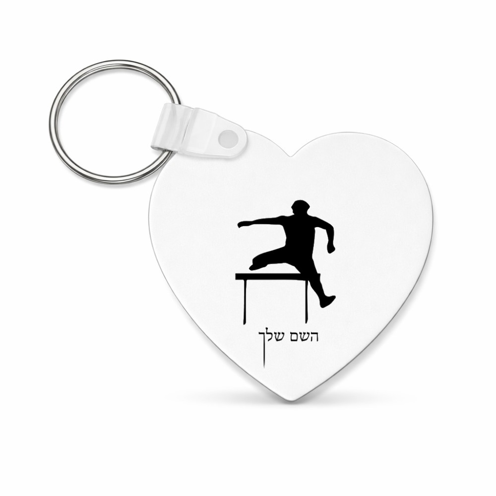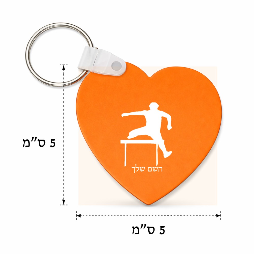 מחזיק מפתחות בצורת לב בעיצוב אישי עם השם שלך בעיצוב קפיצת משוכות גודל המחזיק 5 × 5 ס"מ. את השם המבוקש ניתן לציין בהזמנה, אם לא צויין אנחנו ניצור קשר לבירור.