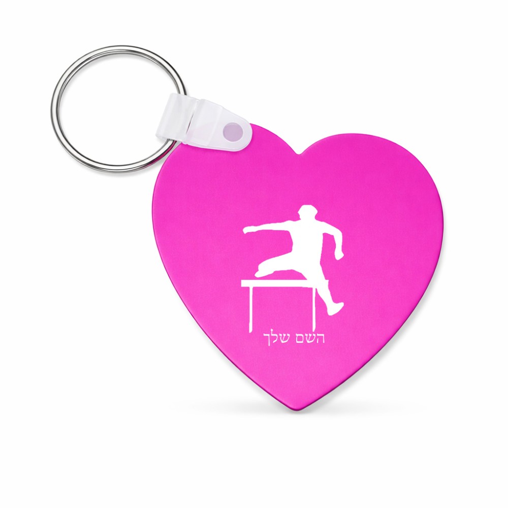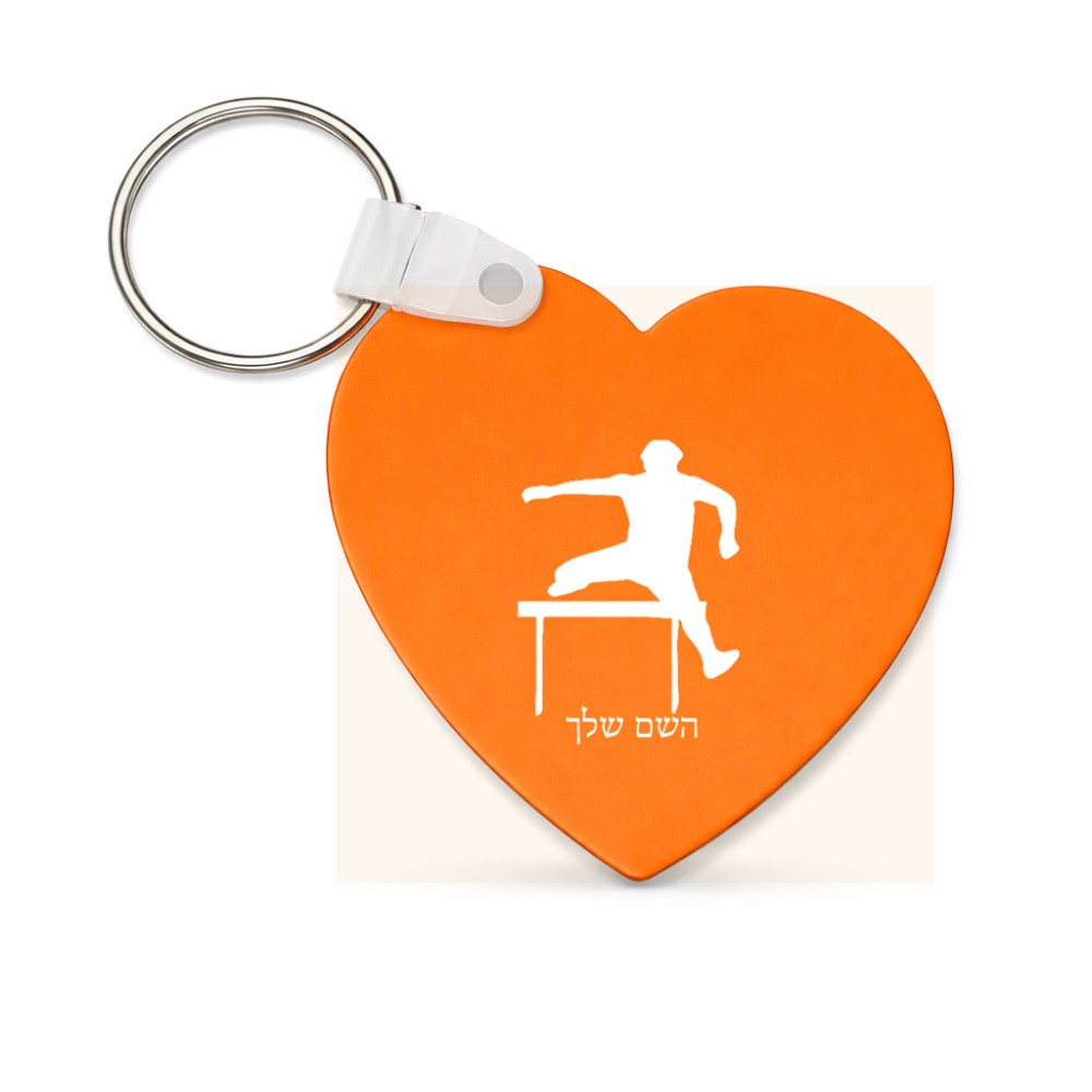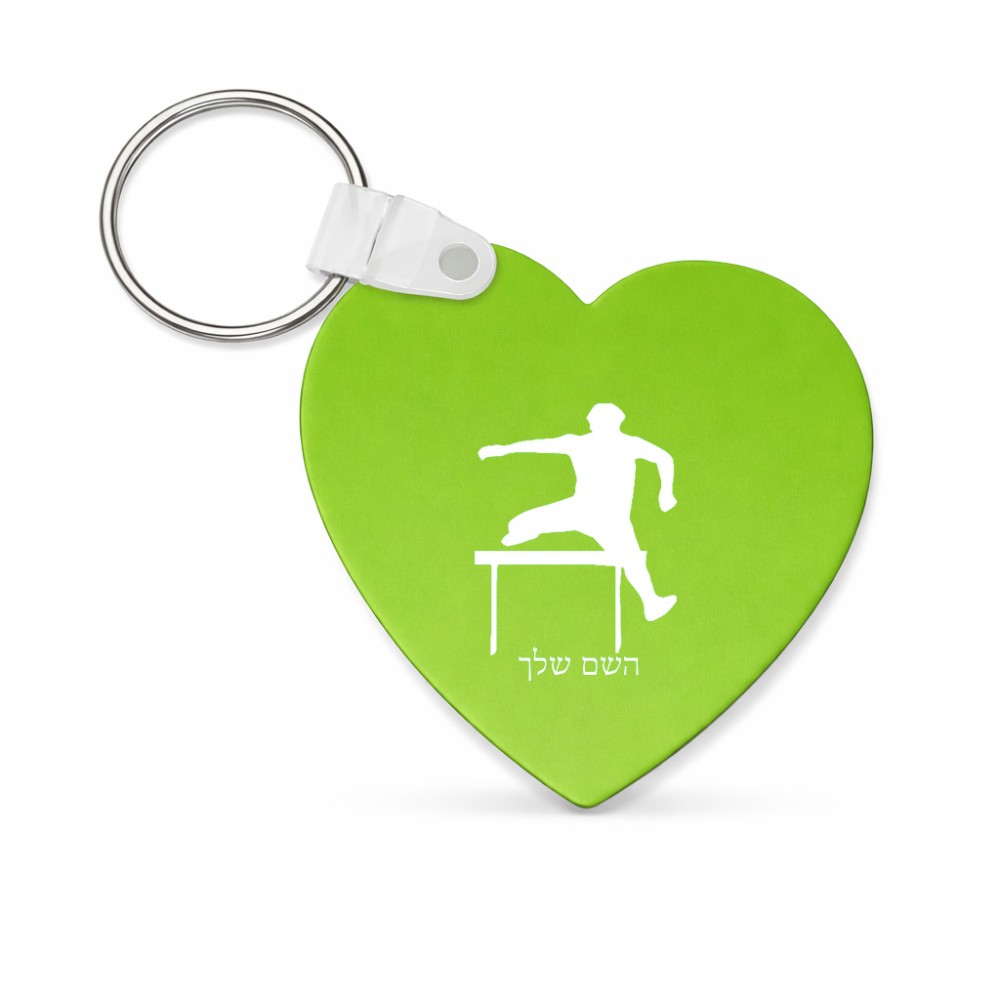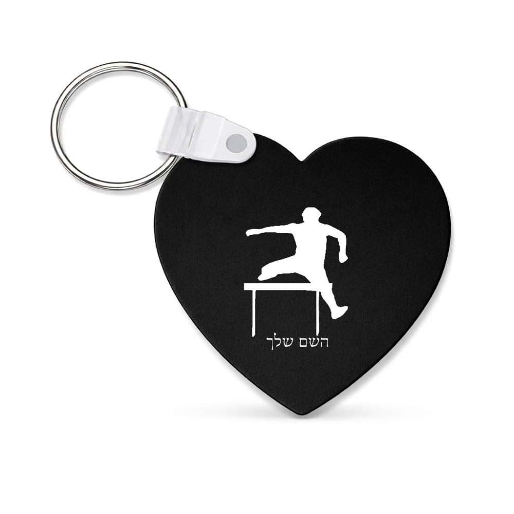 מחזיק מפתחות בצורת לב בעיצוב אישי עם השם שלך בעיצוב קפיצת משוכות גודל המחזיק 5 × 5 ס"מ. את השם המבוקש ניתן לציין בהזמנה, אם לא צויין אנחנו ניצור קשר לבירור.