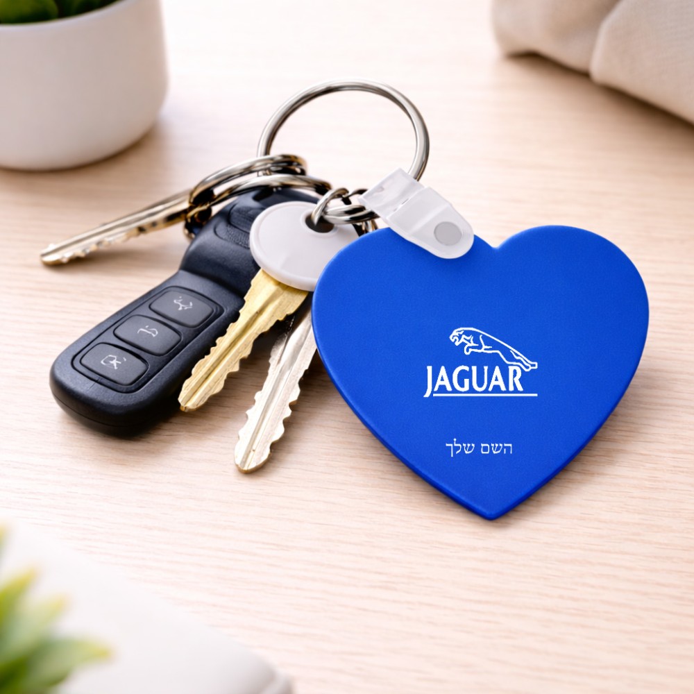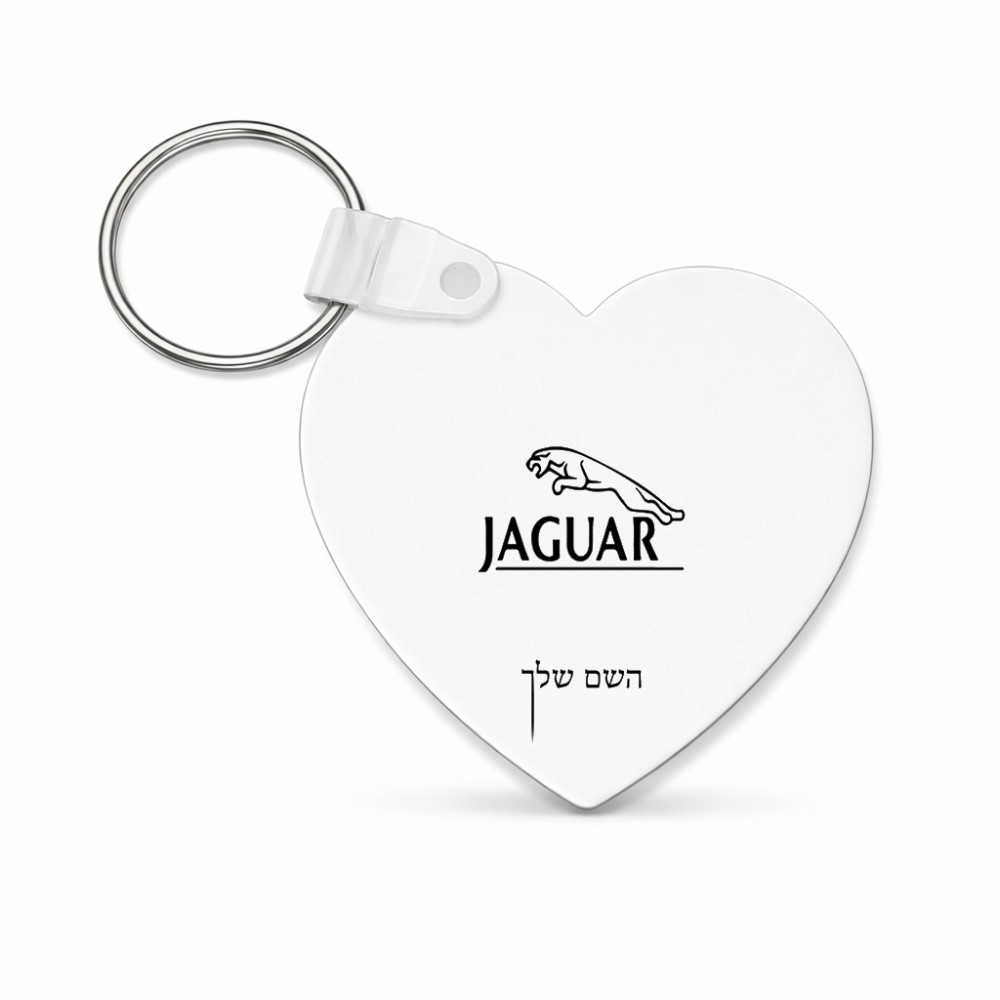 מחזיק מפתחות בצורת לב בעיצוב אישי עם השם שלך בעיצוב יגואר גודל המחזיק 5 × 5 ס"מ. את השם המבוקש ניתן לציין בהזמנה, אם לא צויין אנחנו ניצור קשר לבירור.