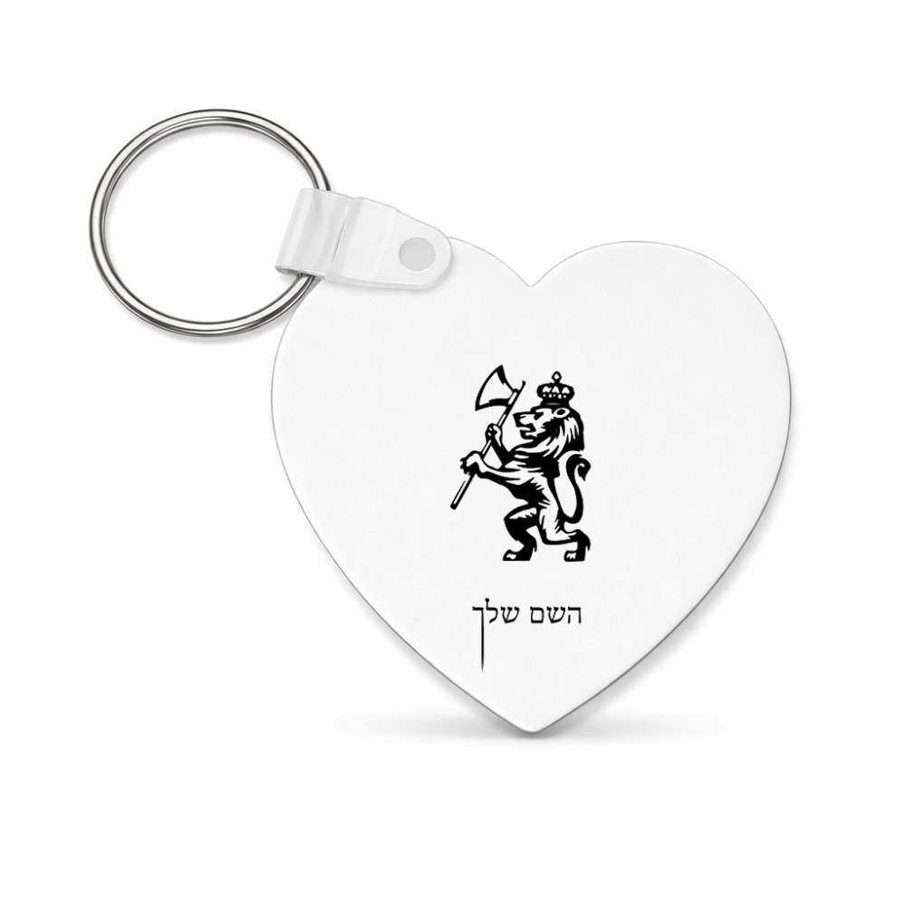 מחזיק מפתחות בצורת לב בעיצוב אישי עם השם שלך בעיצוב אריה גודל המחזיק 5 × 5 ס"מ. את השם המבוקש ניתן לציין בהזמנה, אם לא צויין אנחנו ניצור קשר לבירור.