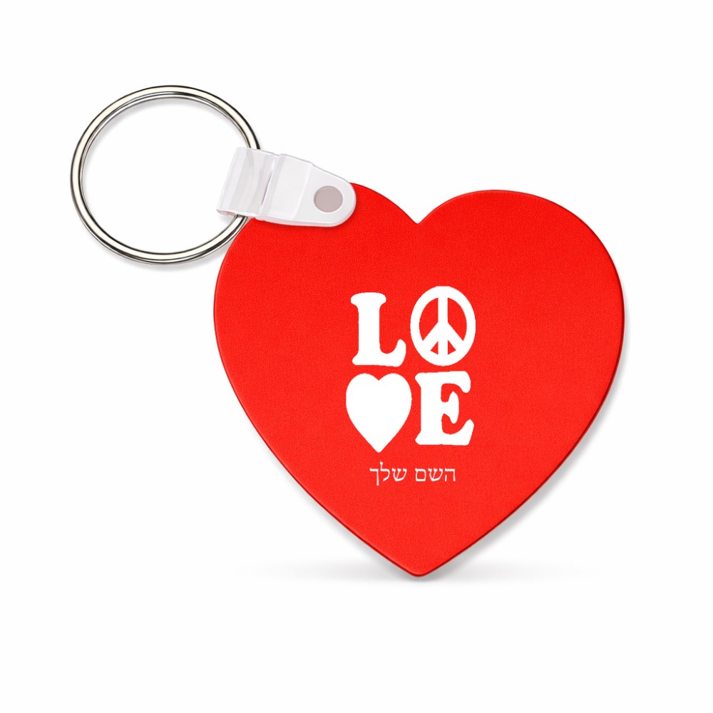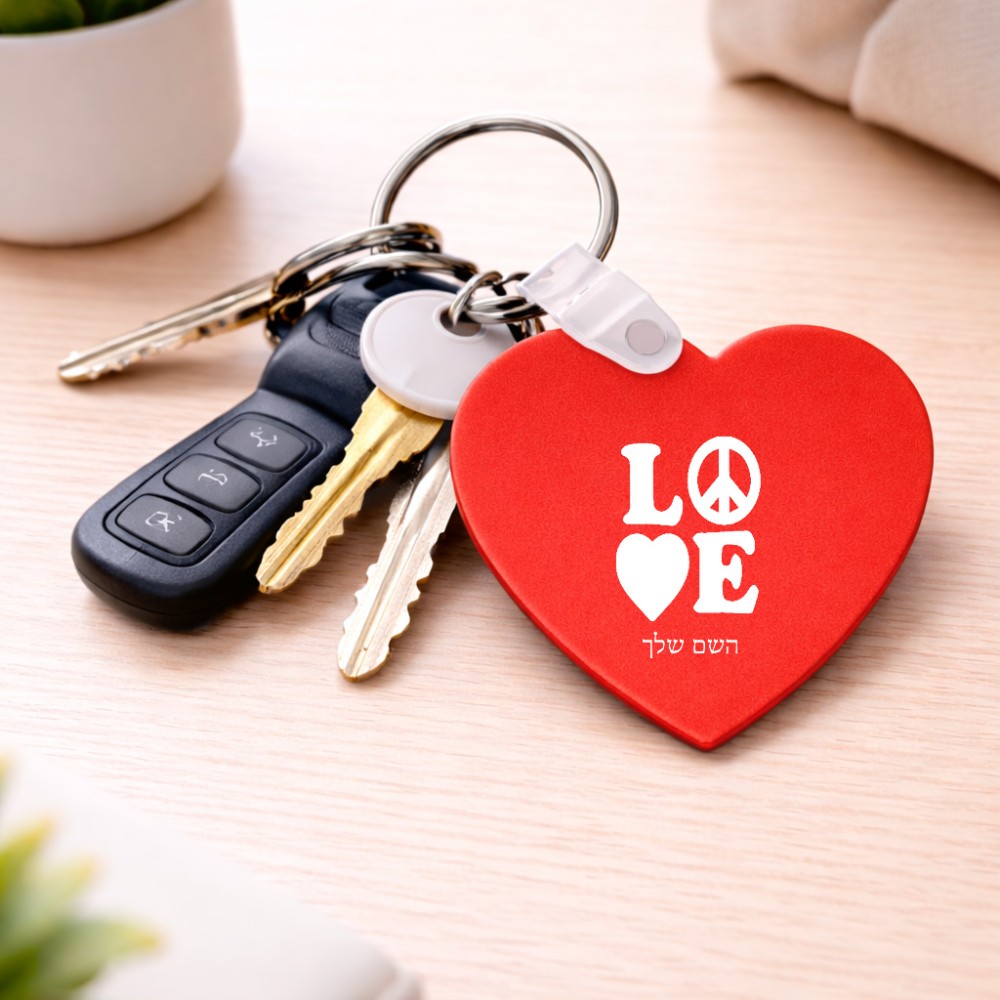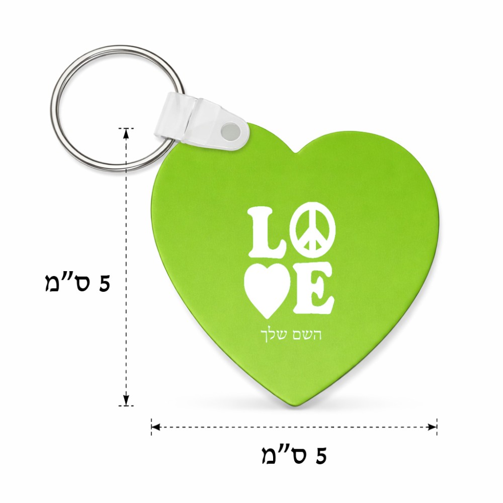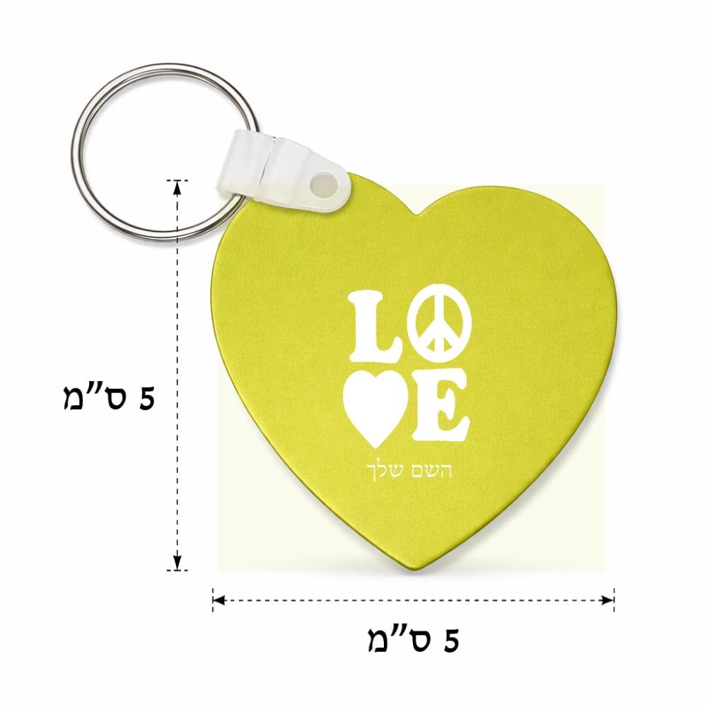 מחזיק מפתחות בצורת לב בעיצוב אישי עם השם שלך בעיצוב אהבה גודל המחזיק 5 × 5 ס"מ. את השם המבוקש ניתן לציין בהזמנה, אם לא צויין אנחנו ניצור קשר לבירור.