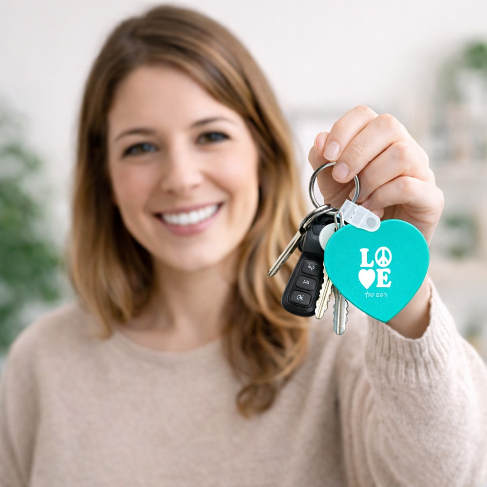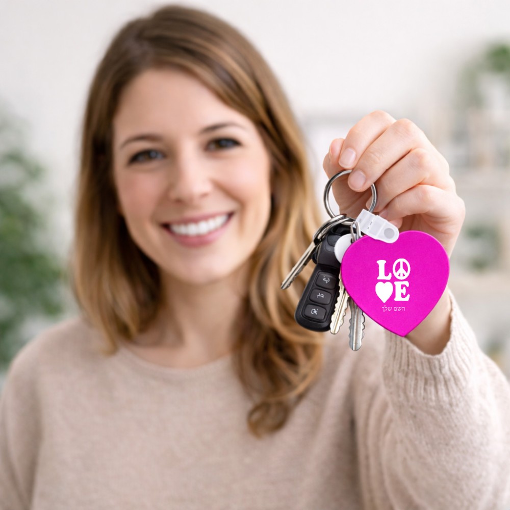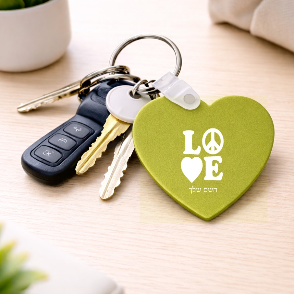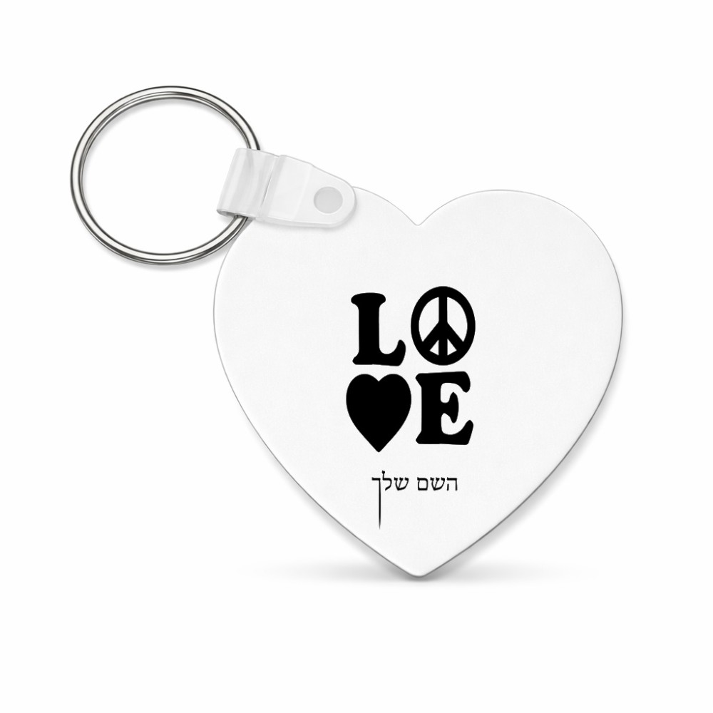 מחזיק מפתחות בצורת לב בעיצוב אישי עם השם שלך בעיצוב אהבה גודל המחזיק 5 × 5 ס"מ. את השם המבוקש ניתן לציין בהזמנה, אם לא צויין אנחנו ניצור קשר לבירור.