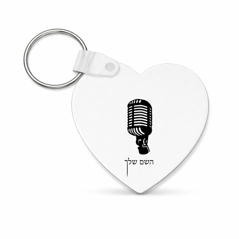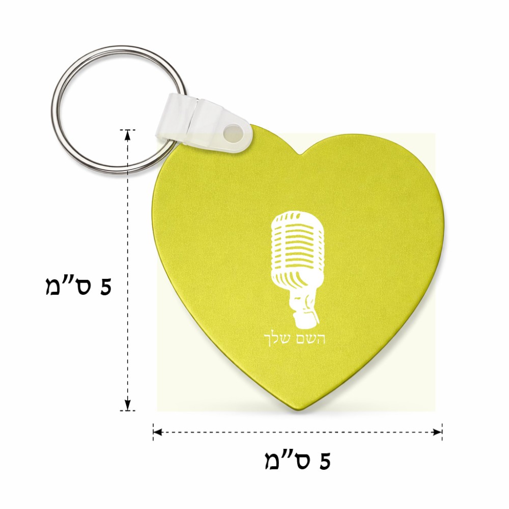 מחזיק מפתחות בצורת לב בעיצוב אישי עם השם שלך בעיצוב מיקרופון גודל המחזיק 5 × 5 ס"מ. את השם המבוקש ניתן לציין בהזמנה, אם לא צויין אנחנו ניצור קשר לבירור.