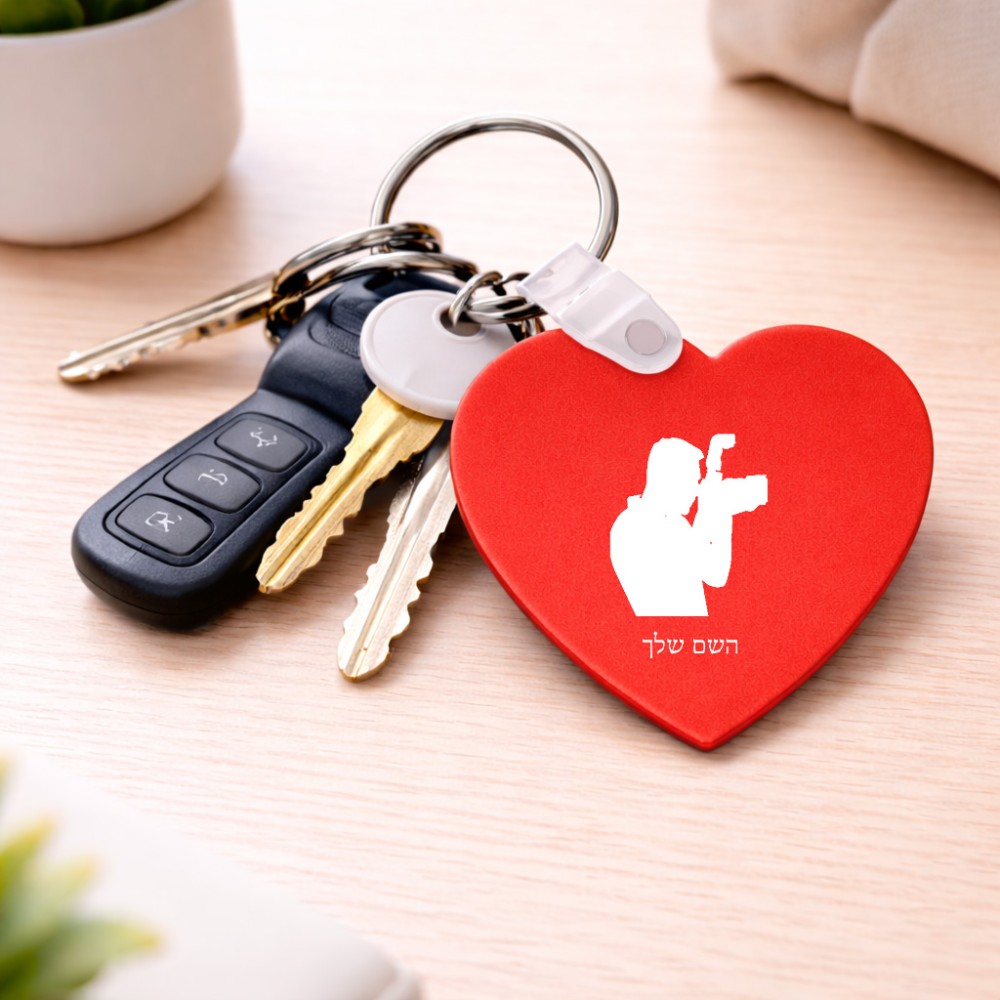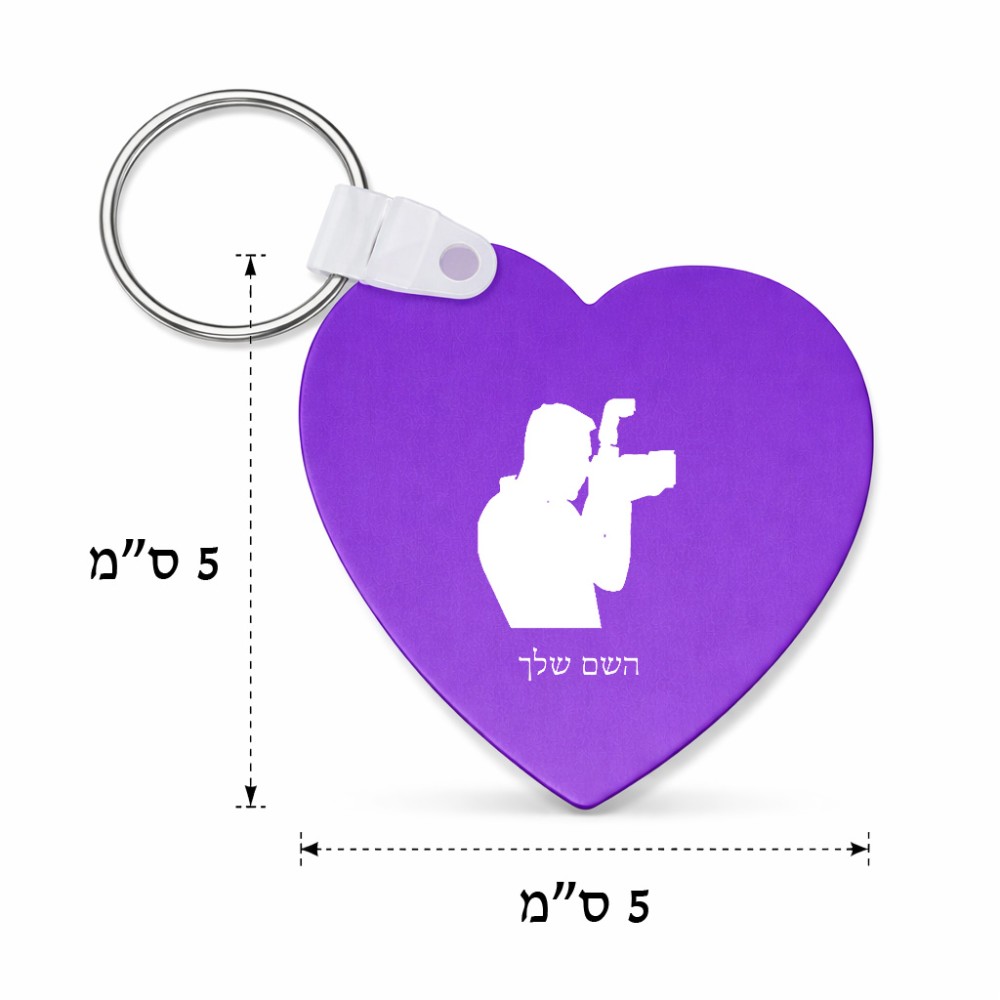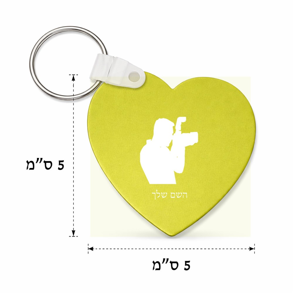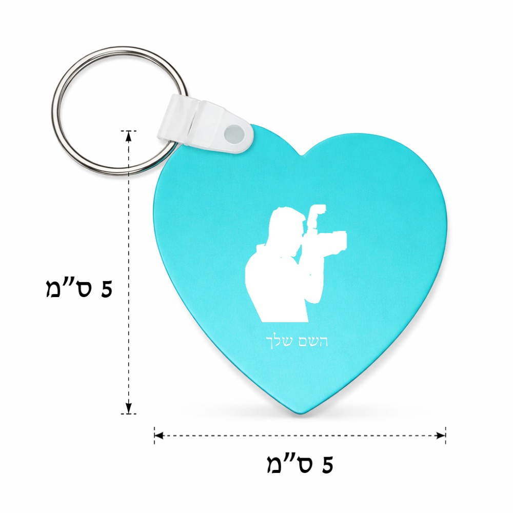 מחזיק מפתחות בצורת לב בעיצוב אישי עם השם שלך בעיצוב צלם - גברים גודל המחזיק 5 × 5 ס"מ. את השם המבוקש ניתן לציין בהזמנה, אם לא צויין אנחנו ניצור קשר לבירור.