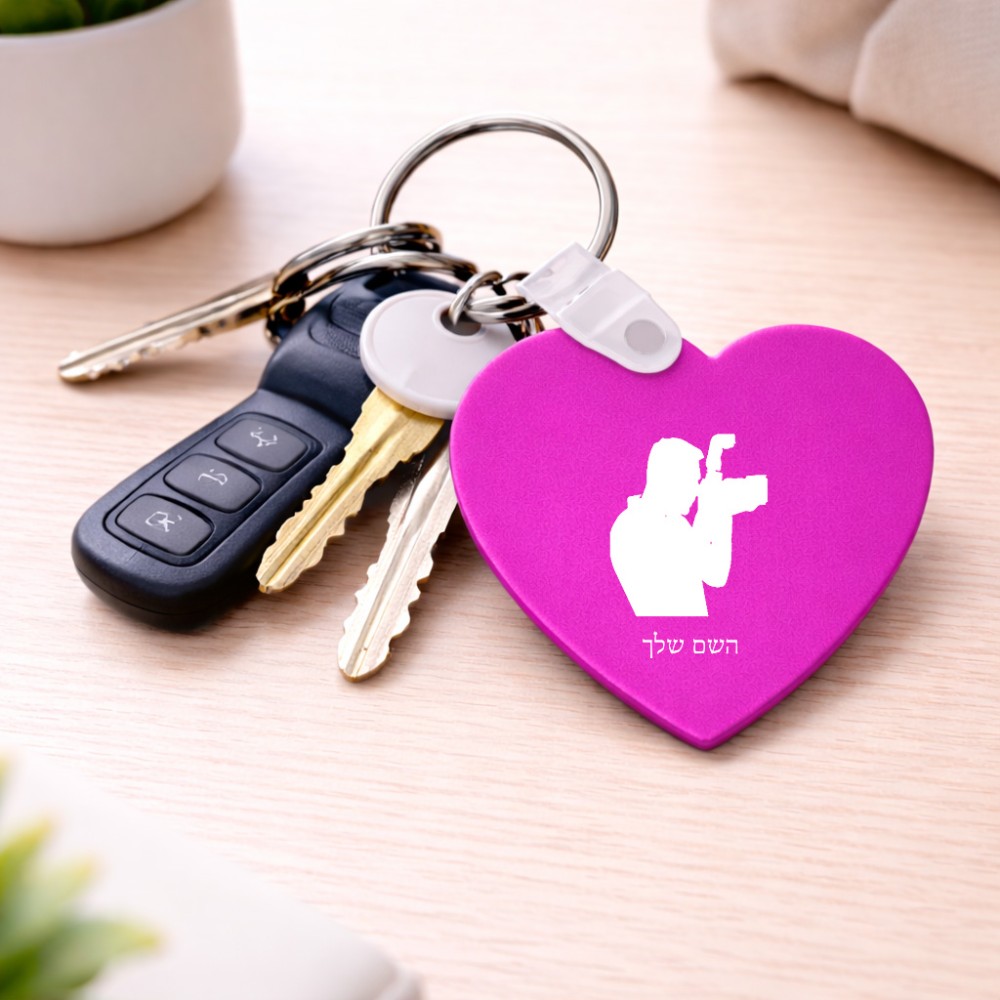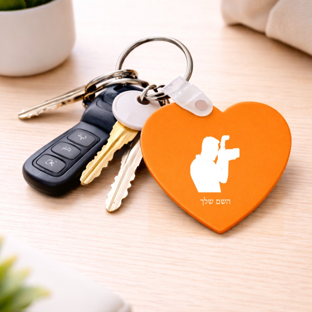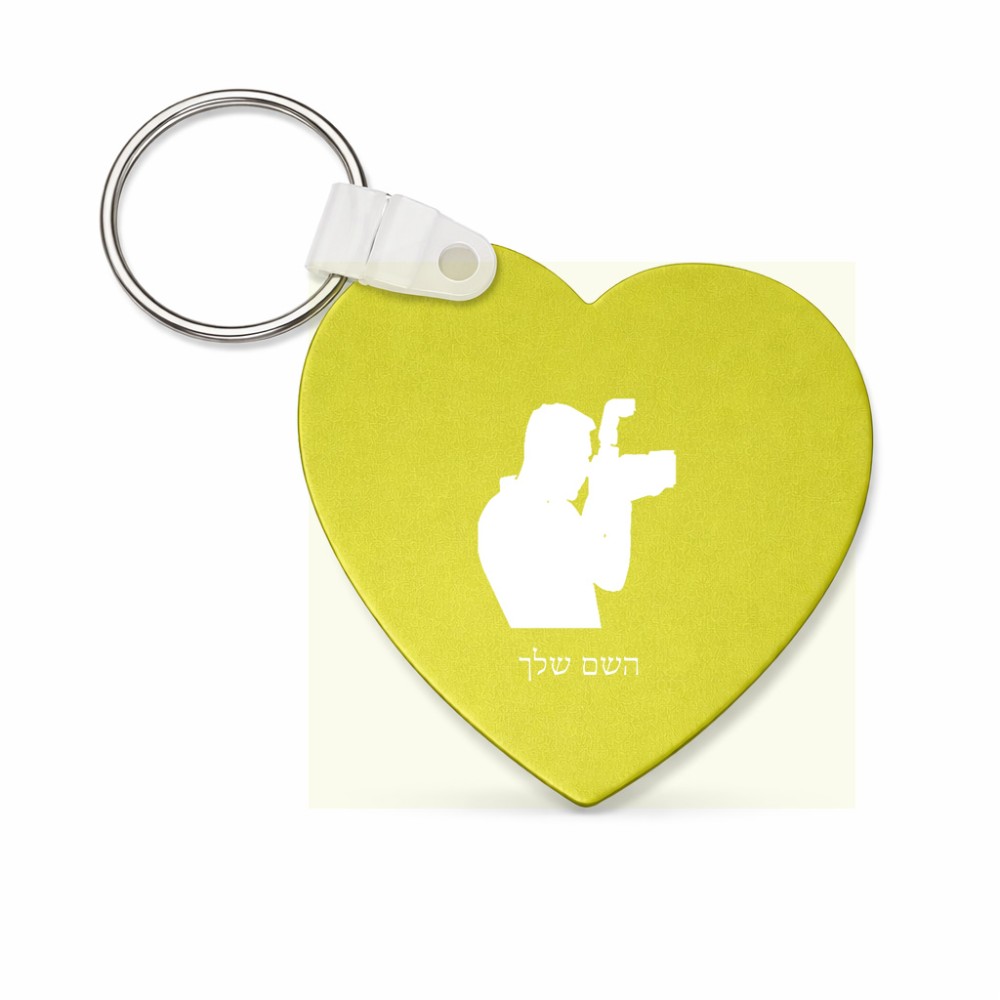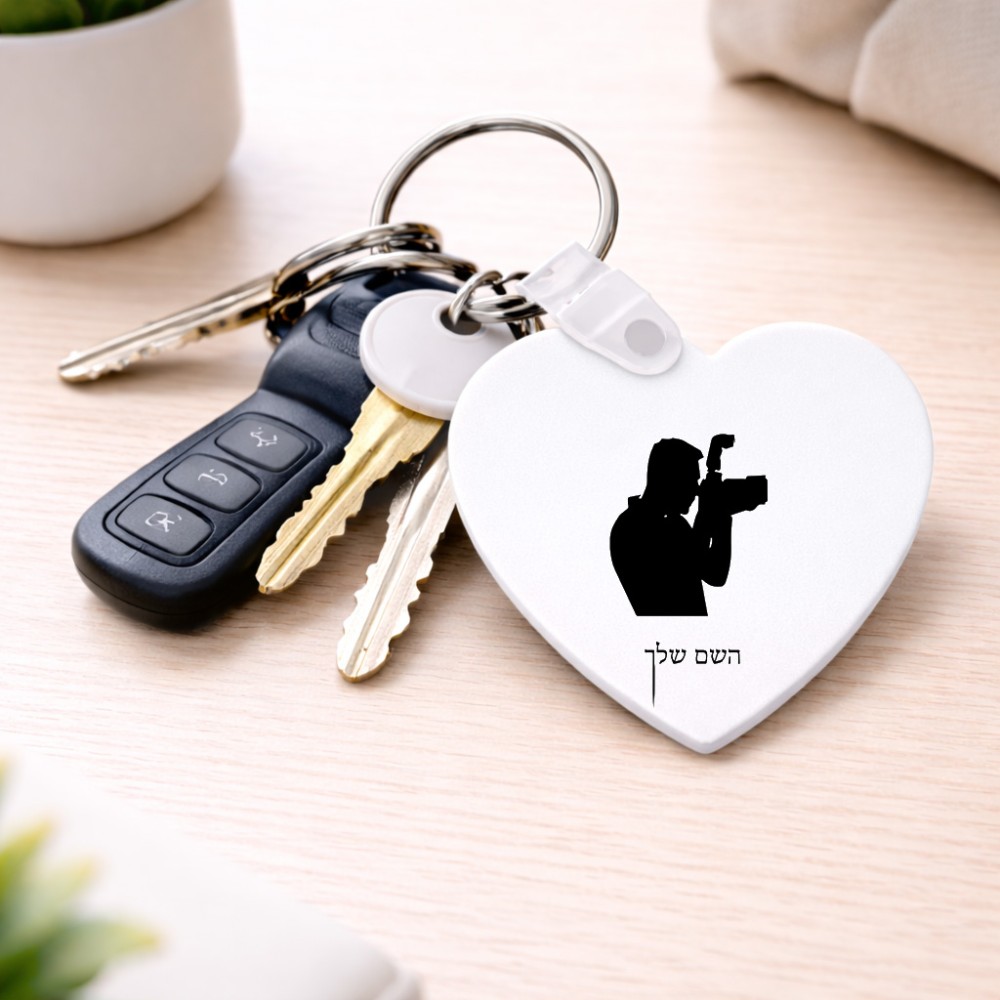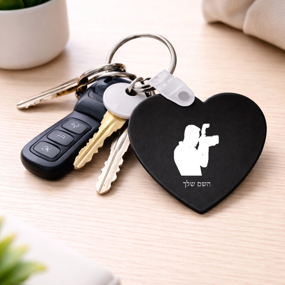 מחזיק מפתחות בצורת לב בעיצוב אישי עם השם שלך בעיצוב צלם - גברים גודל המחזיק 5 × 5 ס"מ. את השם המבוקש ניתן לציין בהזמנה, אם לא צויין אנחנו ניצור קשר לבירור.