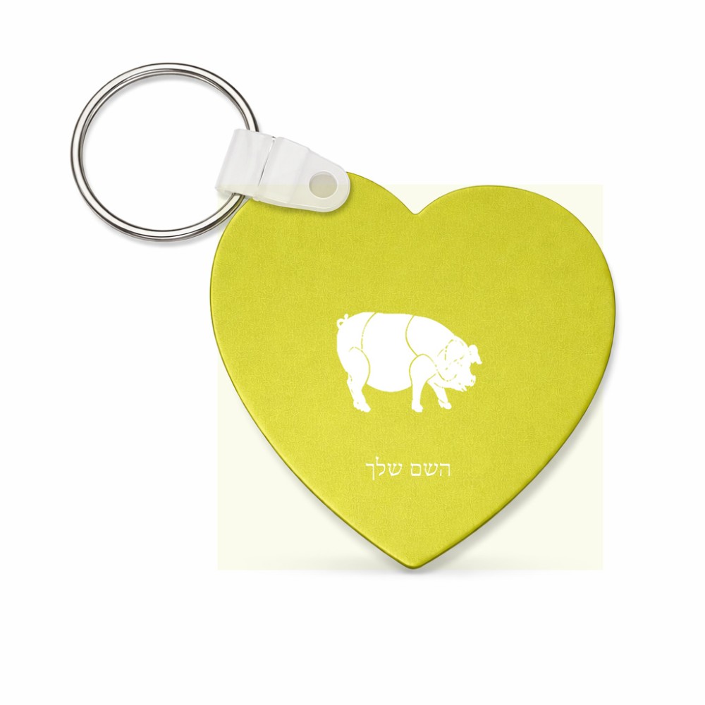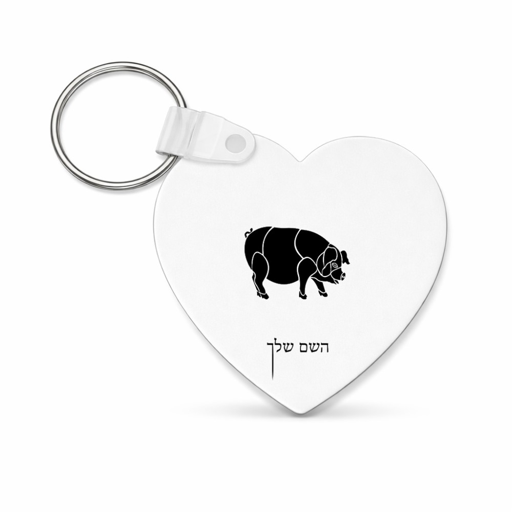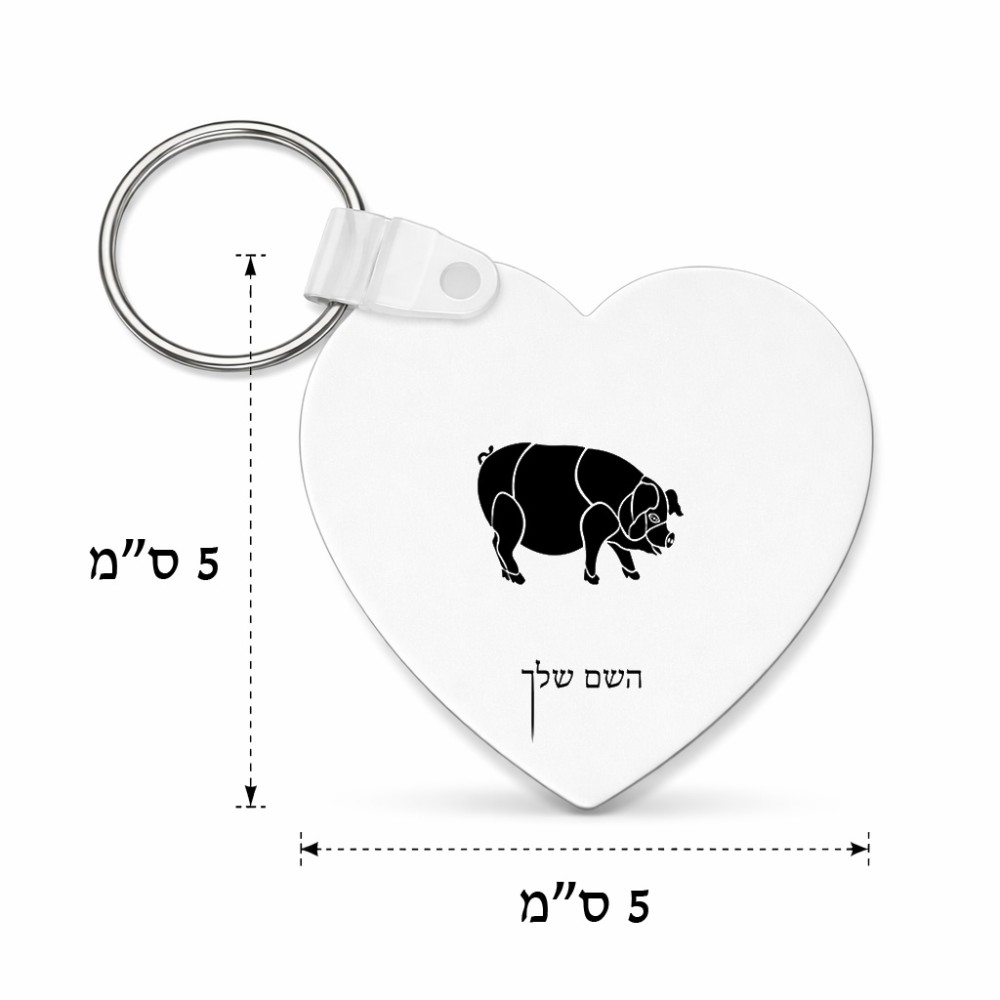 מחזיק מפתחות בצורת לב בעיצוב אישי עם השם שלך בעיצוב חזיר גודל המחזיק 5 × 5 ס"מ. את השם המבוקש ניתן לציין בהזמנה, אם לא צויין אנחנו ניצור קשר לבירור.