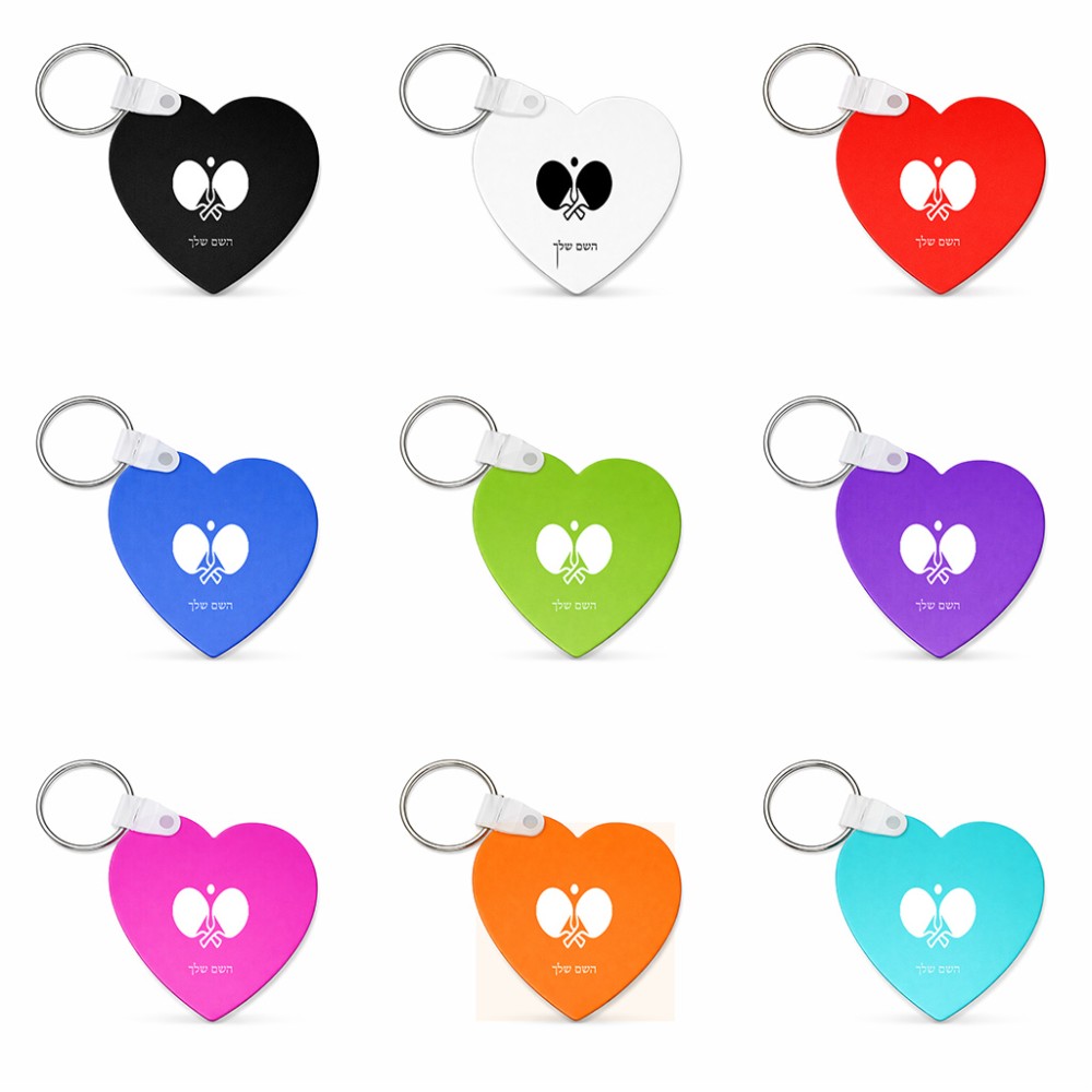 מחזיק מפתחות בצורת לב בעיצוב אישי עם השם שלך בעיצוב פינג פונג גודל המחזיק 5 × 5 ס"מ