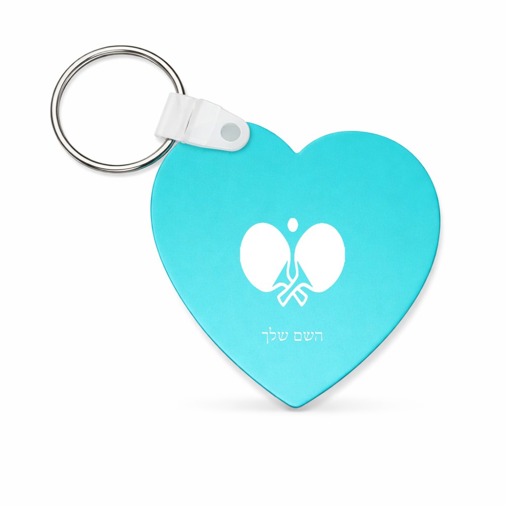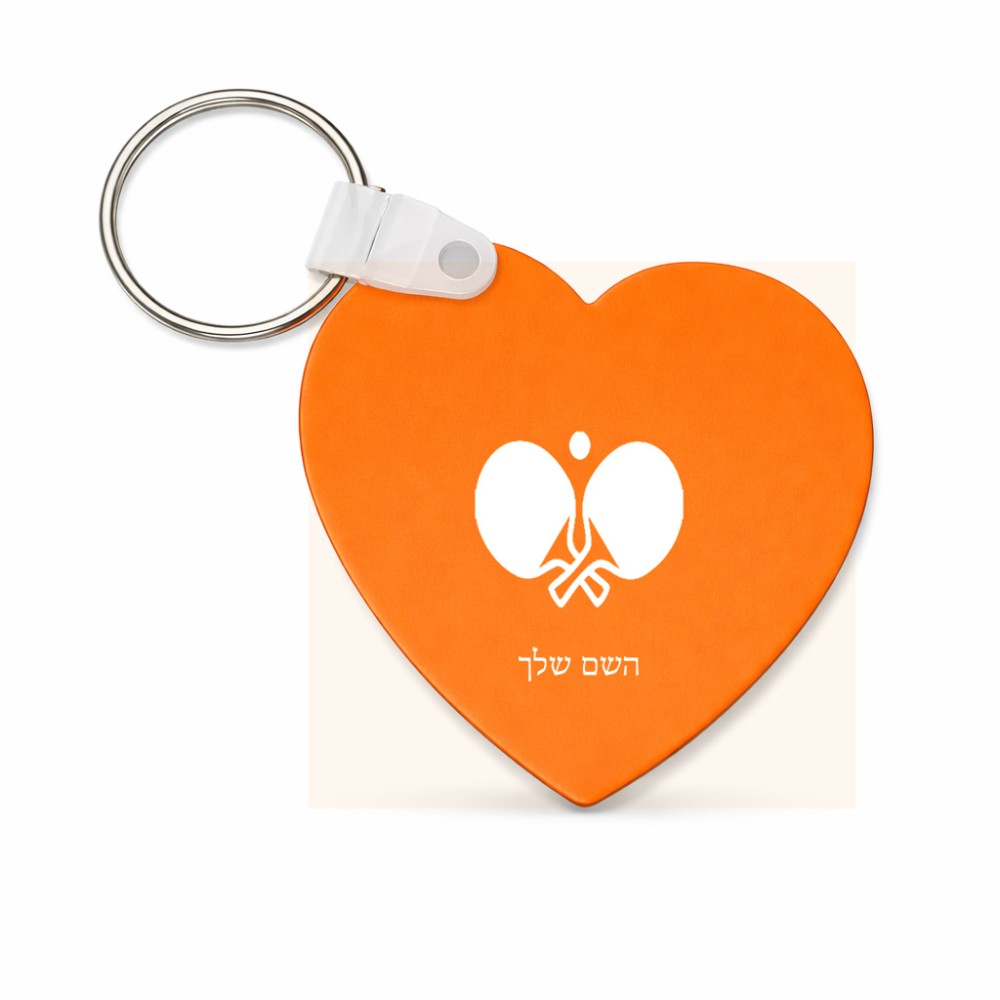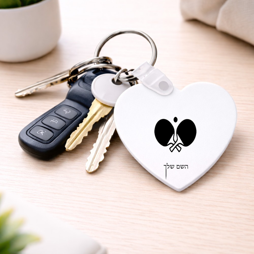 מחזיק מפתחות בצורת לב בעיצוב אישי עם השם שלך בעיצוב פינג פונג גודל המחזיק 5 × 5 ס"מ. את השם המבוקש ניתן לציין בהזמנה, אם לא צויין אנחנו ניצור קשר לבירור.
