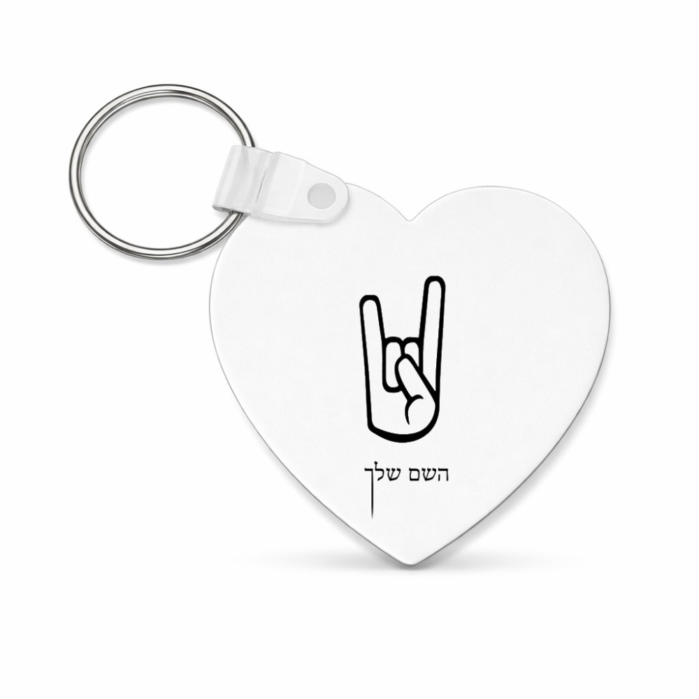 מחזיק מפתחות בצורת לב בעיצוב אישי עם השם שלך בעיצוב יד סלע גודל המחזיק 5 × 5 ס"מ. את השם המבוקש ניתן לציין בהזמנה, אם לא צויין אנחנו ניצור קשר לבירור.