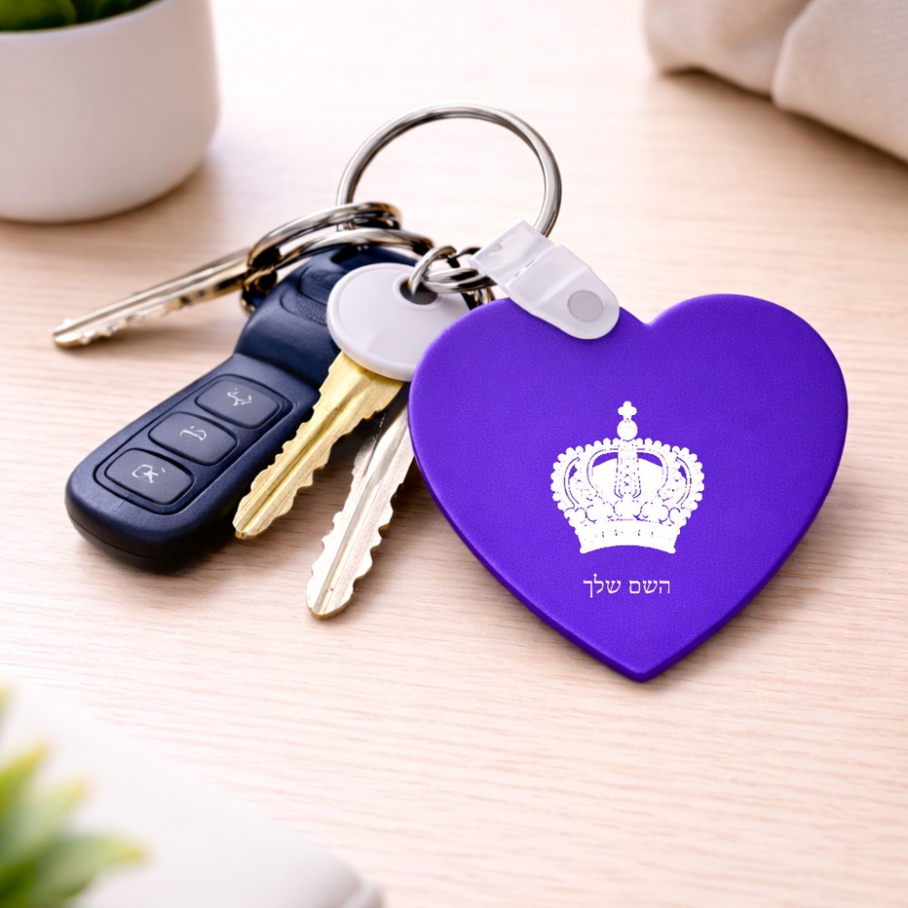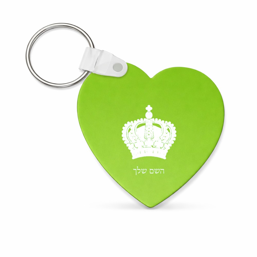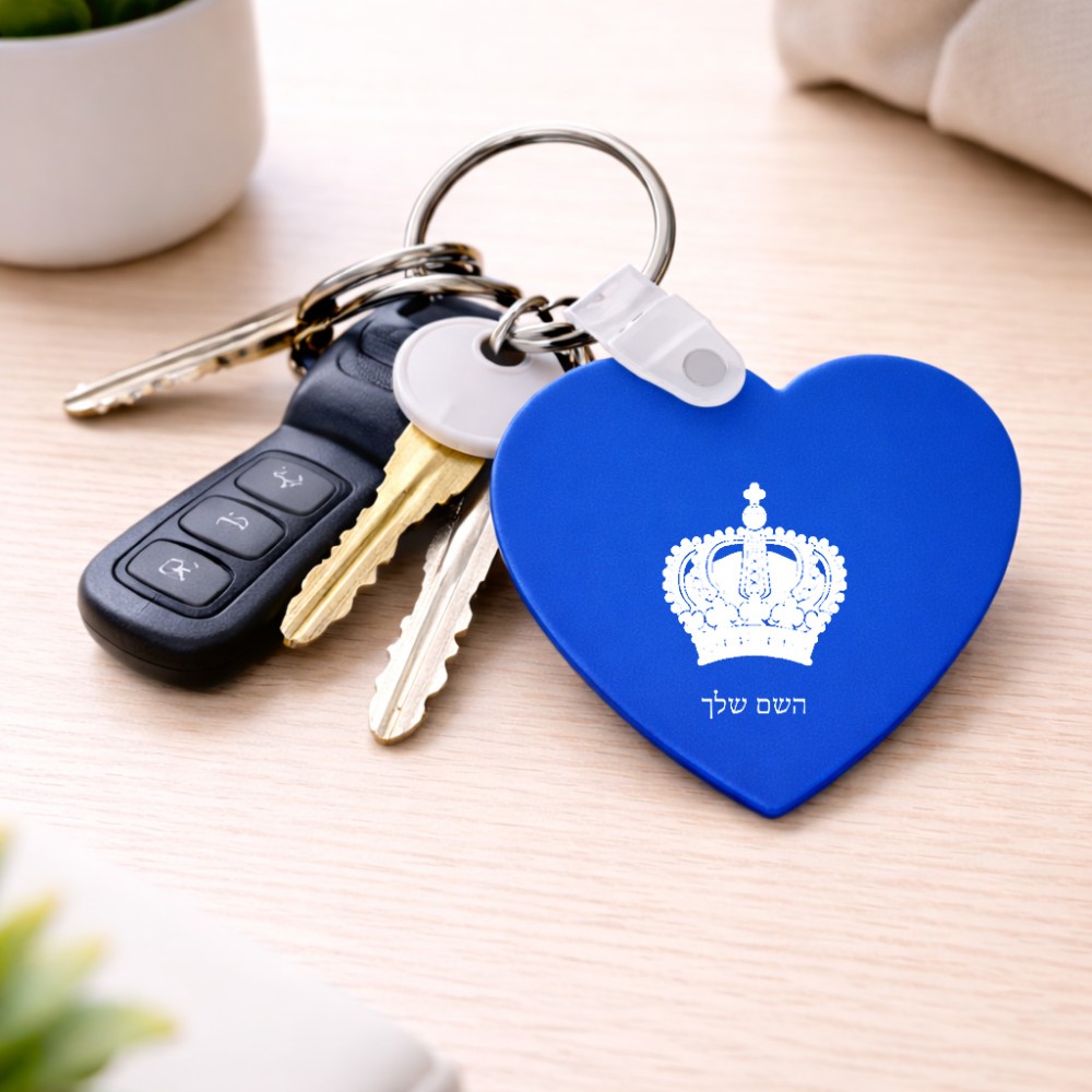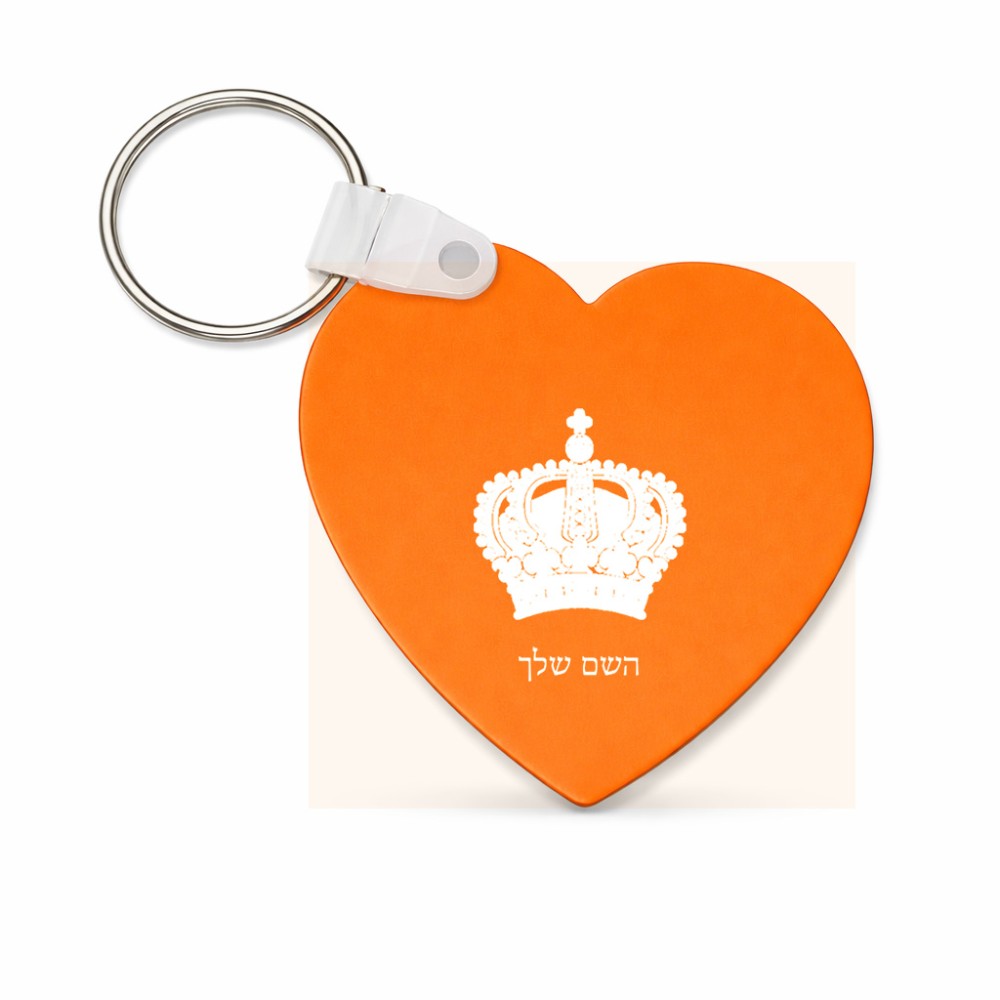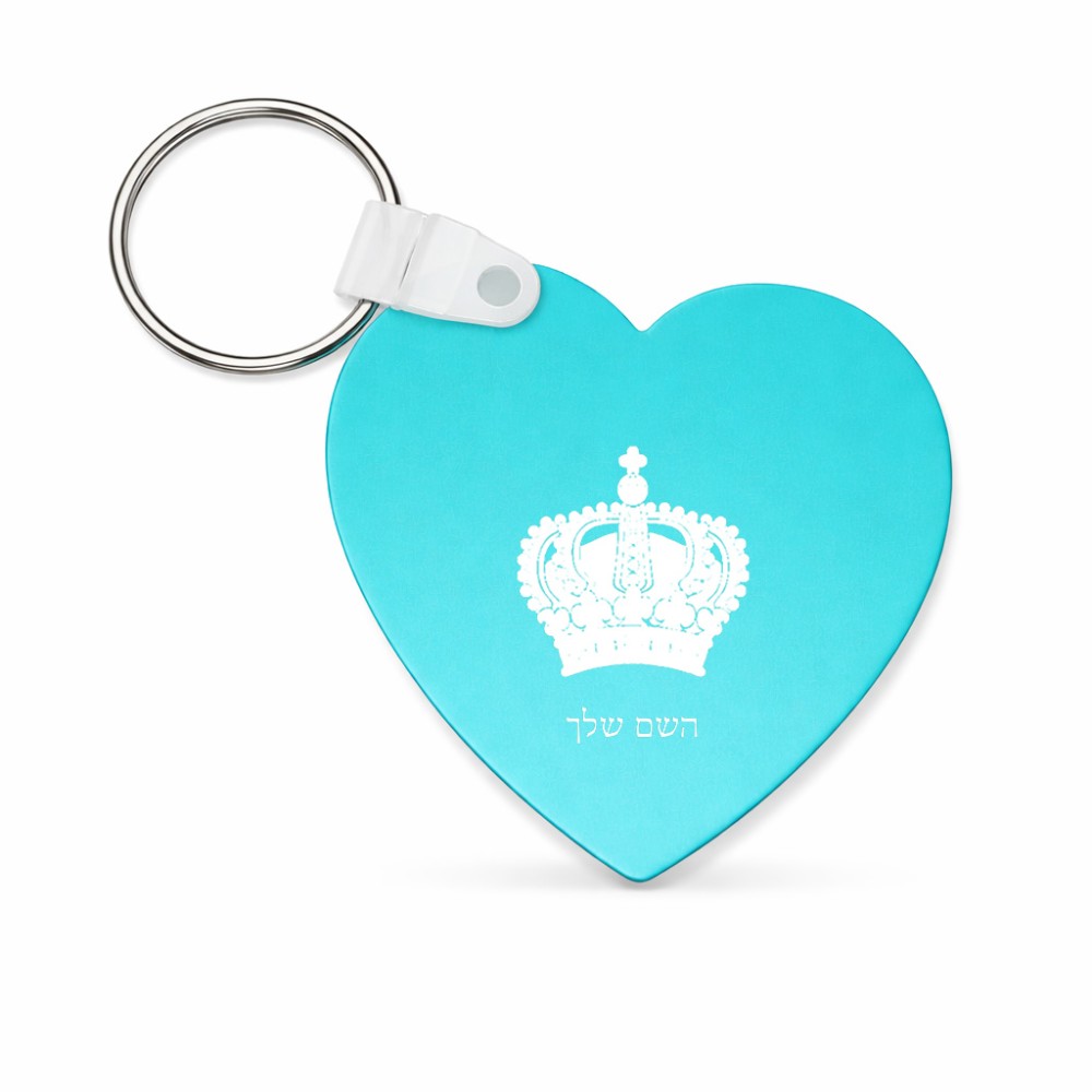 מחזיק מפתחות בצורת לב בעיצוב אישי עם השם שלך בעיצוב כתר מלכותי גודל המחזיק 5 × 5 ס"מ. את השם המבוקש ניתן לציין בהזמנה, אם לא צויין אנחנו ניצור קשר לבירור.