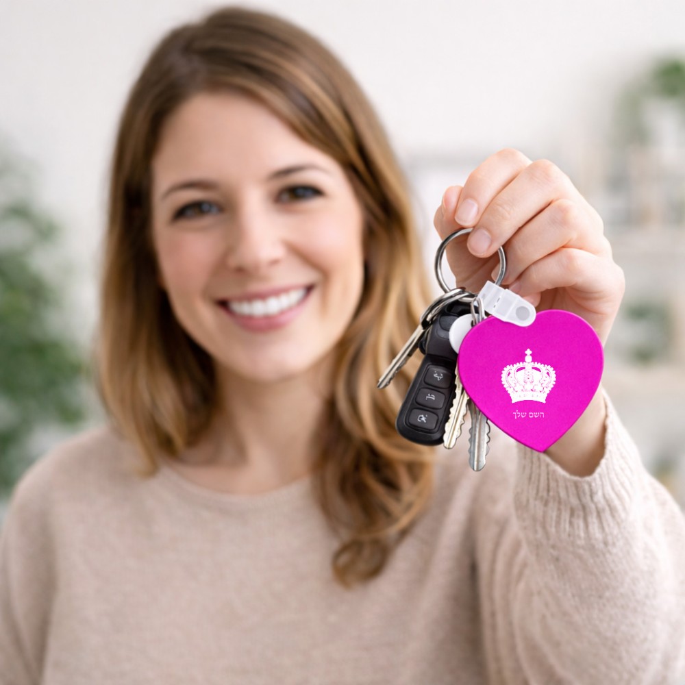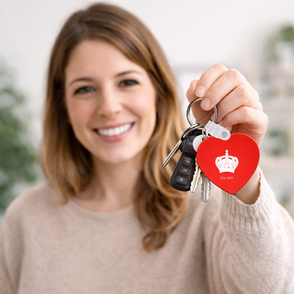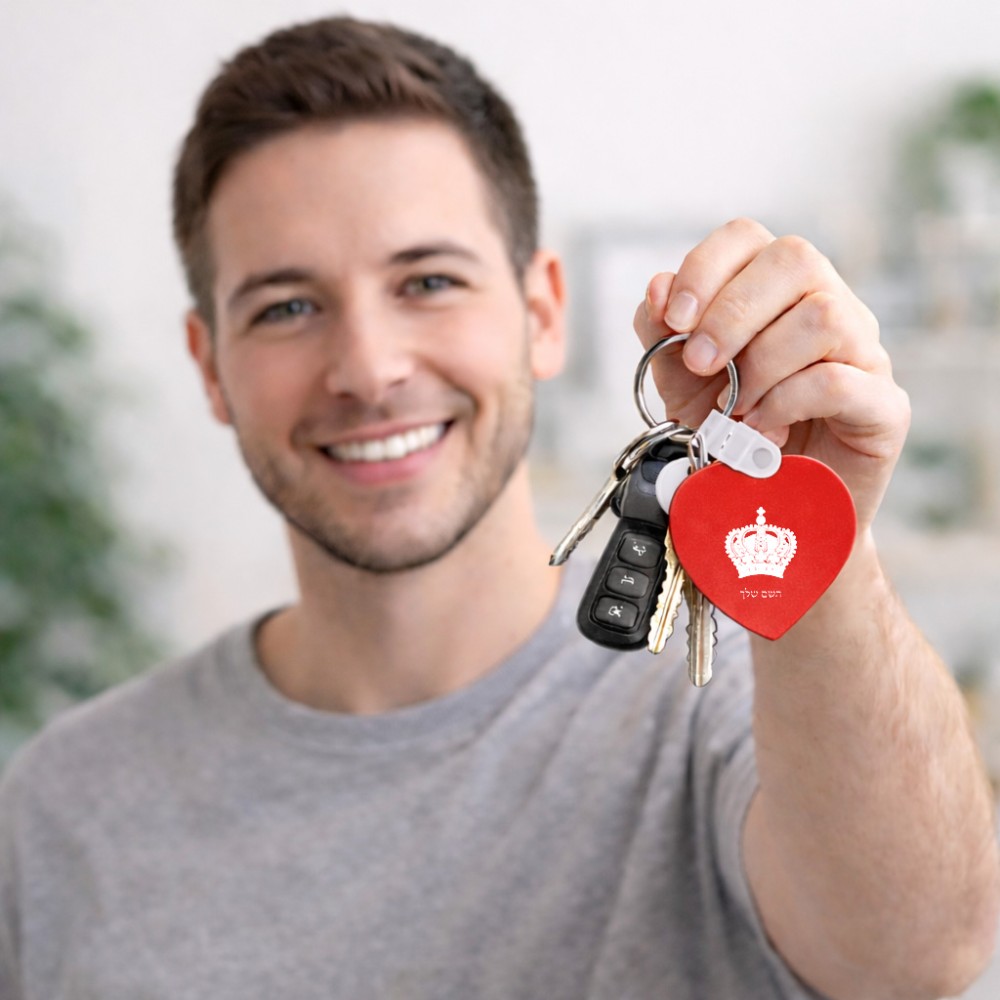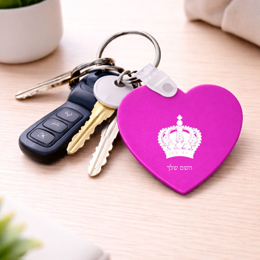 מחזיק מפתחות בצורת לב בעיצוב אישי עם השם שלך בעיצוב כתר מלכותי גודל המחזיק 5 × 5 ס"מ. את השם המבוקש ניתן לציין בהזמנה, אם לא צויין אנחנו ניצור קשר לבירור.