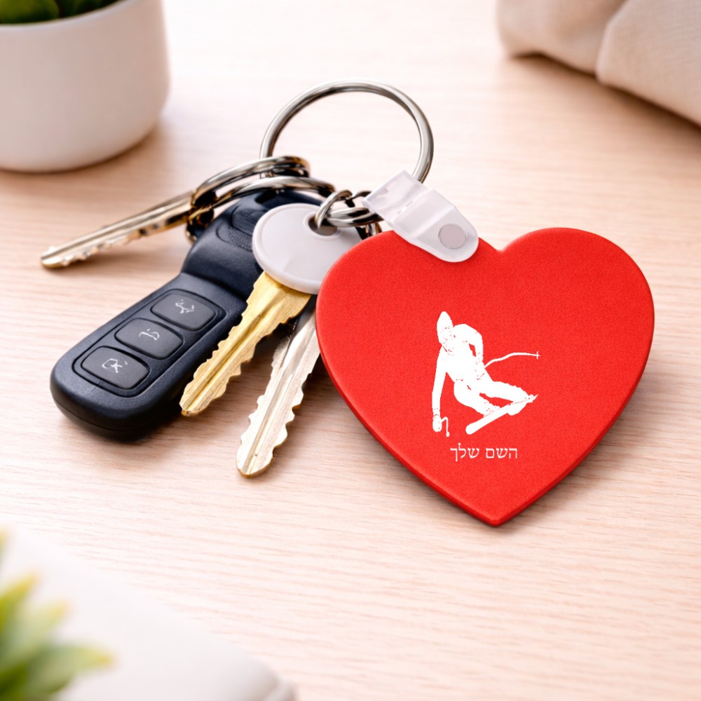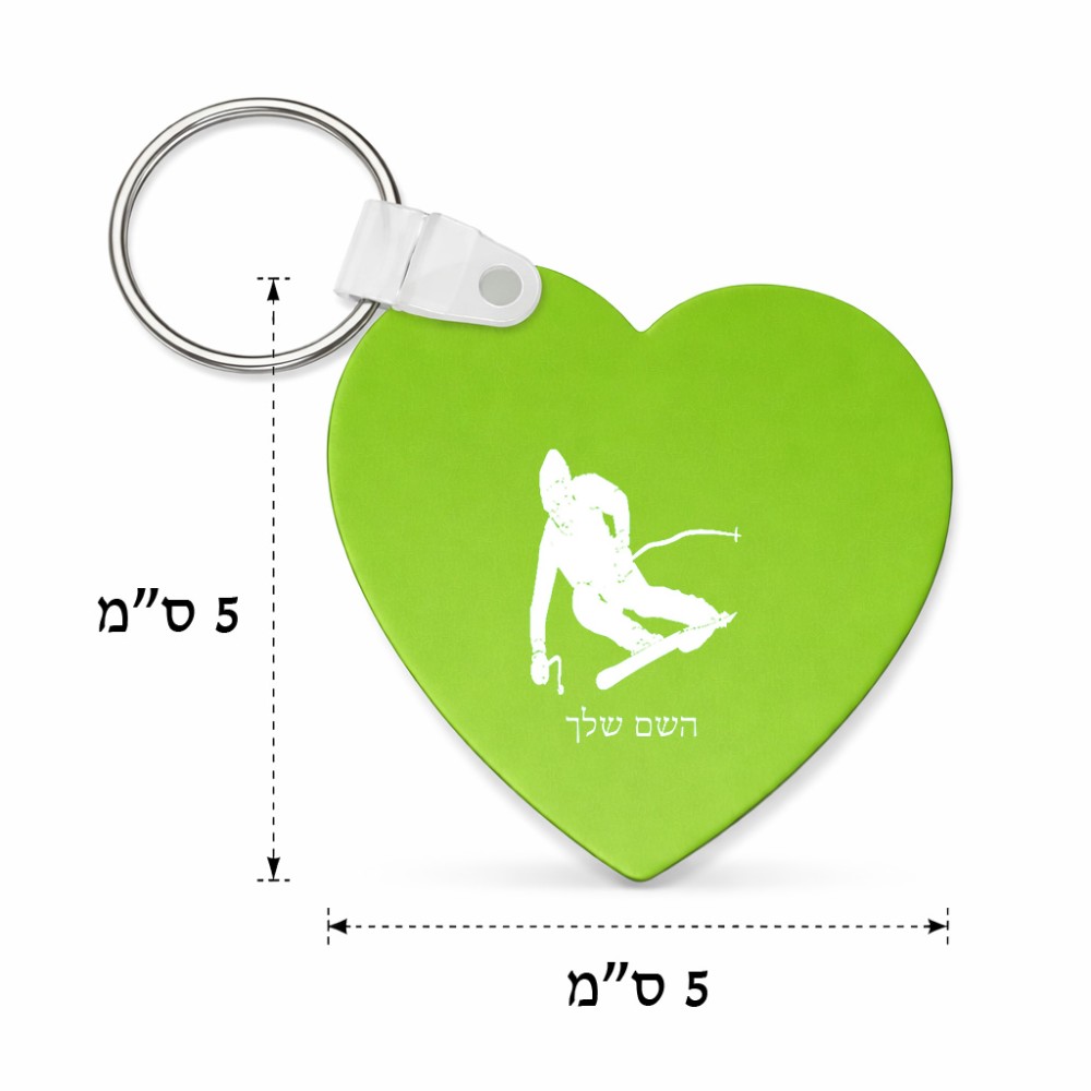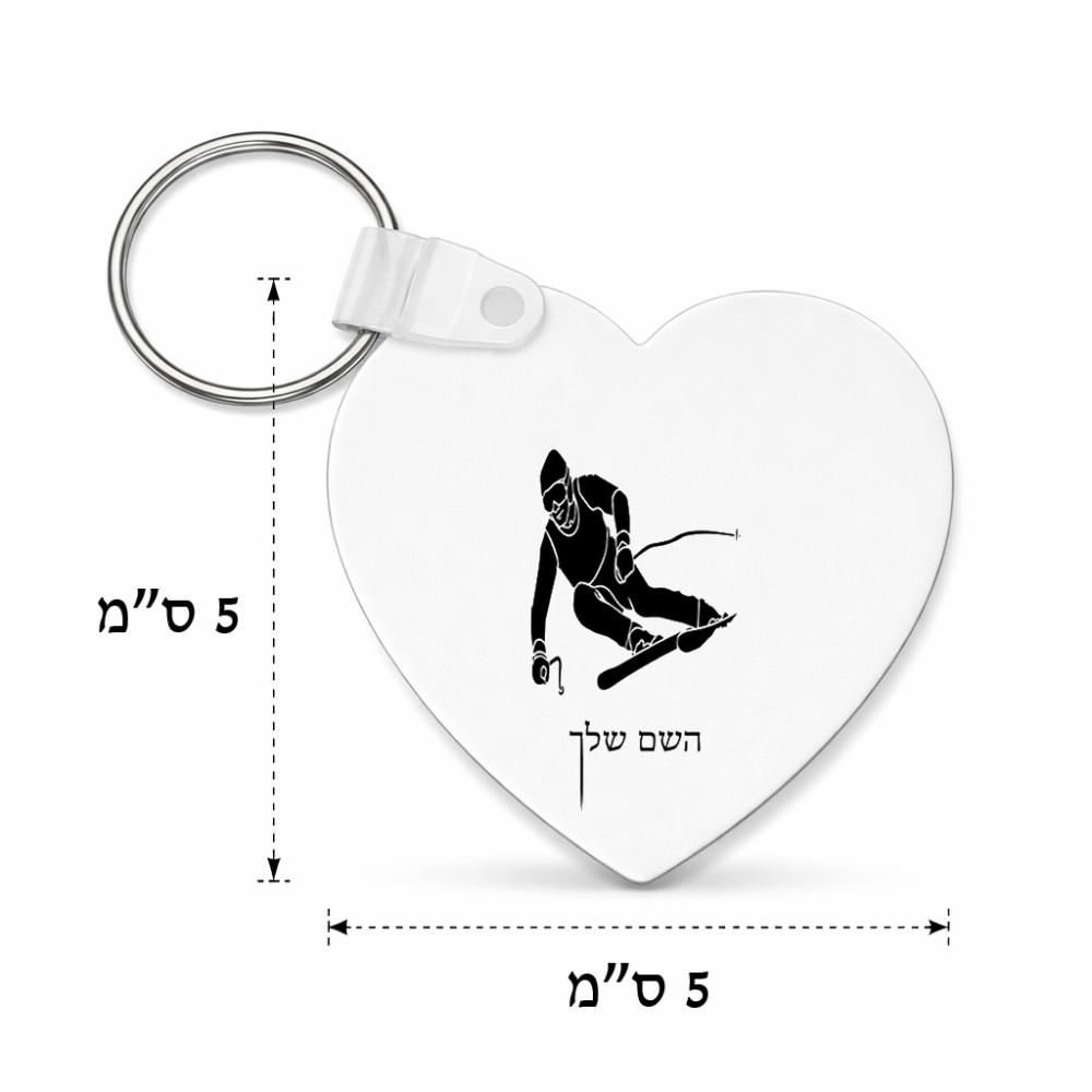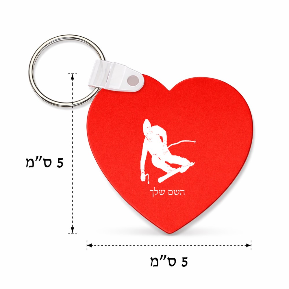 מחזיק מפתחות בצורת לב בעיצוב אישי עם השם שלך בעיצוב סקי גודל המחזיק 5 × 5 ס"מ. את השם המבוקש ניתן לציין בהזמנה, אם לא צויין אנחנו ניצור קשר לבירור.