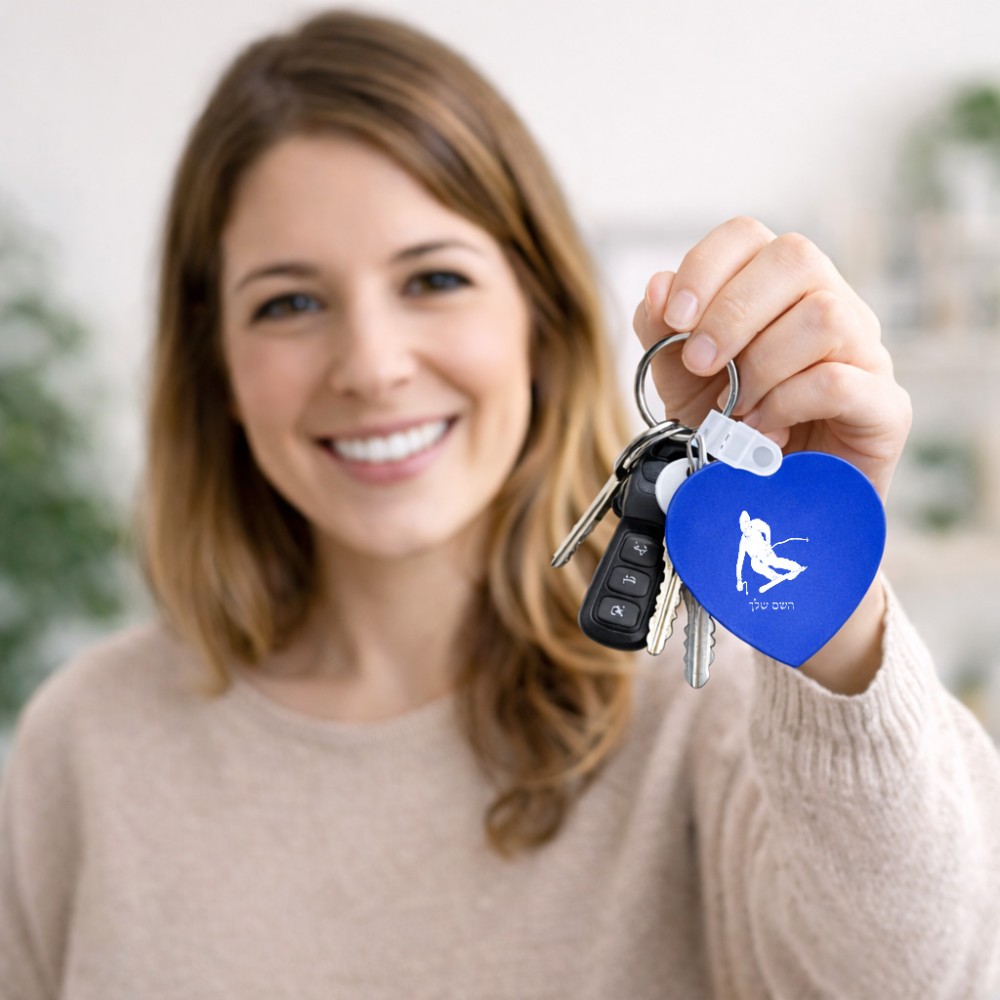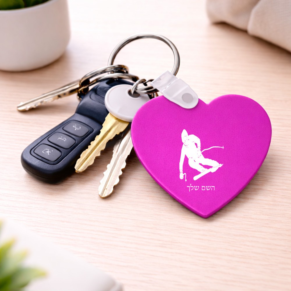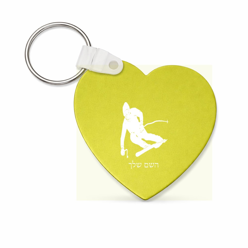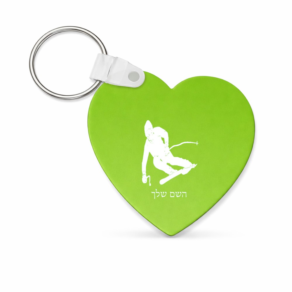 מחזיק מפתחות בצורת לב בעיצוב אישי עם השם שלך בעיצוב סקי גודל המחזיק 5 × 5 ס"מ. את השם המבוקש ניתן לציין בהזמנה, אם לא צויין אנחנו ניצור קשר לבירור.