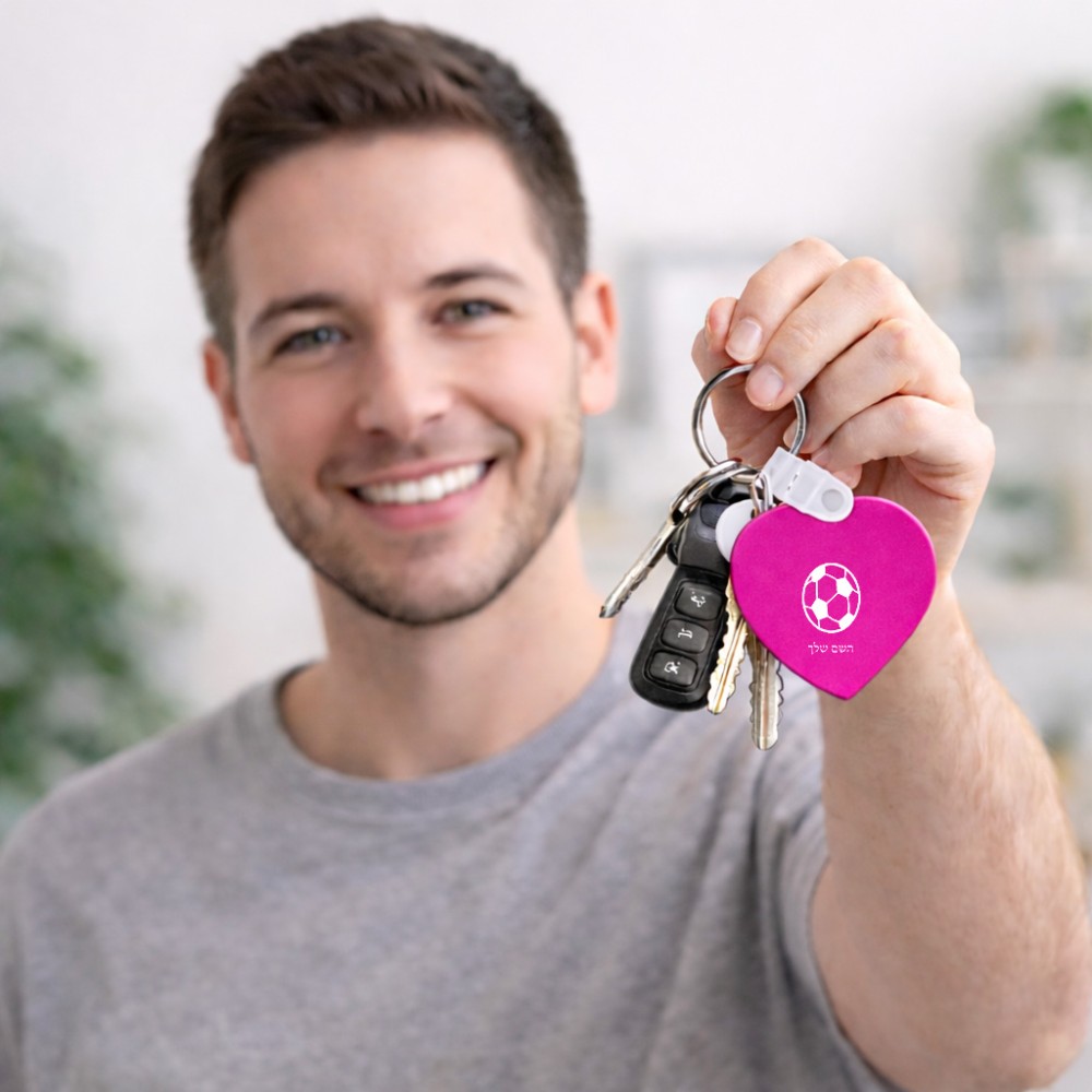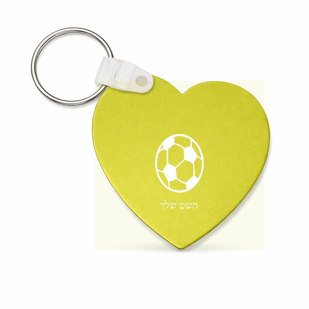 מחזיק מפתחות בצורת לב בעיצוב אישי עם השם שלך בעיצוב כדורגל כדור כדורגל גודל המחזיק 5 × 5 ס"מ. את השם המבוקש ניתן לציין בהזמנה, אם לא צויין אנחנו ניצור קשר לבירור.
