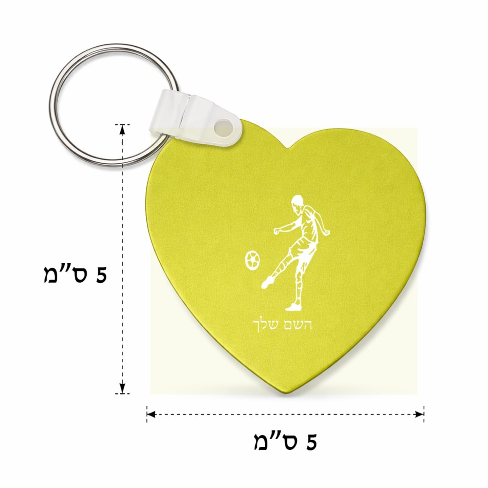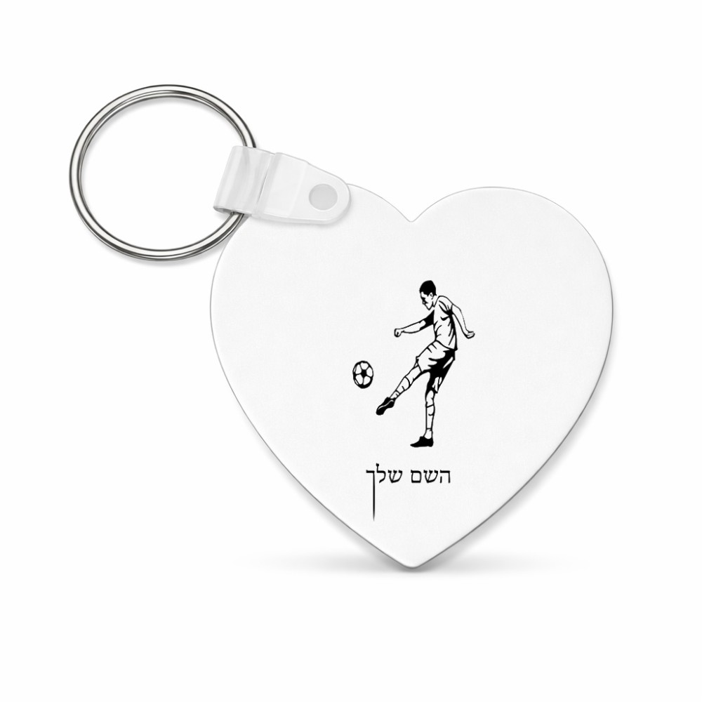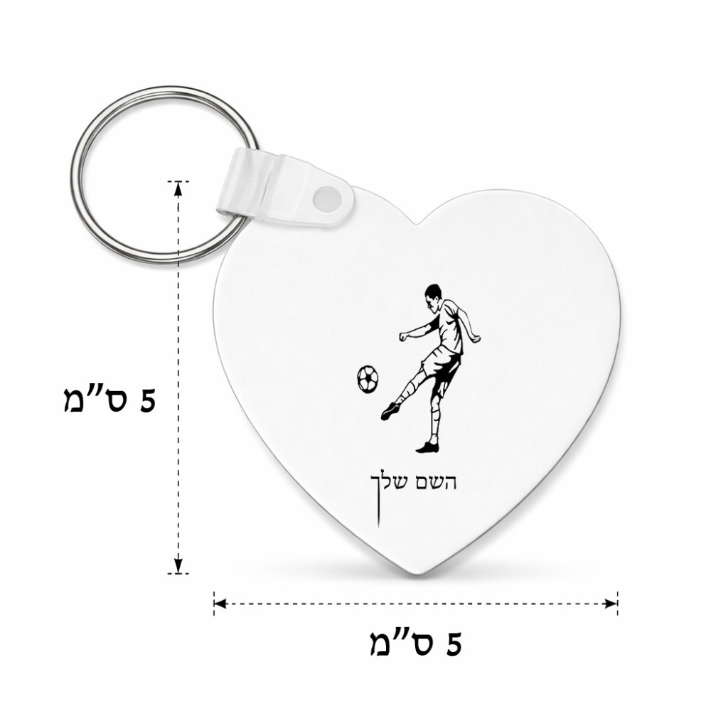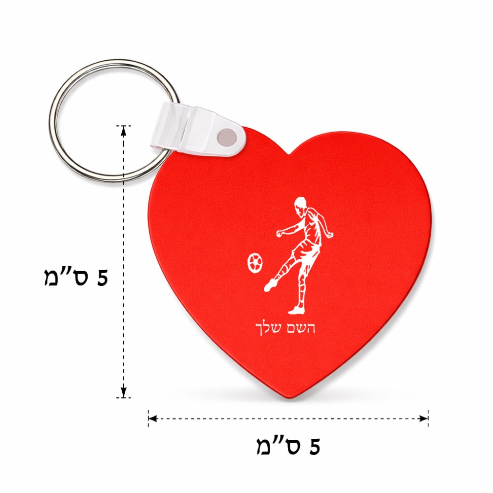מחזיק מפתחות בצורת לב בעיצוב אישי עם השם שלך בעיצוב שחקן כדורגל גודל המחזיק 5 × 5 ס"מ. את השם המבוקש ניתן לציין בהזמנה, אם לא צויין אנחנו ניצור קשר לבירור.
