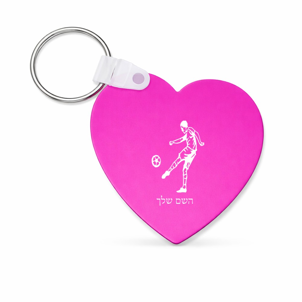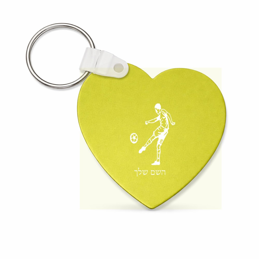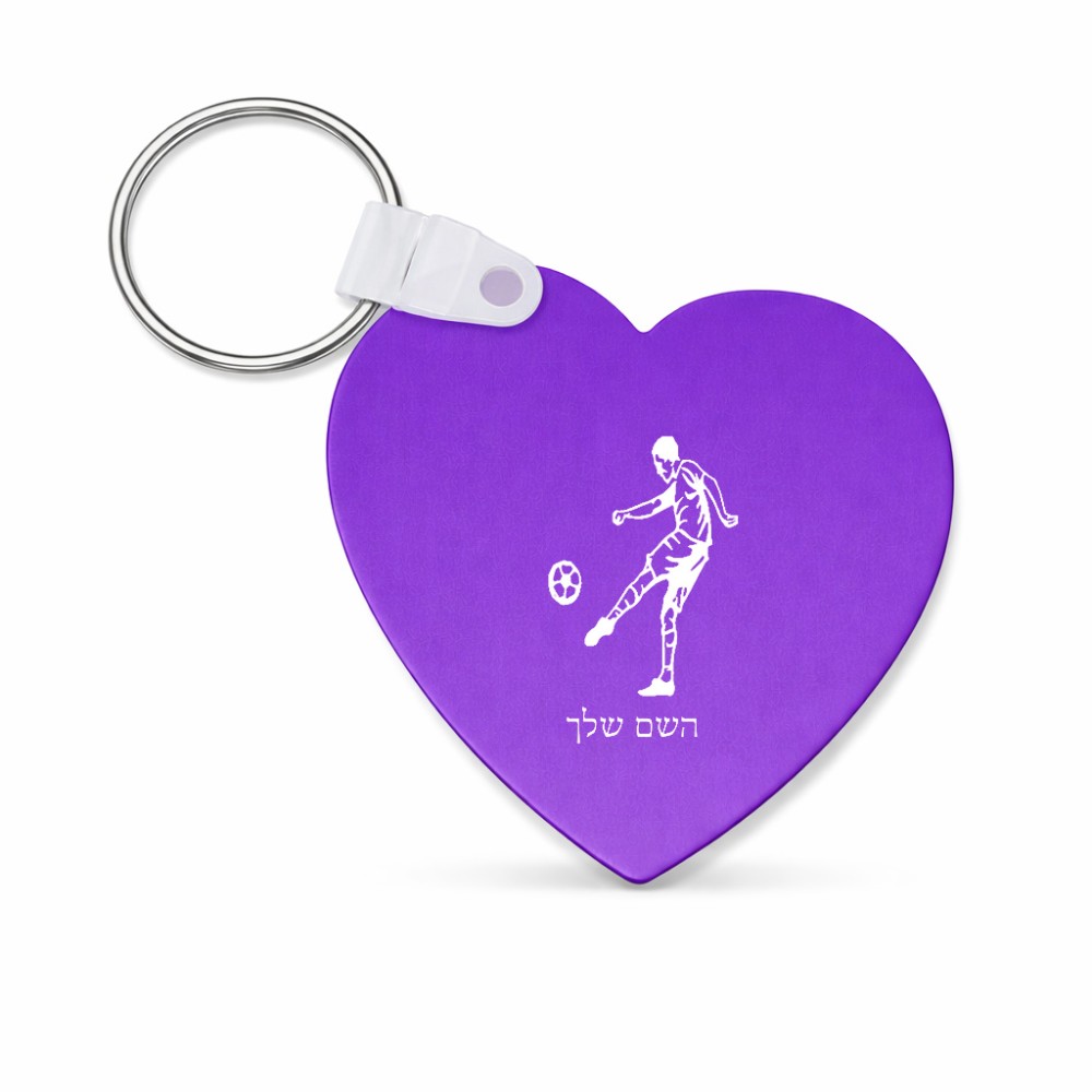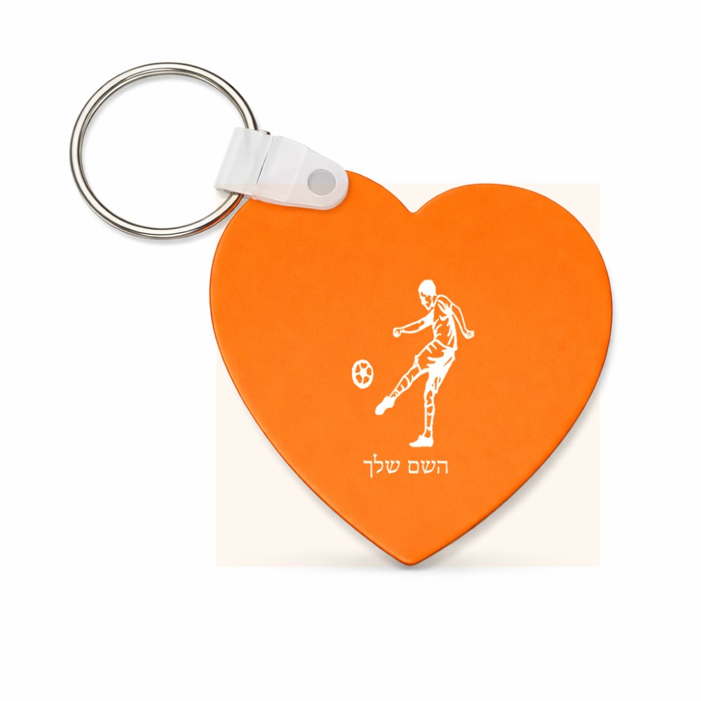 מחזיק מפתחות בצורת לב בעיצוב אישי עם השם שלך בעיצוב שחקן כדורגל גודל המחזיק 5 × 5 ס"מ. את השם המבוקש ניתן לציין בהזמנה, אם לא צויין אנחנו ניצור קשר לבירור.